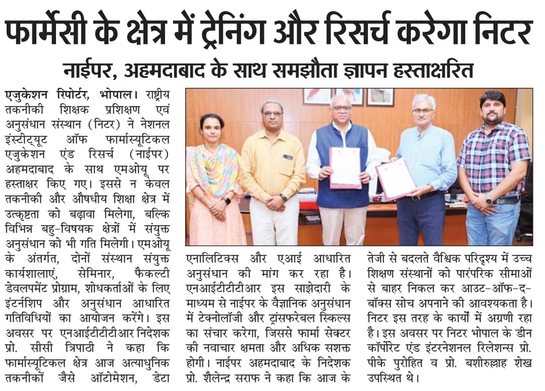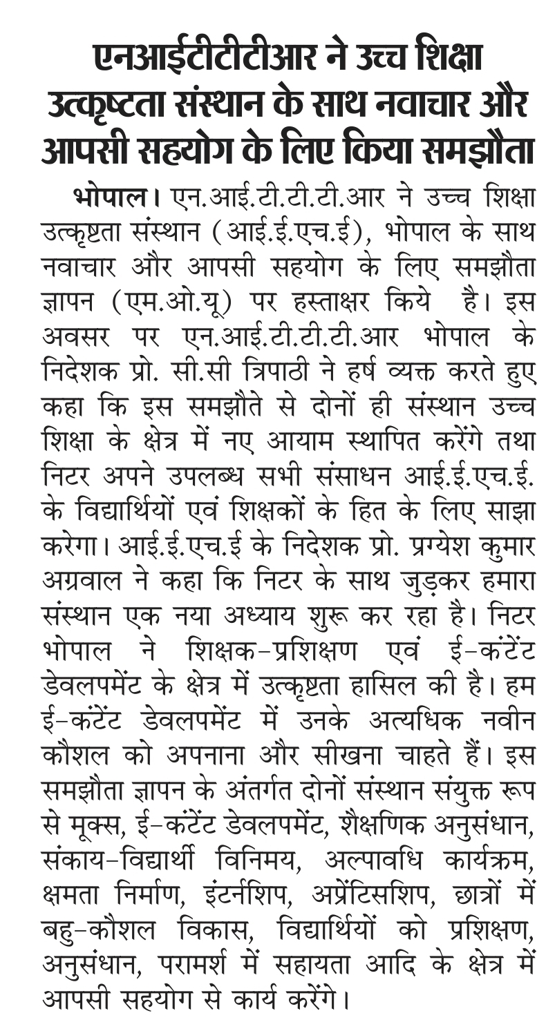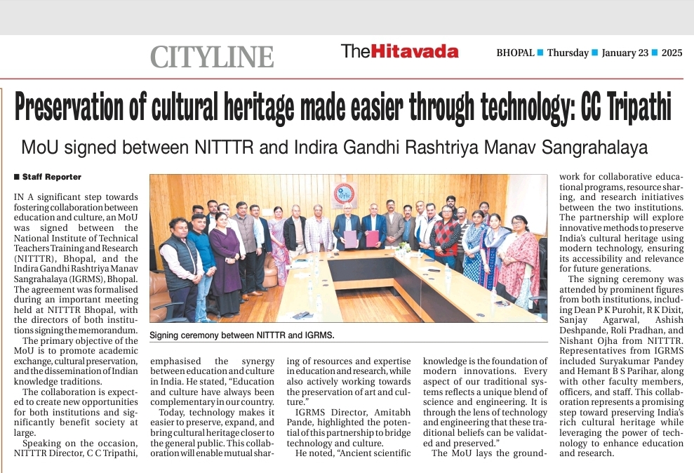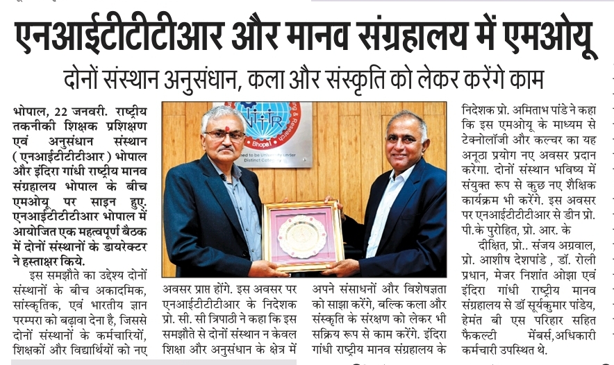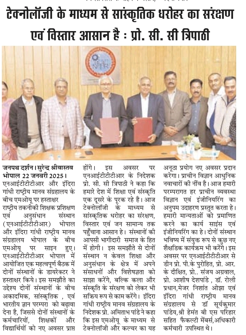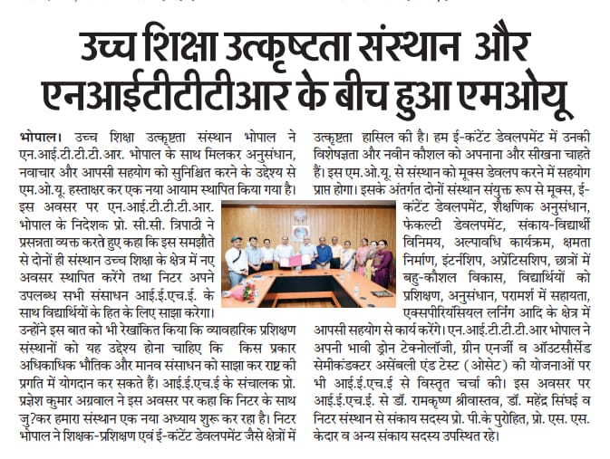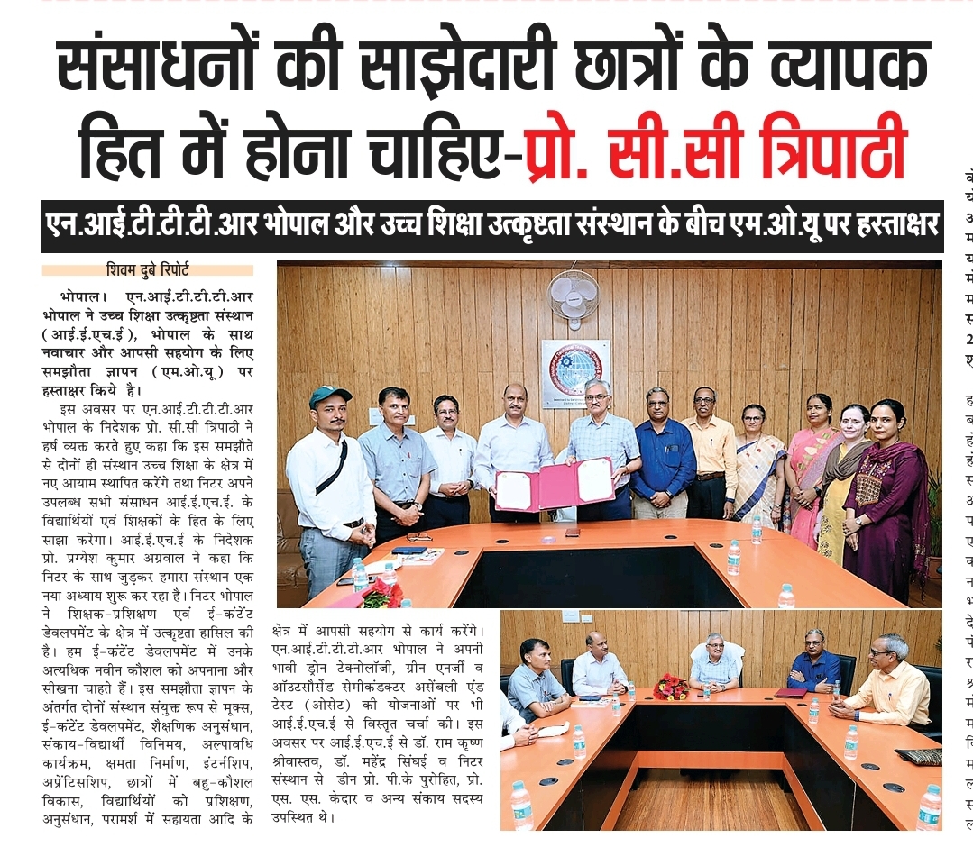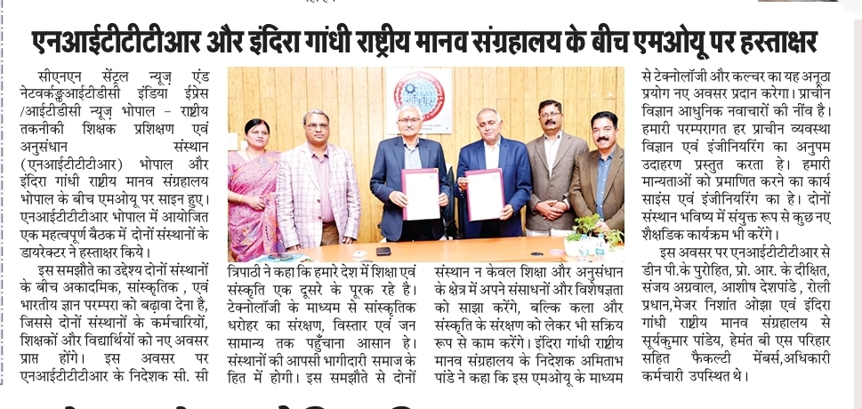 एनआईटीटीटीआर, भोपाल और केंद्रीय कृषि अभियांत्रिकी(सीआईएई) संस्थान के मध्य एमओयू संपन्न