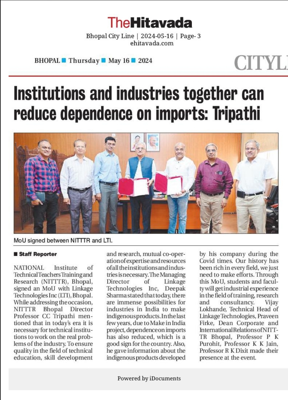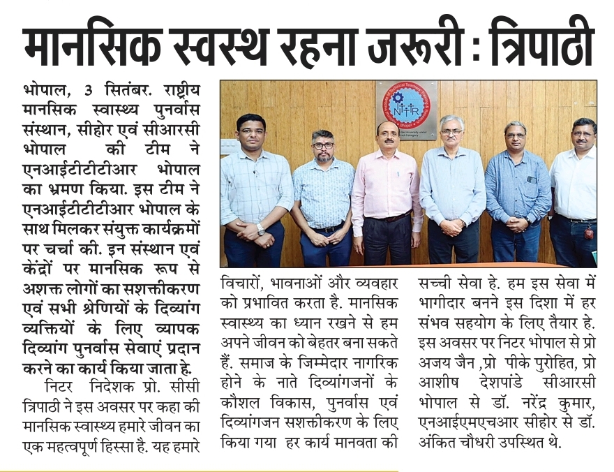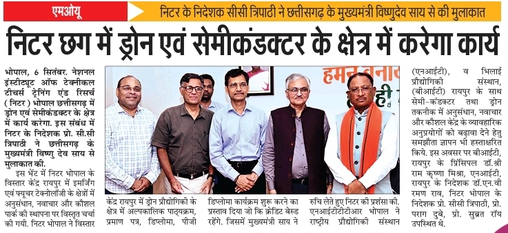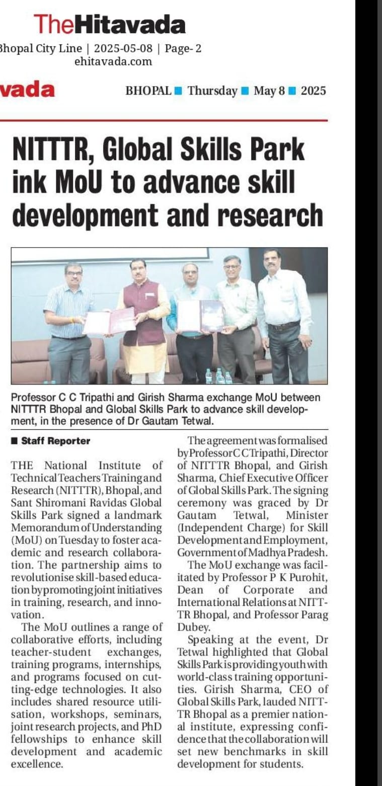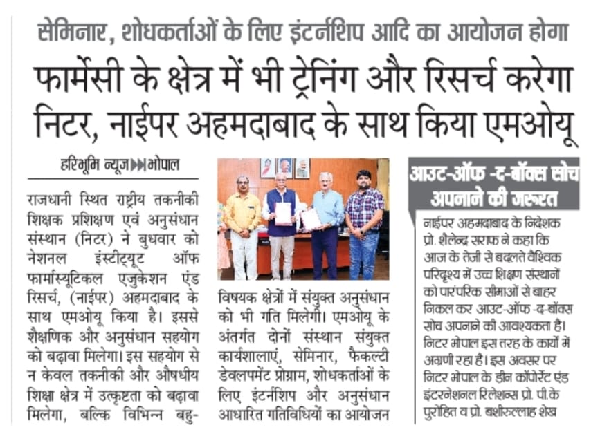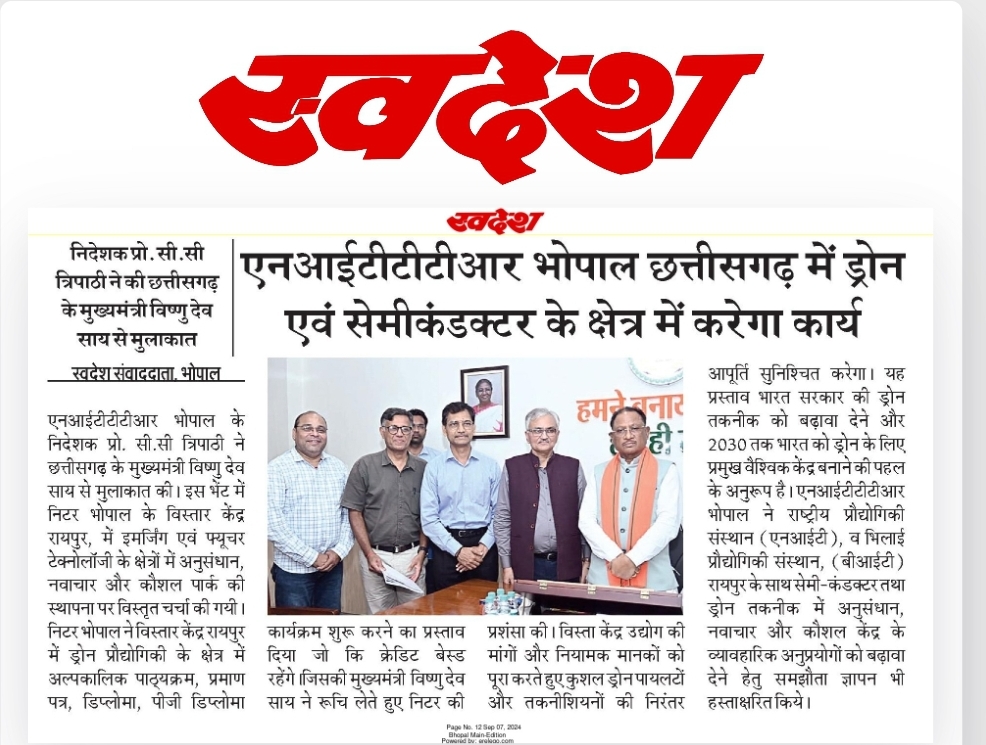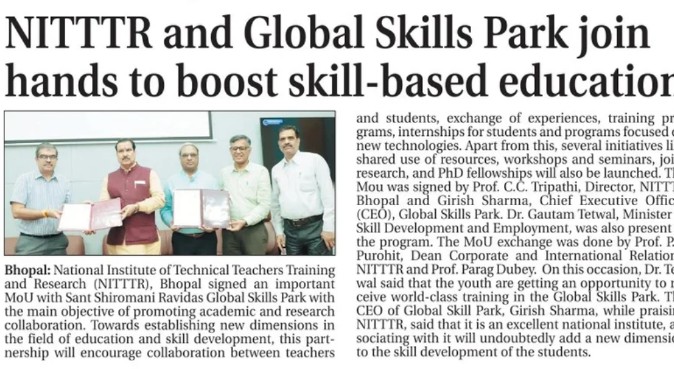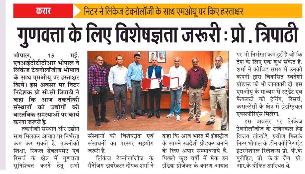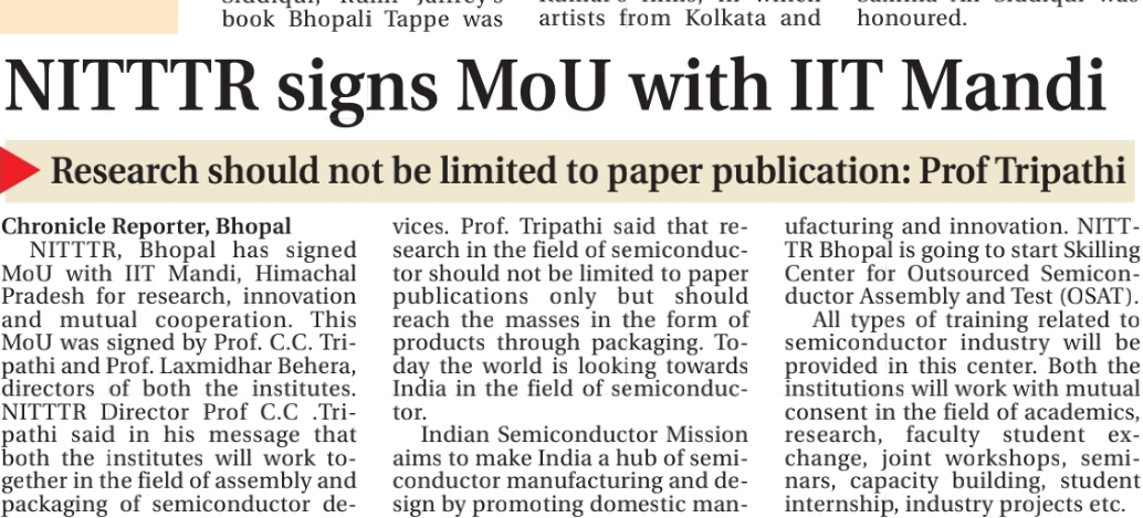 एनआईटीटीटीआर, भोपाल और केंद्रीय कृषि अभियांत्रिकी(सीआईएई) संस्थान के मध्य एमओयू संपन्न