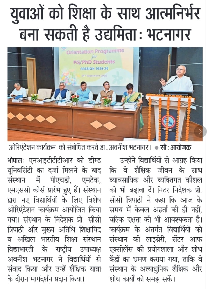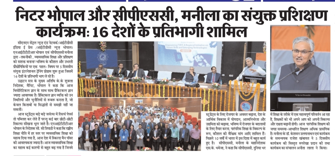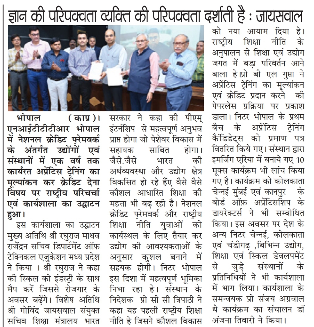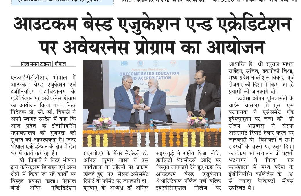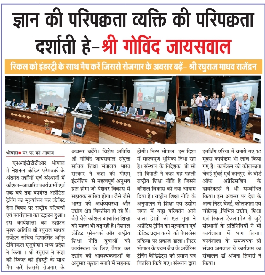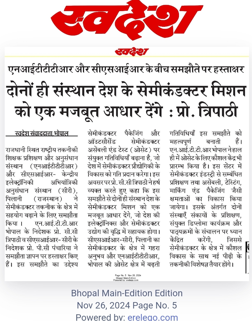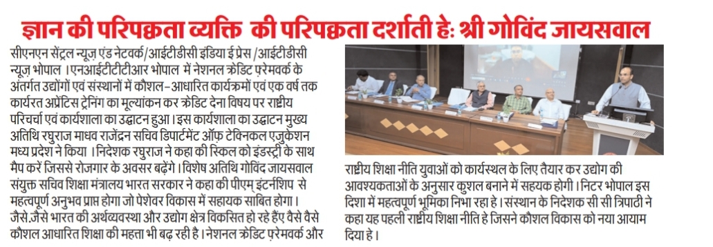 एनआईटीटीटीआर, भोपाल और केंद्रीय कृषि अभियांत्रिकी(सीआईएई) संस्थान के मध्य एमओयू संपन्न