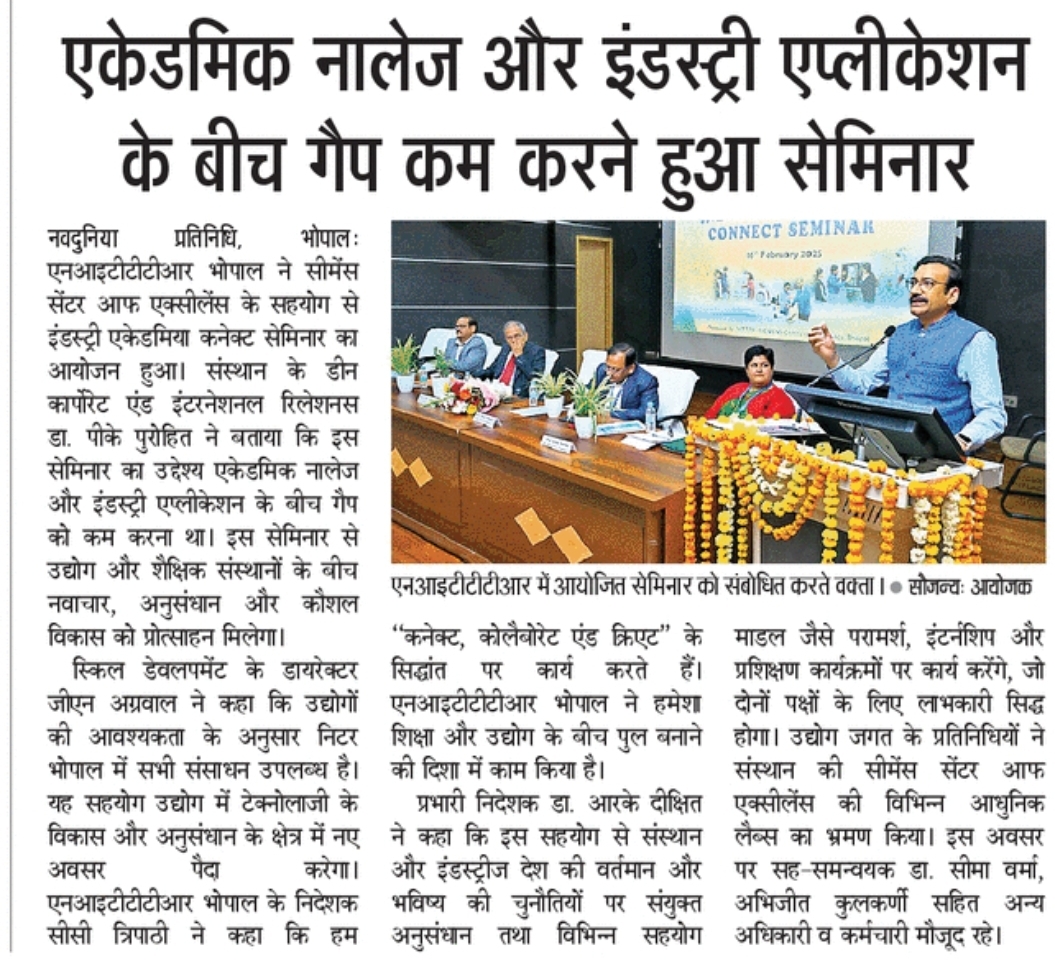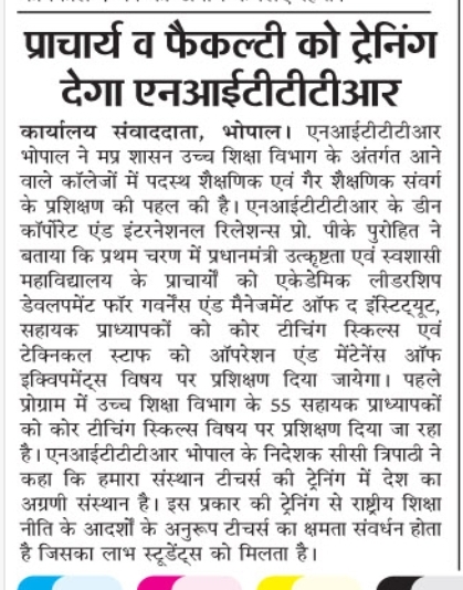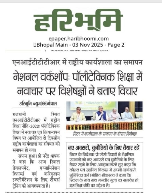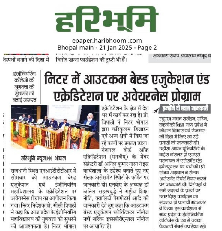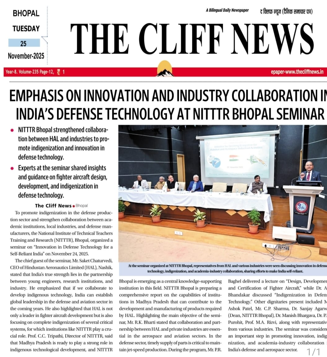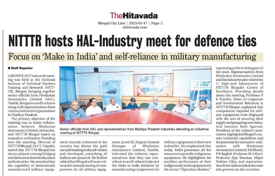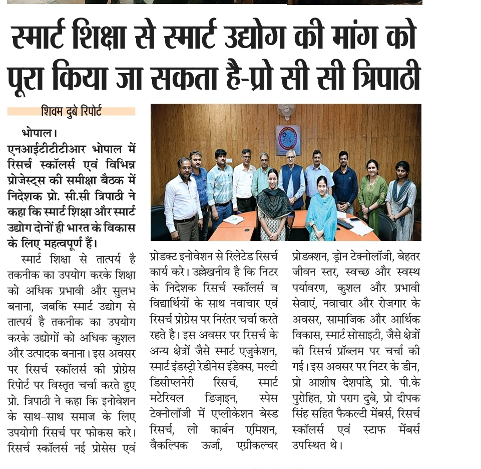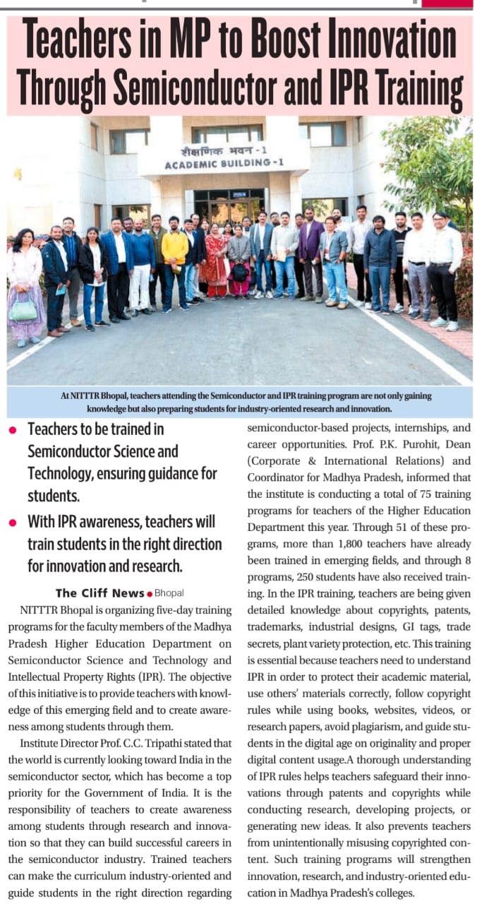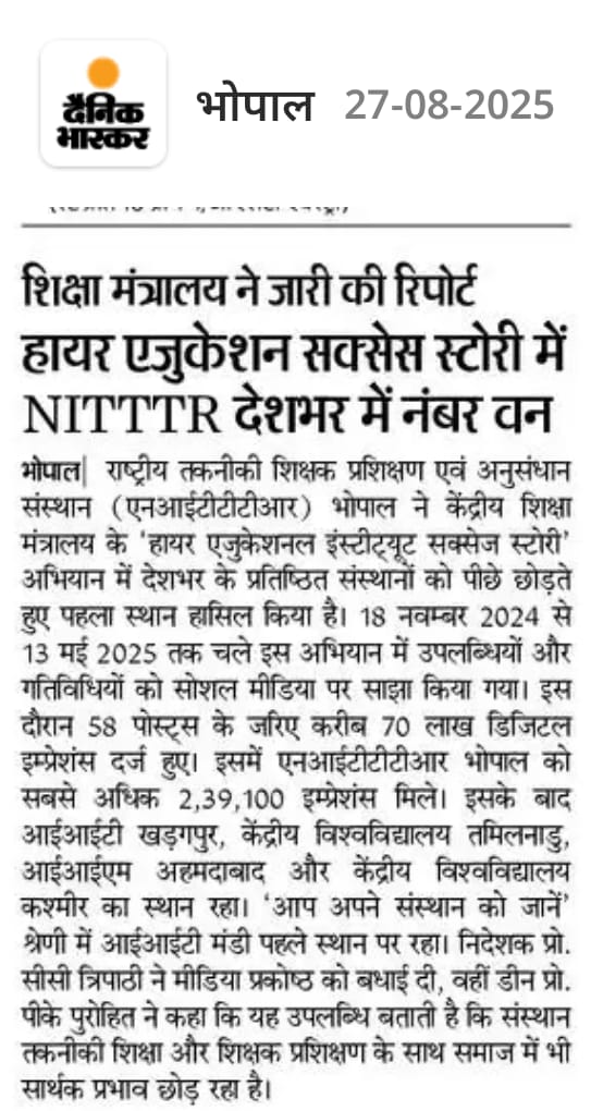 एनआईटीटीटीआर, भोपाल और केंद्रीय कृषि अभियांत्रिकी(सीआईएई) संस्थान के मध्य एमओयू संपन्न