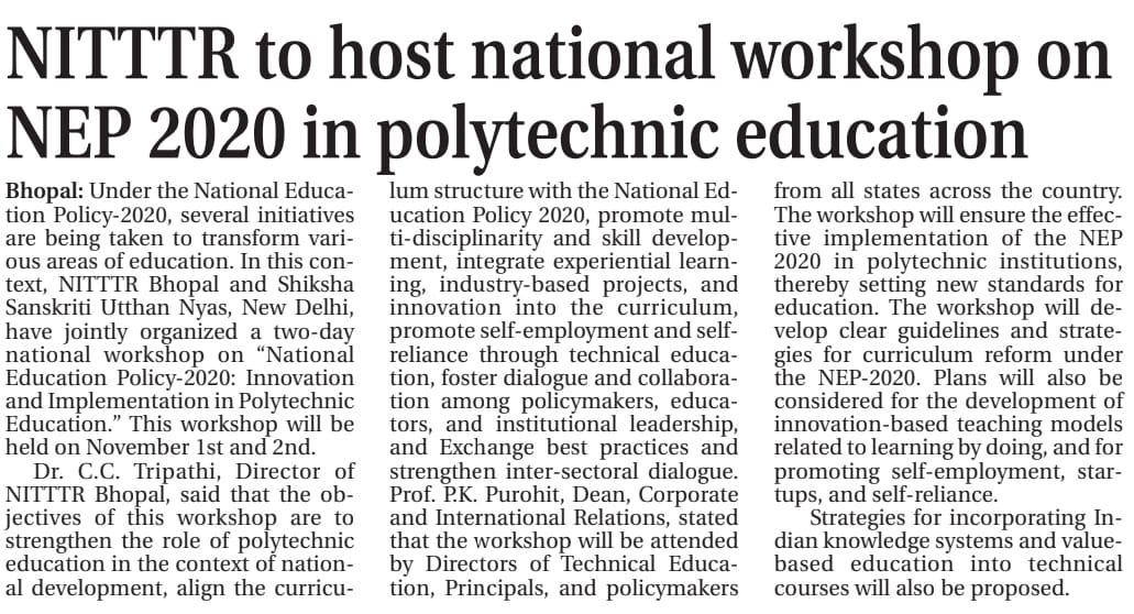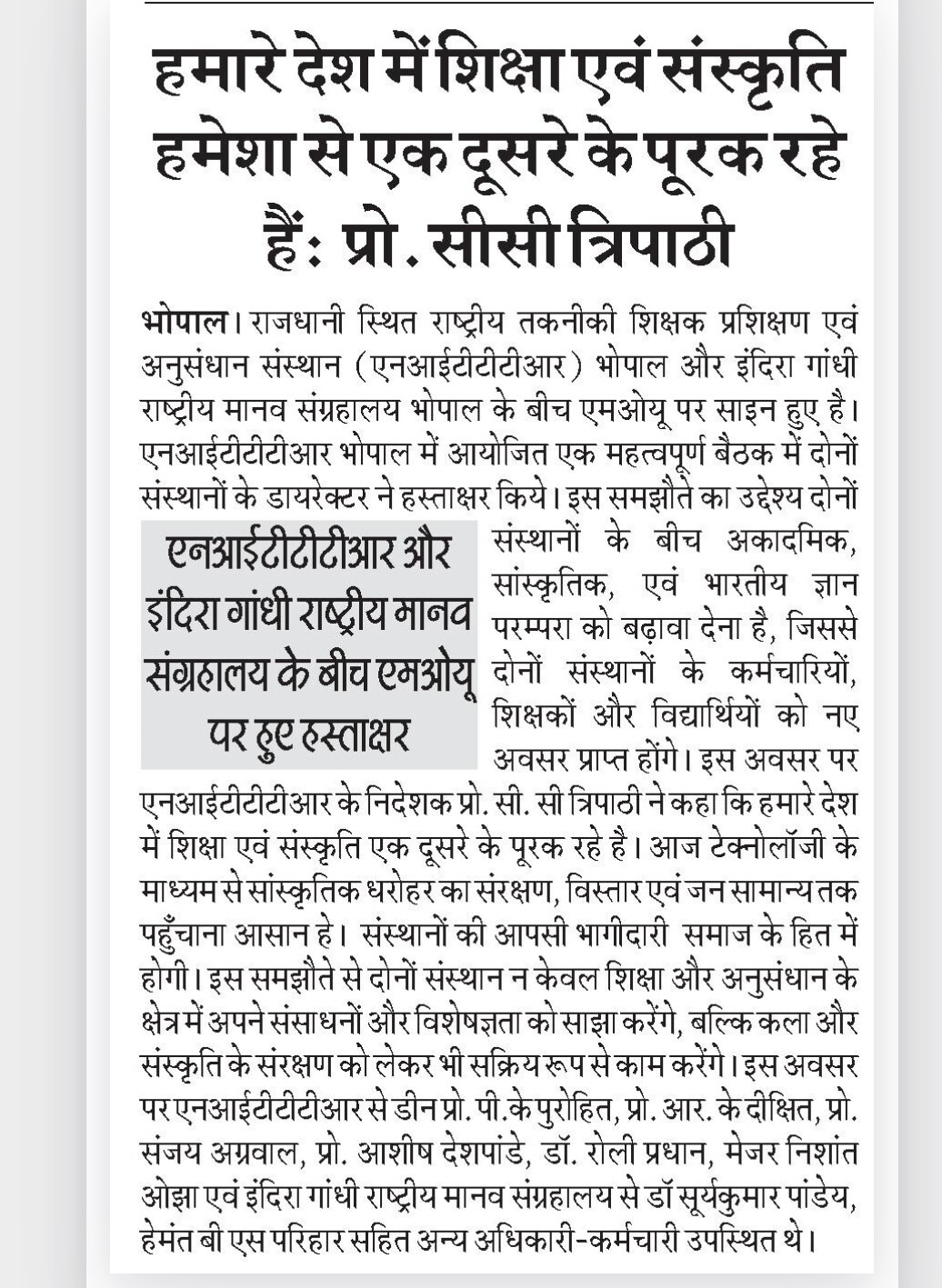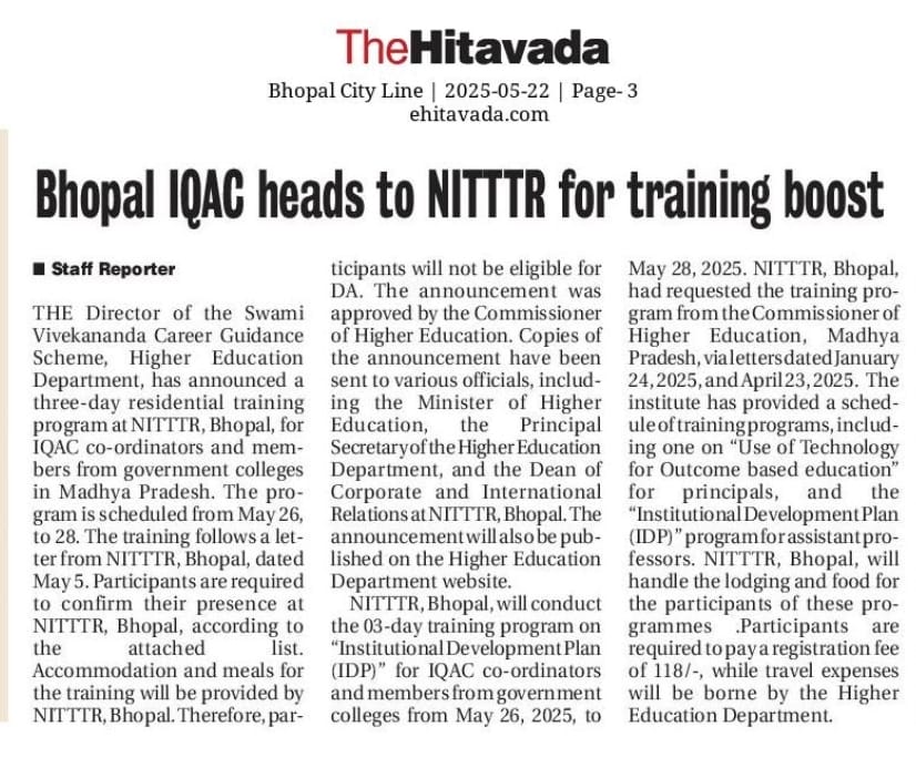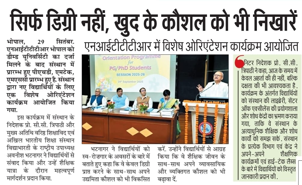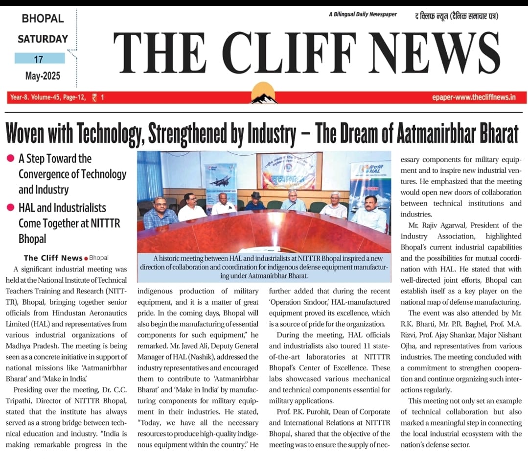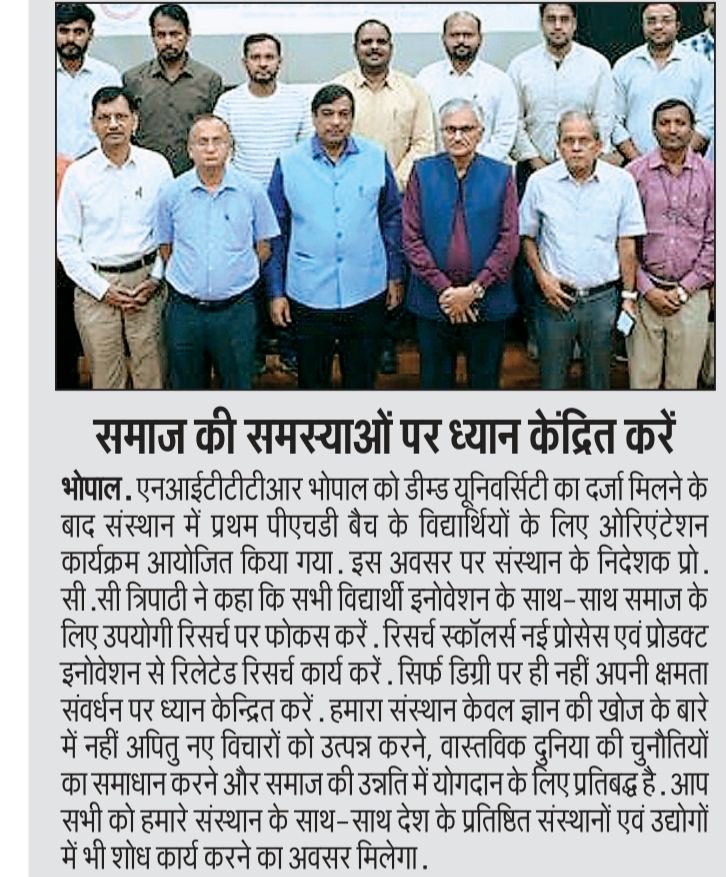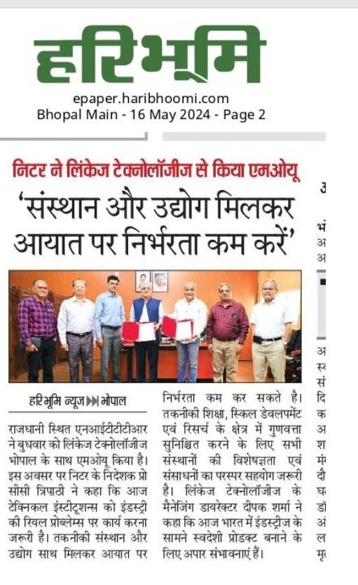 एनआईटीटीटीआर, भोपाल और केंद्रीय कृषि अभियांत्रिकी(सीआईएई) संस्थान के मध्य एमओयू संपन्न
