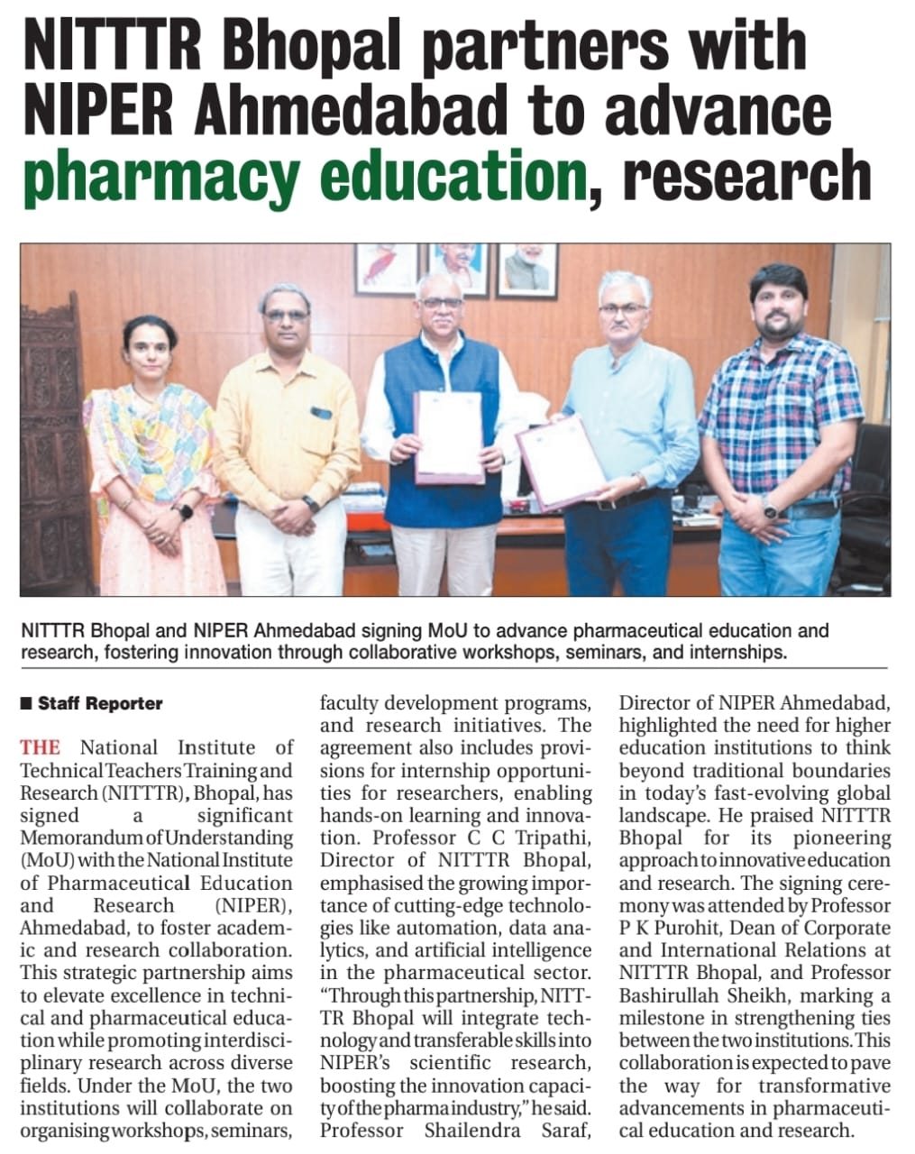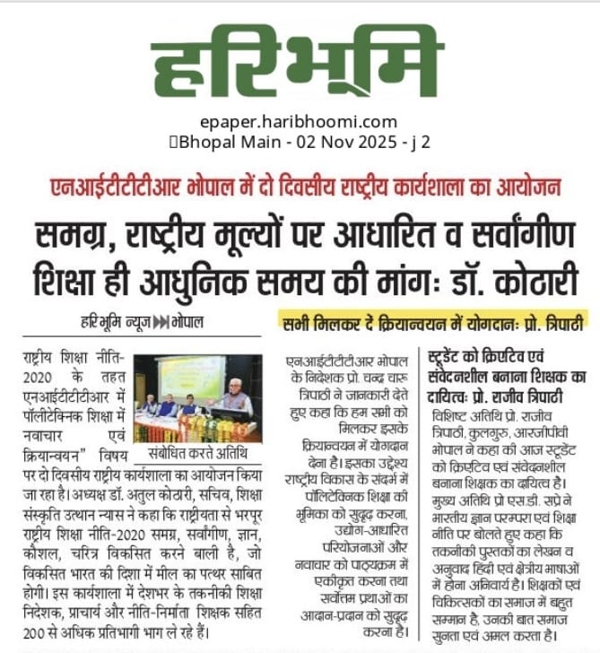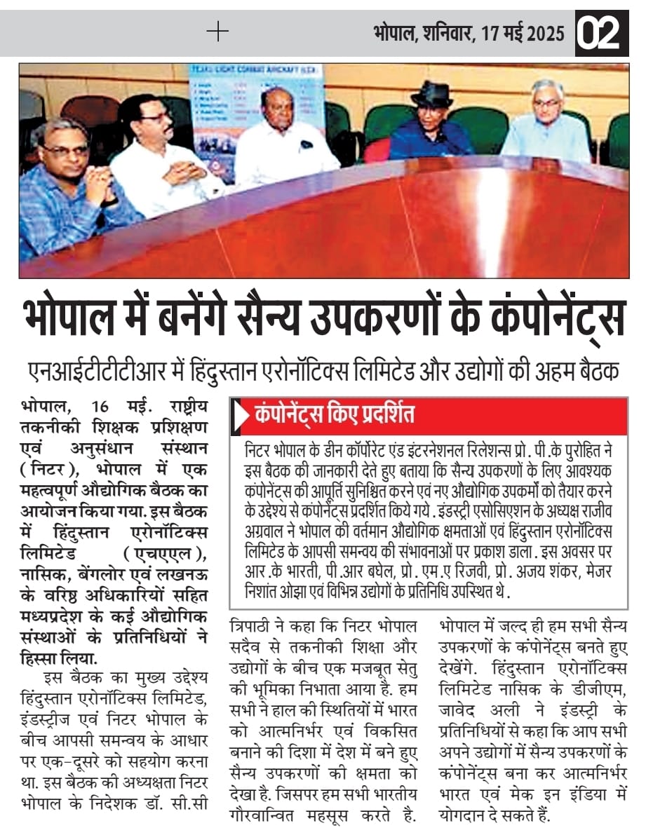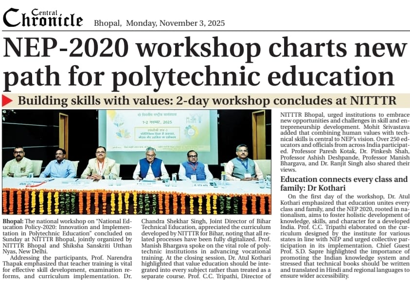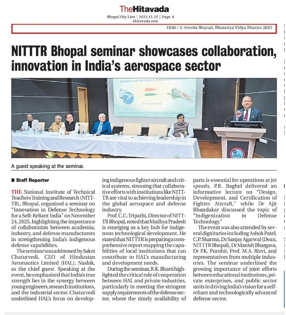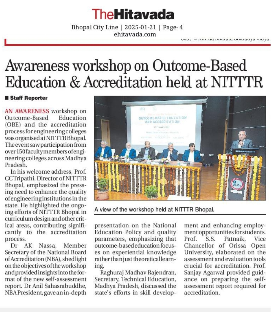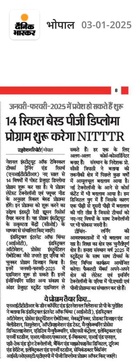 एनआईटीटीटीआर, भोपाल और केंद्रीय कृषि अभियांत्रिकी(सीआईएई) संस्थान के मध्य एमओयू संपन्न