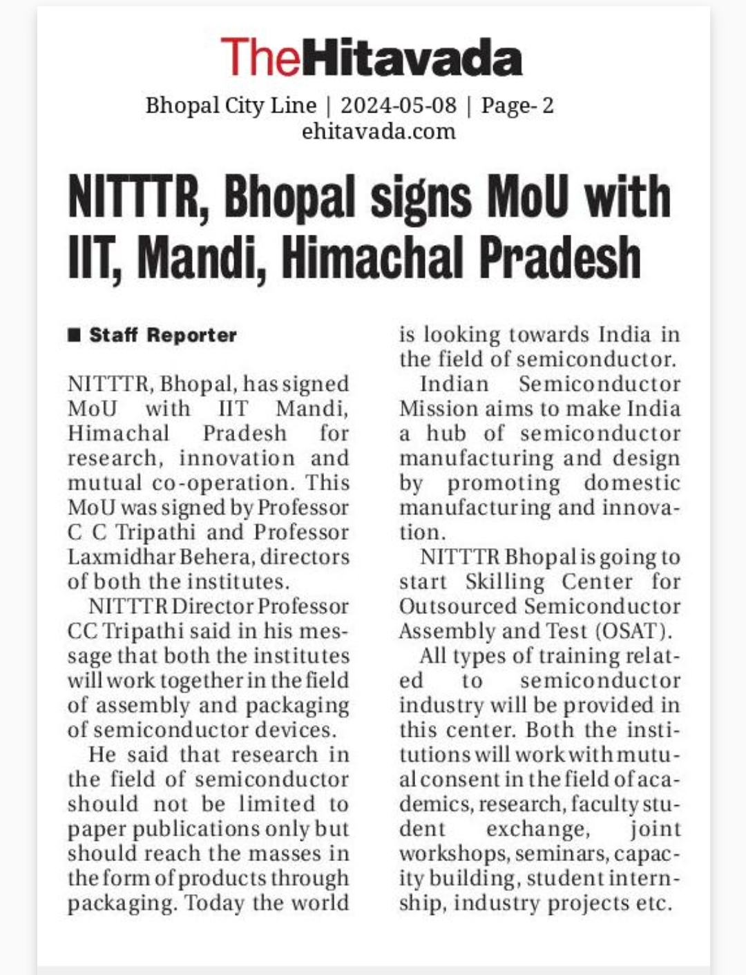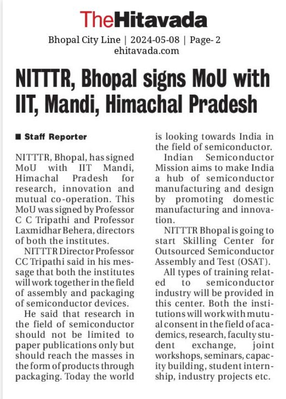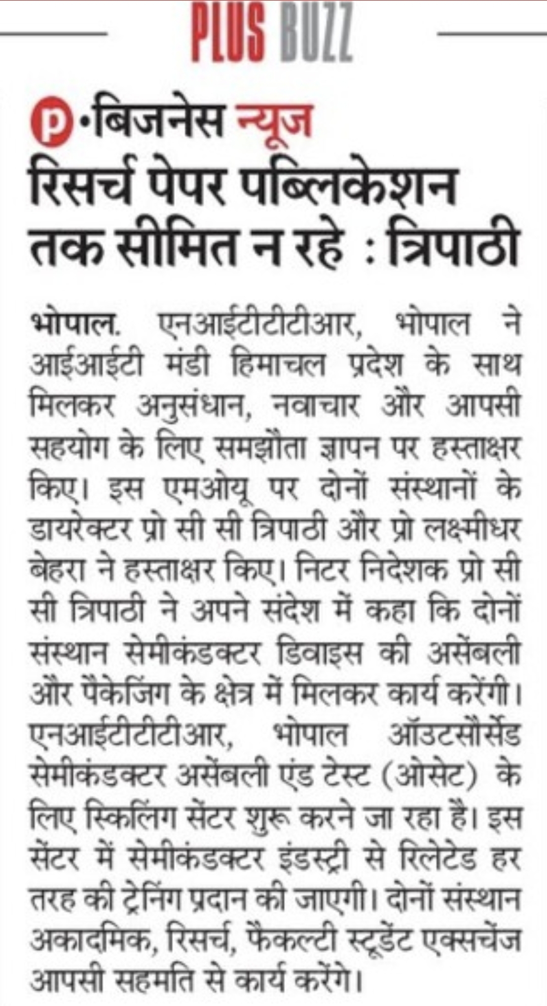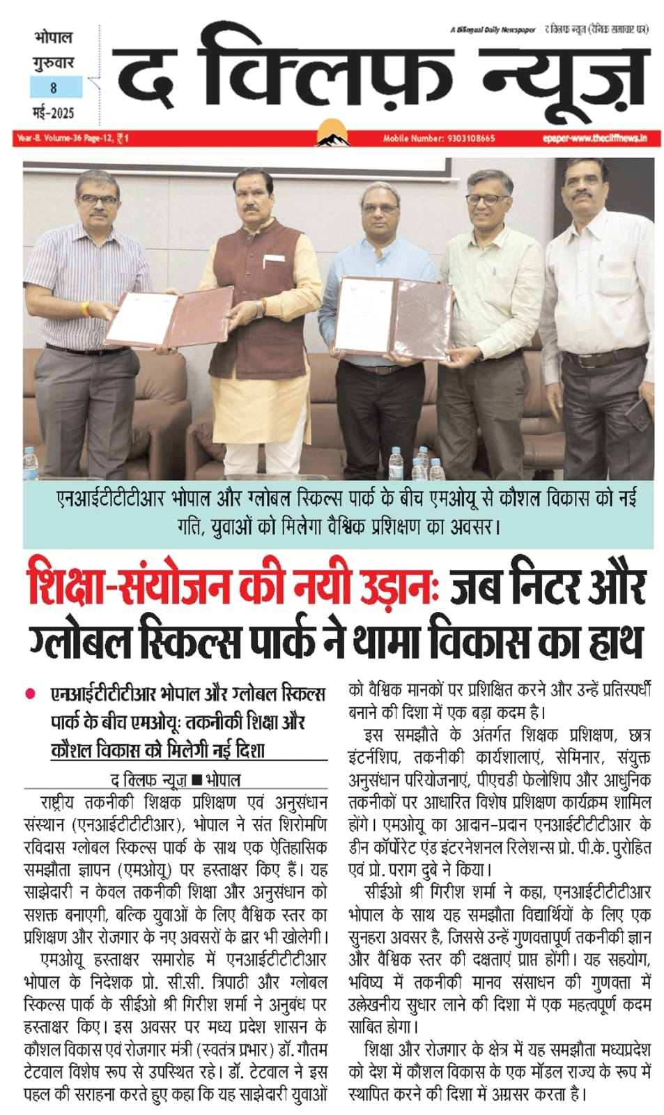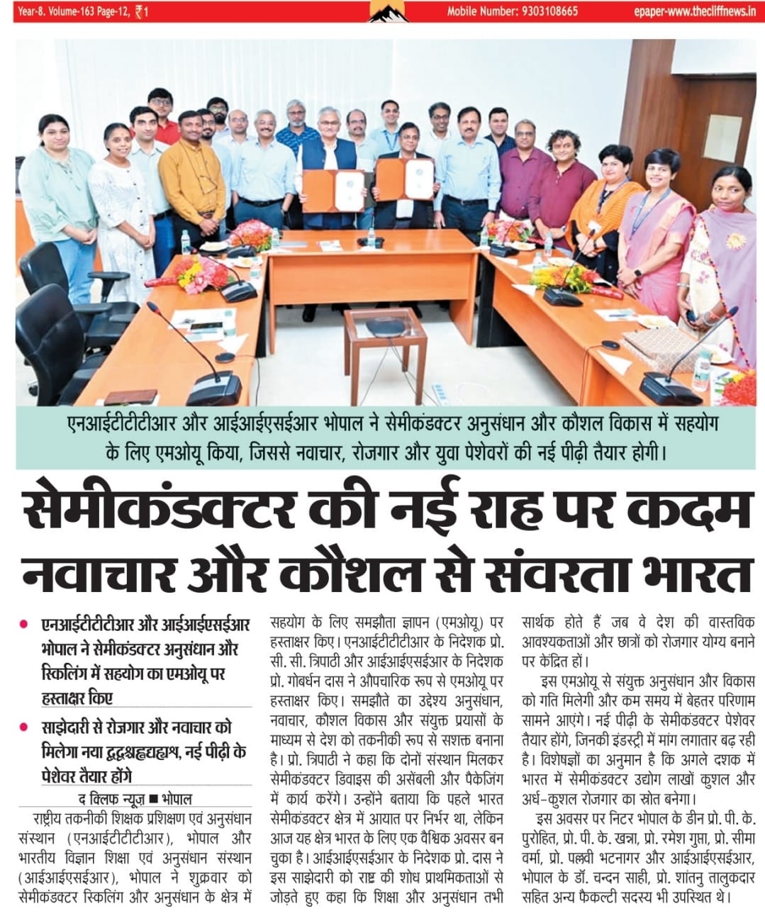 एनआईटीटीटीआर, भोपाल और केंद्रीय कृषि अभियांत्रिकी(सीआईएई) संस्थान के मध्य एमओयू संपन्न