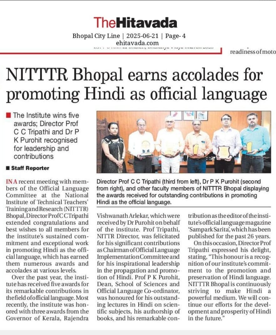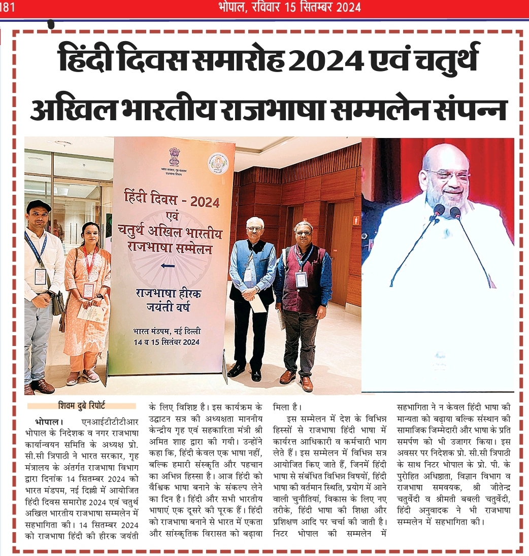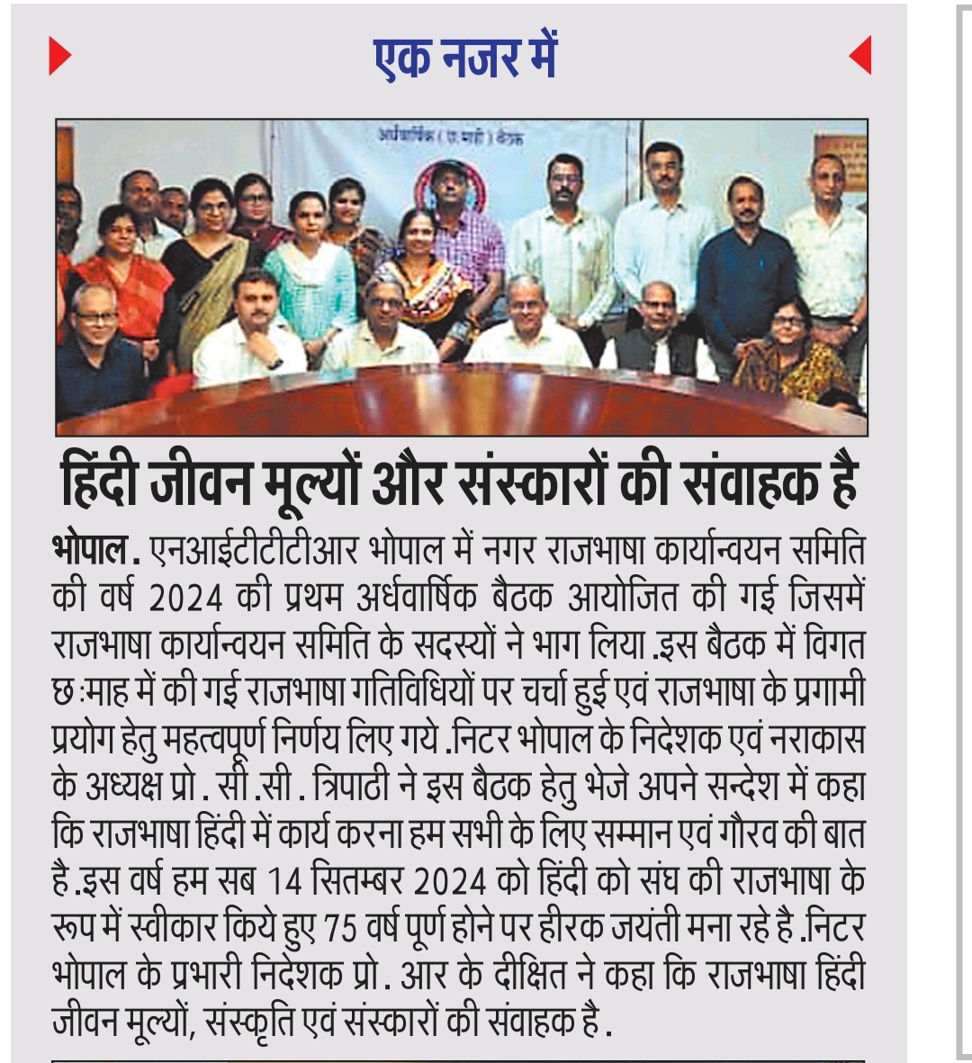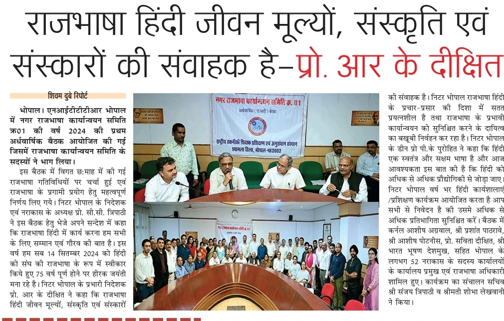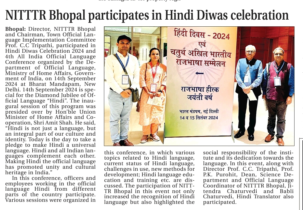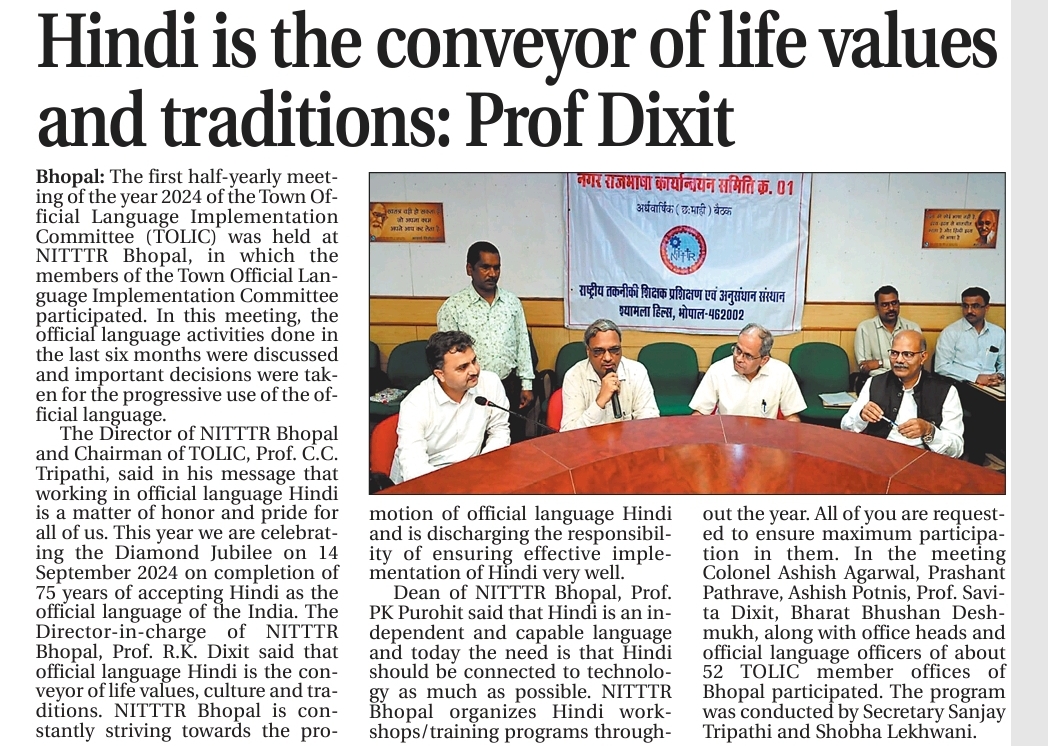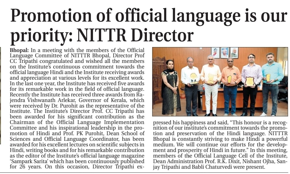 NITTTR Director Prof.C.C.Tripathi lays stress on promoting the use of Hindi in official work