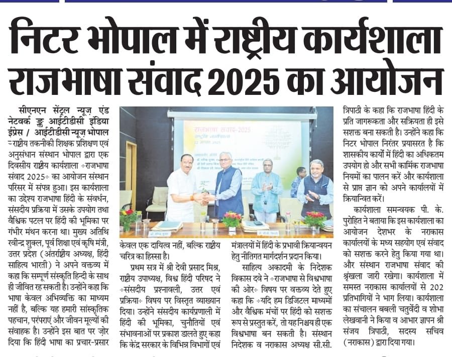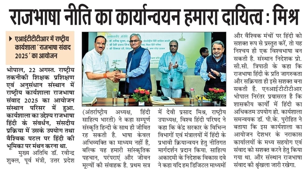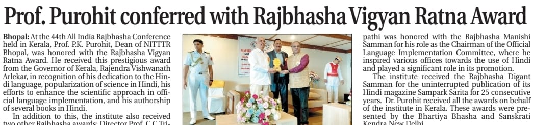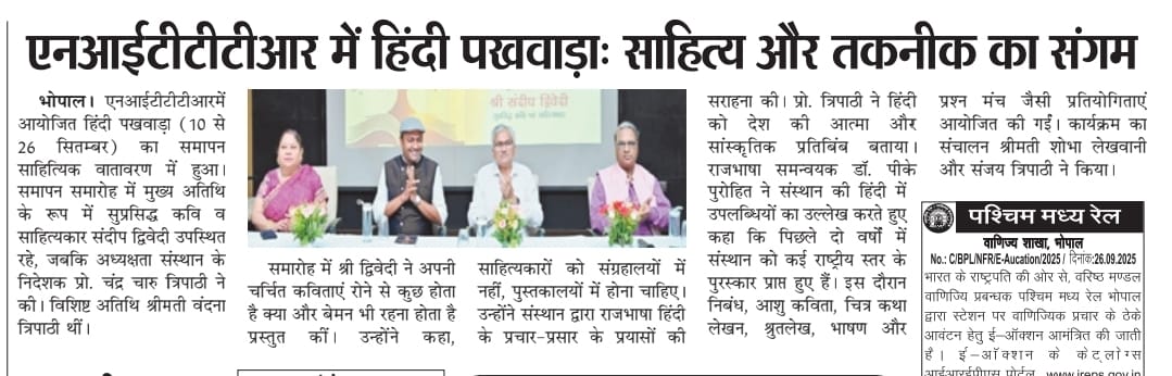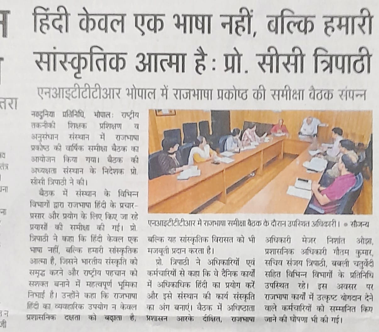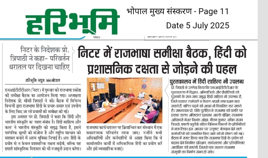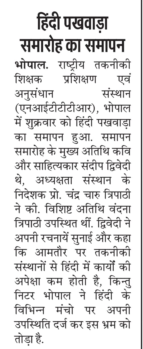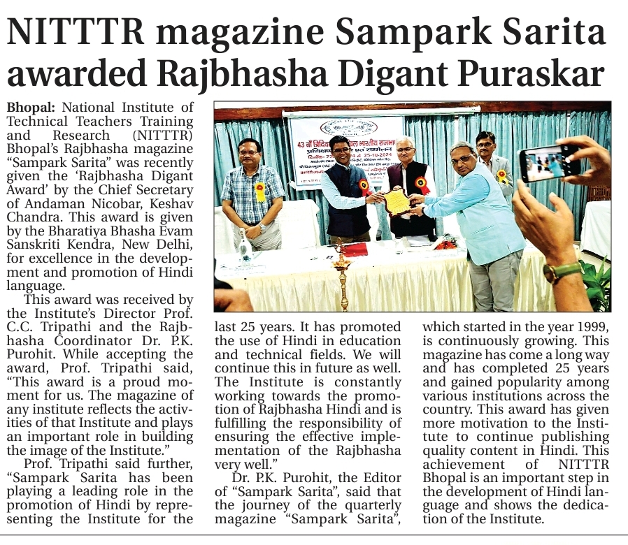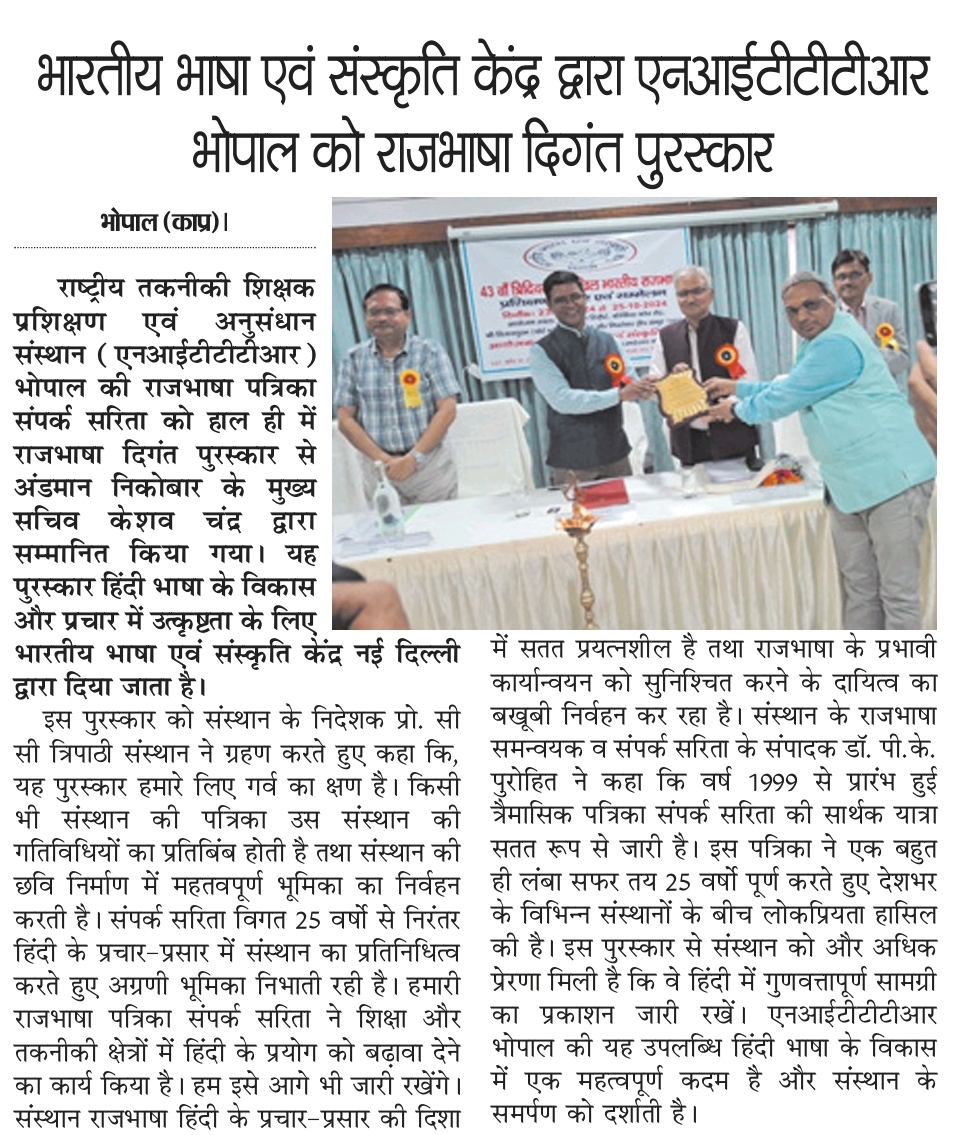 NITTTR Director Prof.C.C.Tripathi lays stress on promoting the use of Hindi in official work