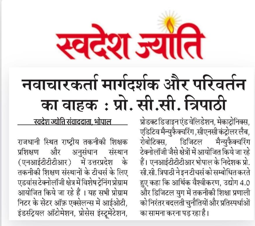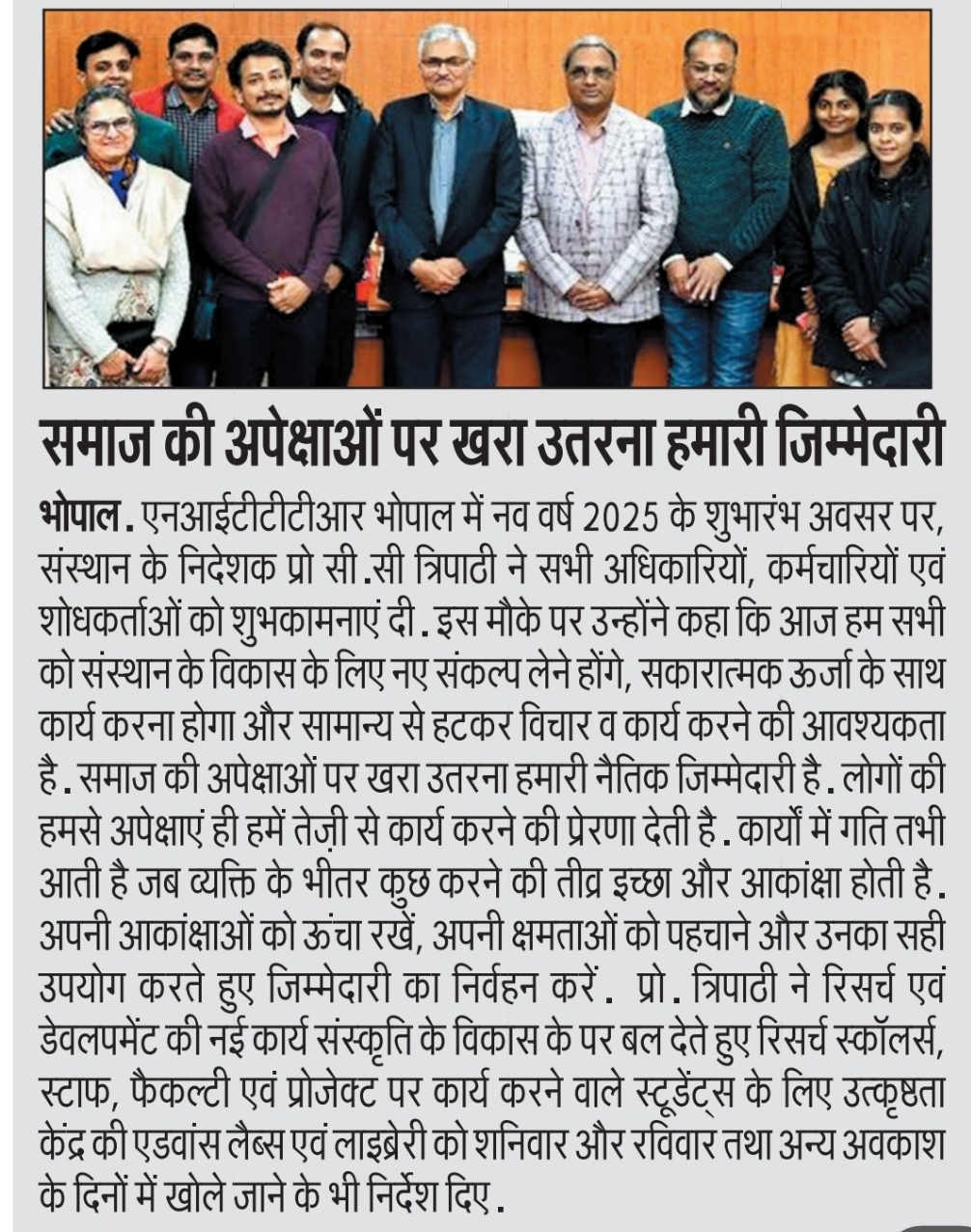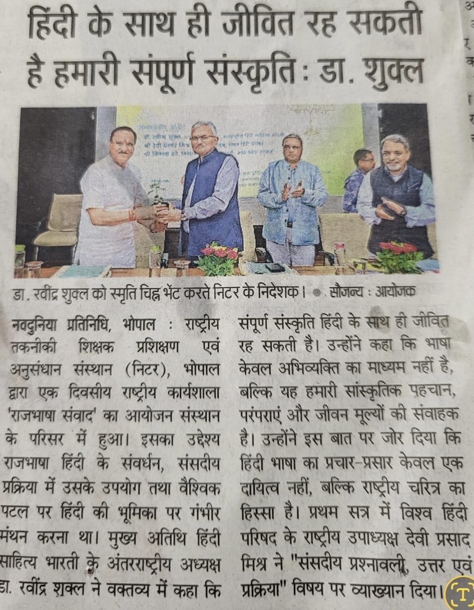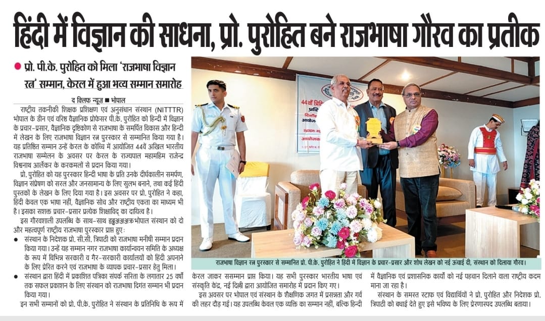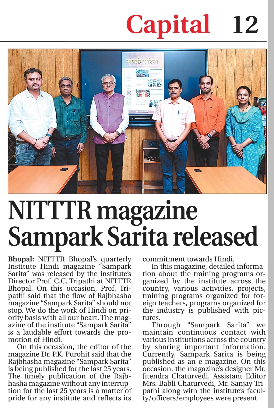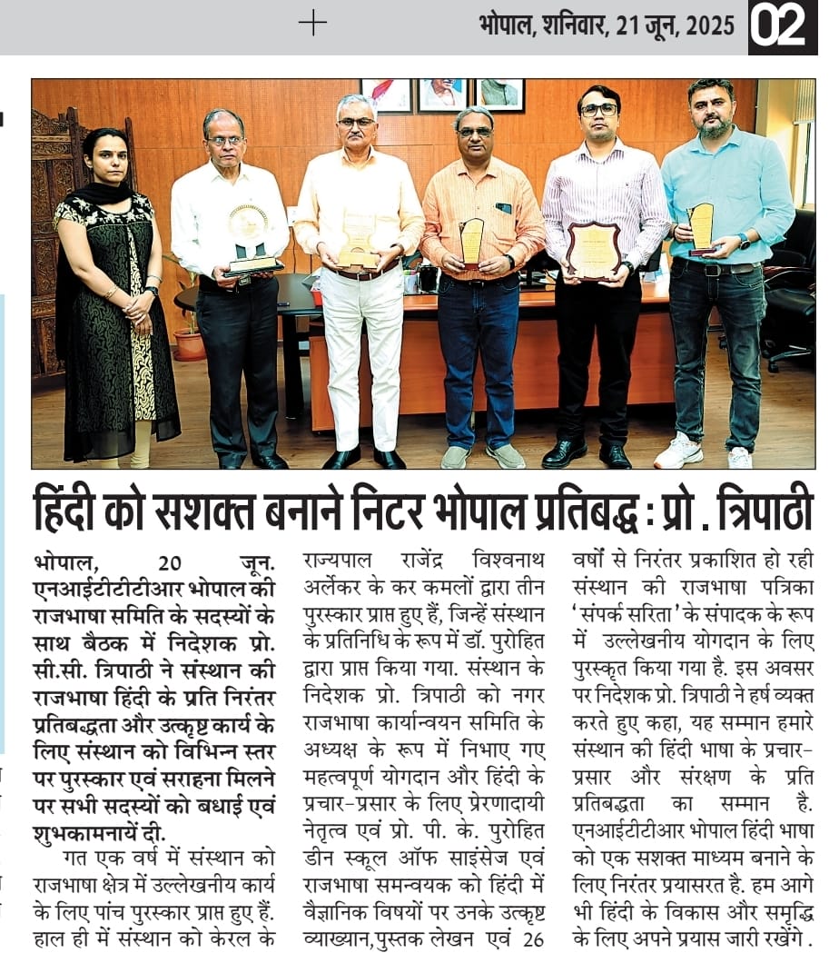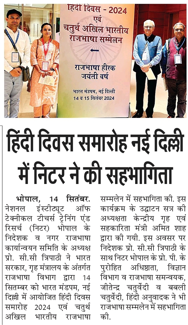 NITTTR Director Prof.C.C.Tripathi lays stress on promoting the use of Hindi in official work