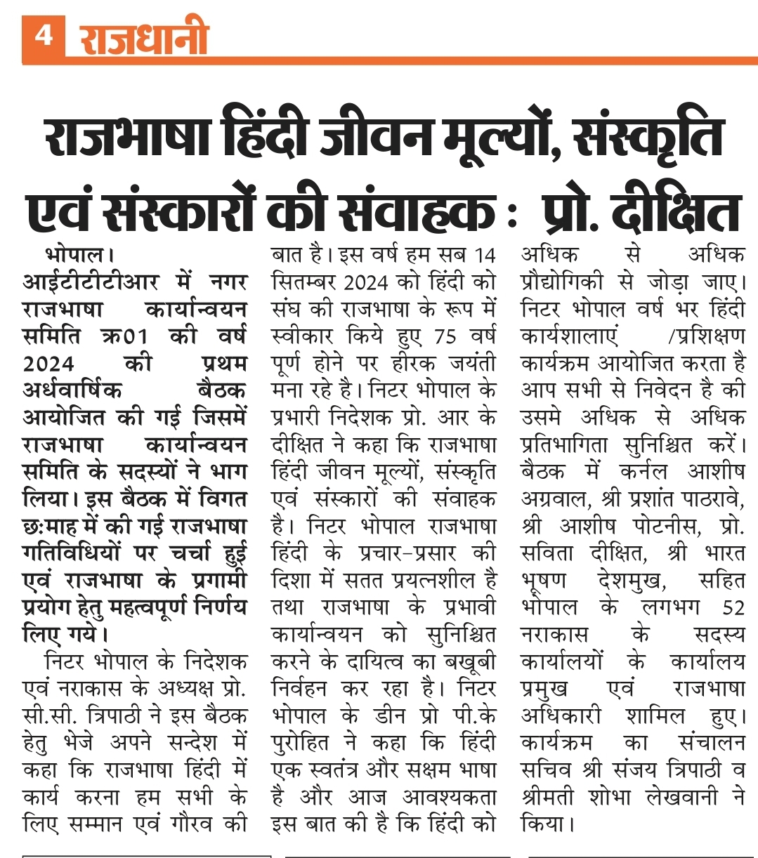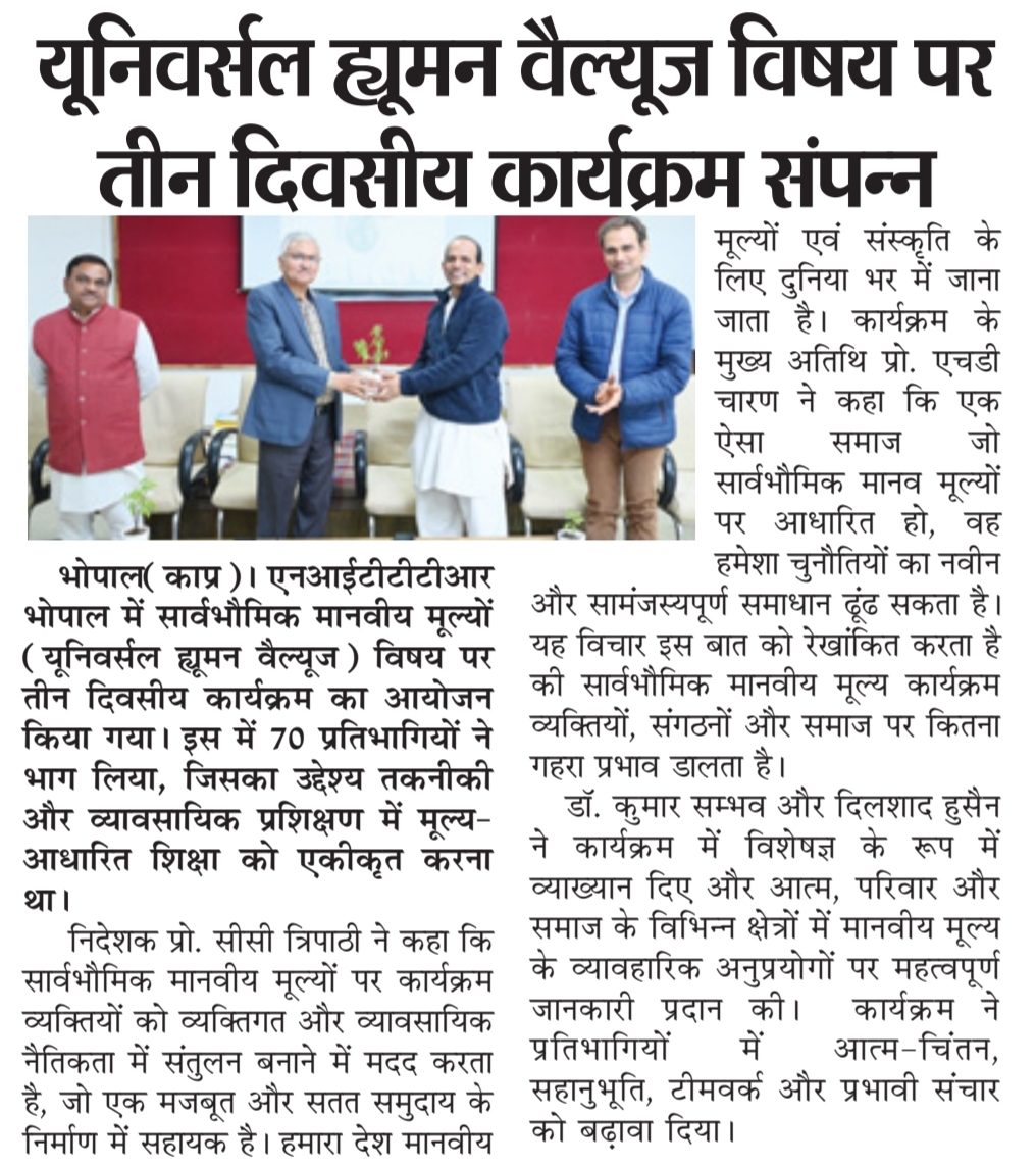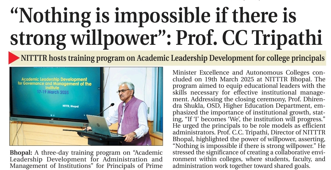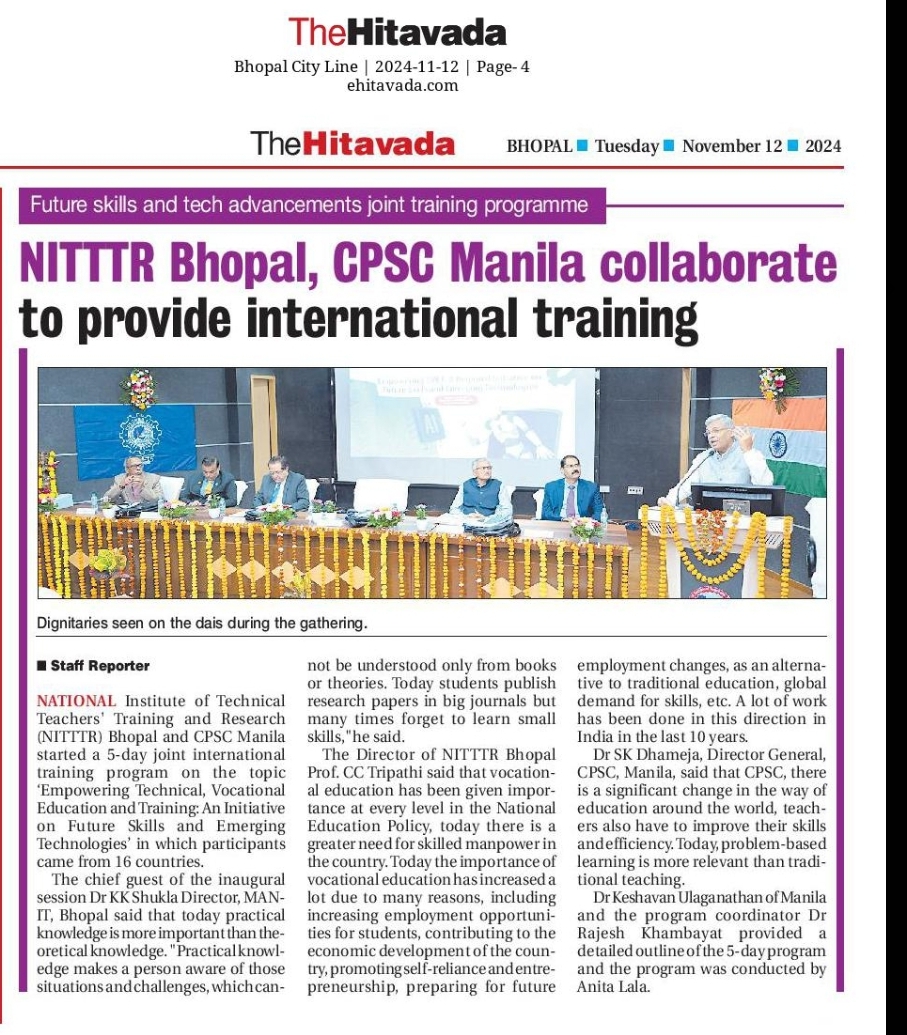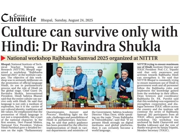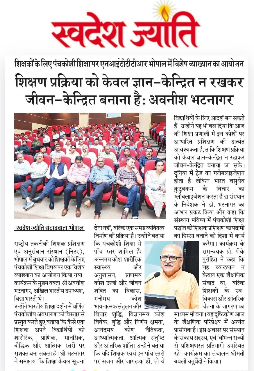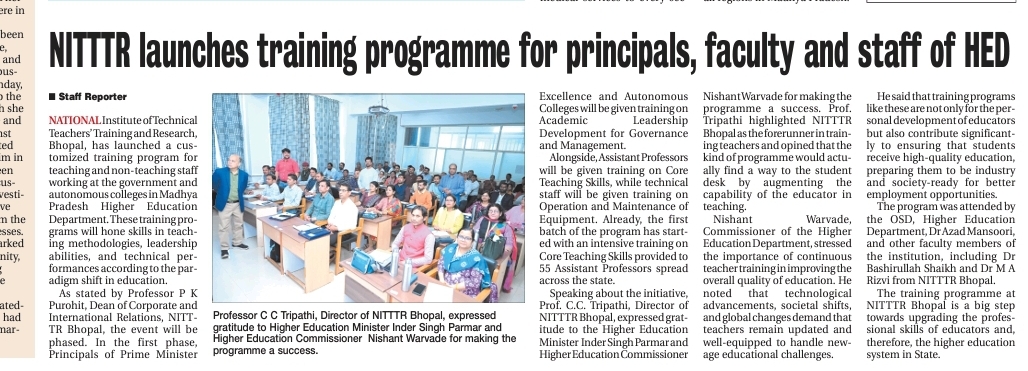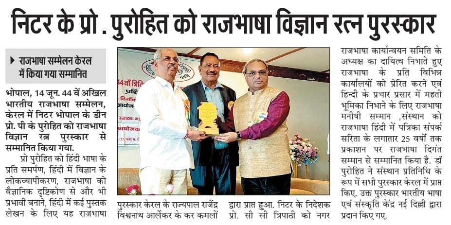 NITTTR Director Prof.C.C.Tripathi lays stress on promoting the use of Hindi in official work