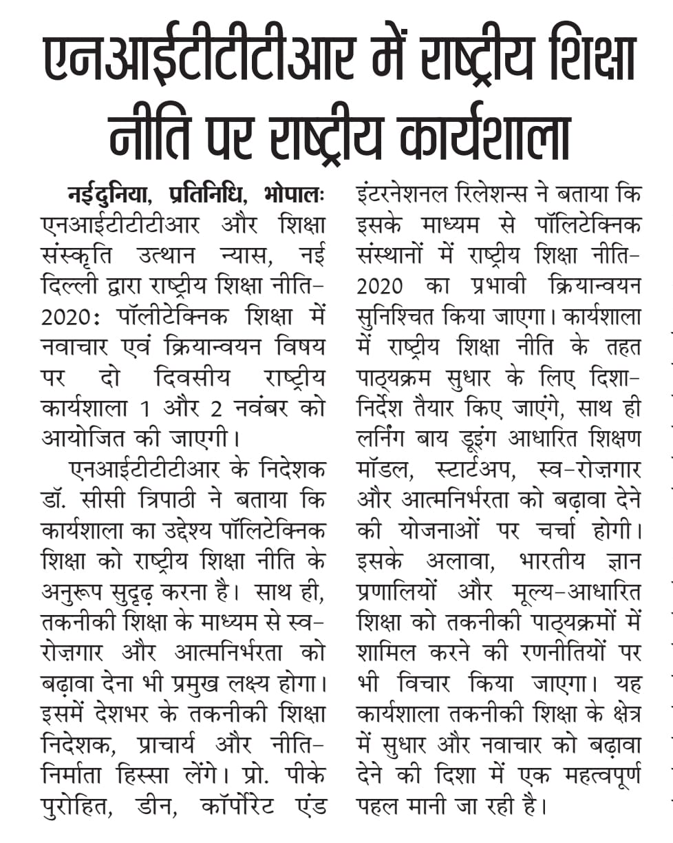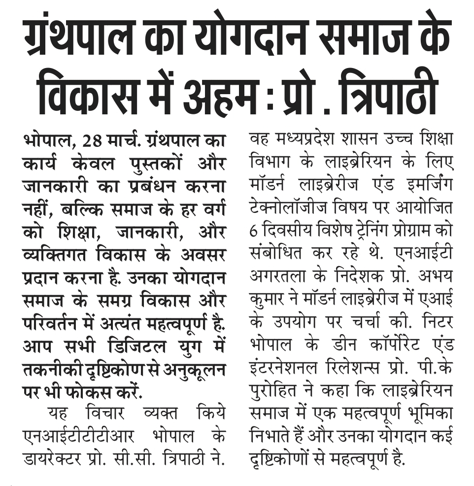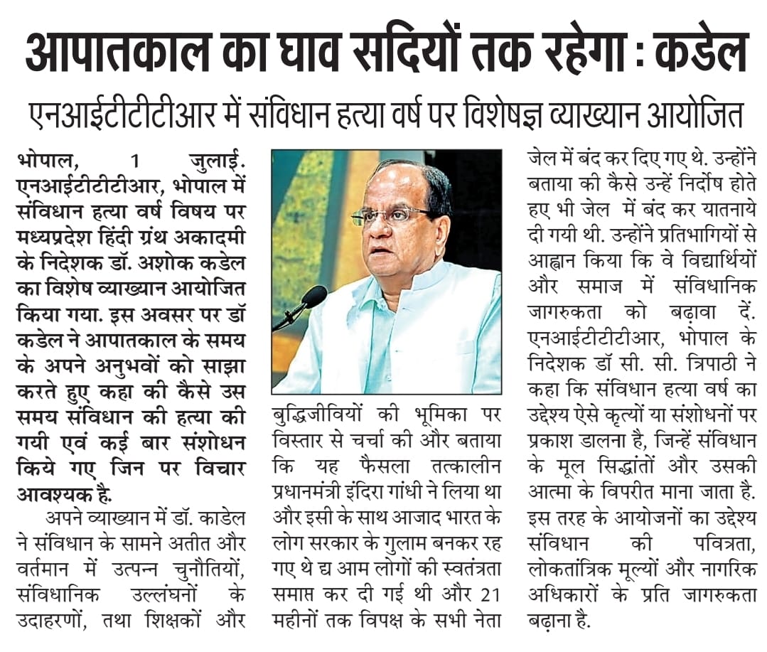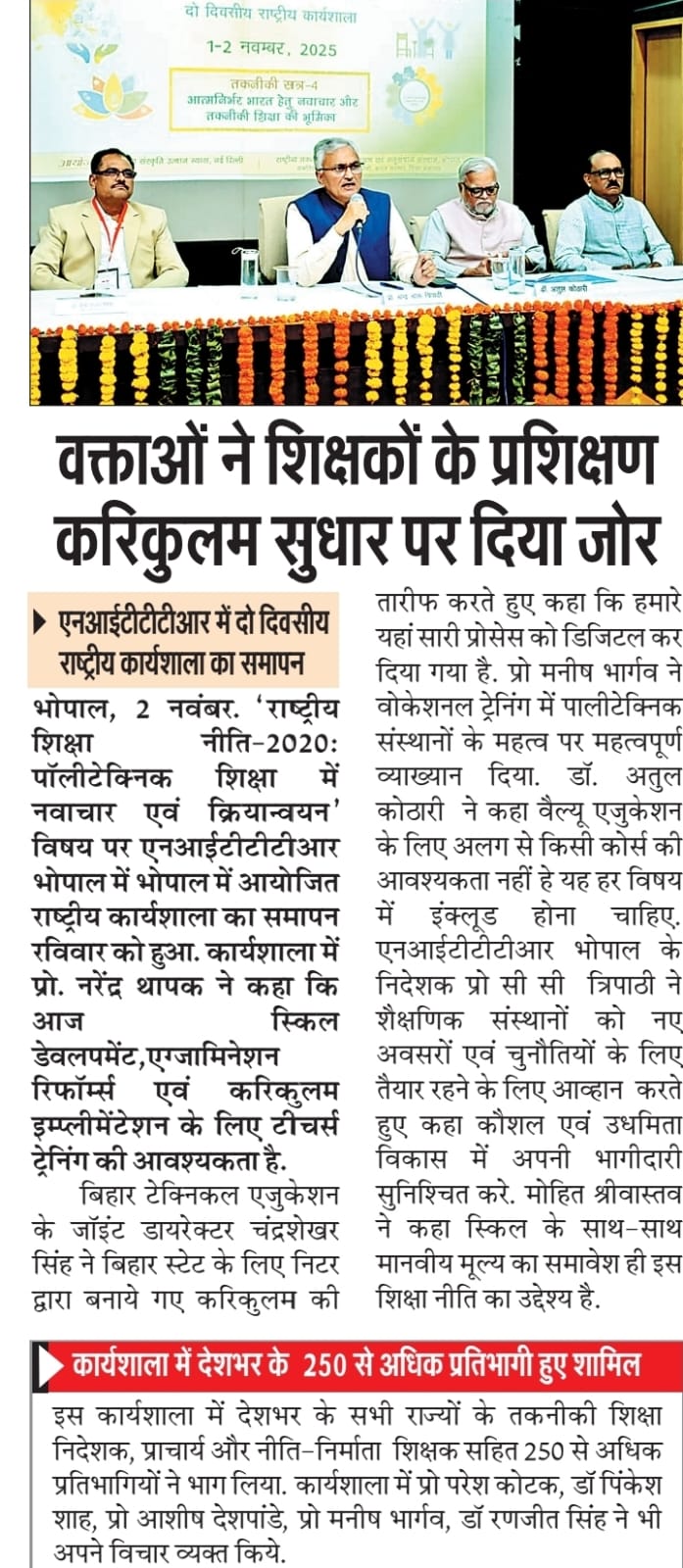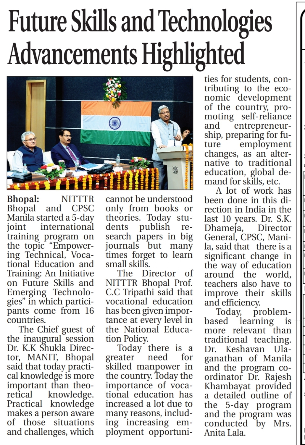 NITTTR Director Prof.C.C.Tripathi lays stress on promoting the use of Hindi in official work