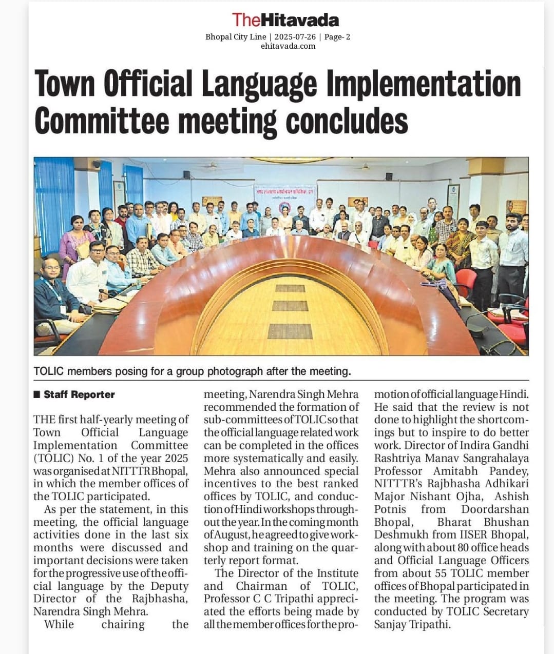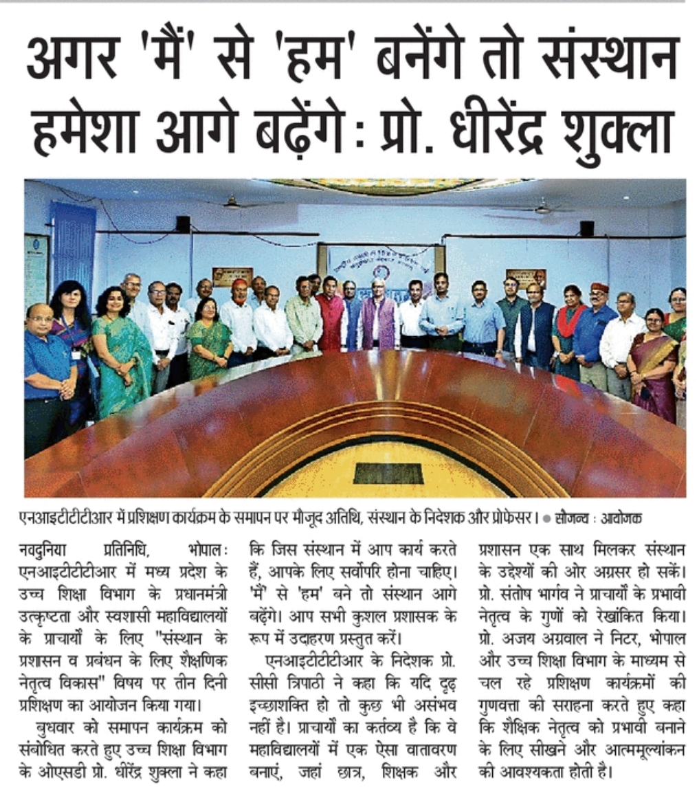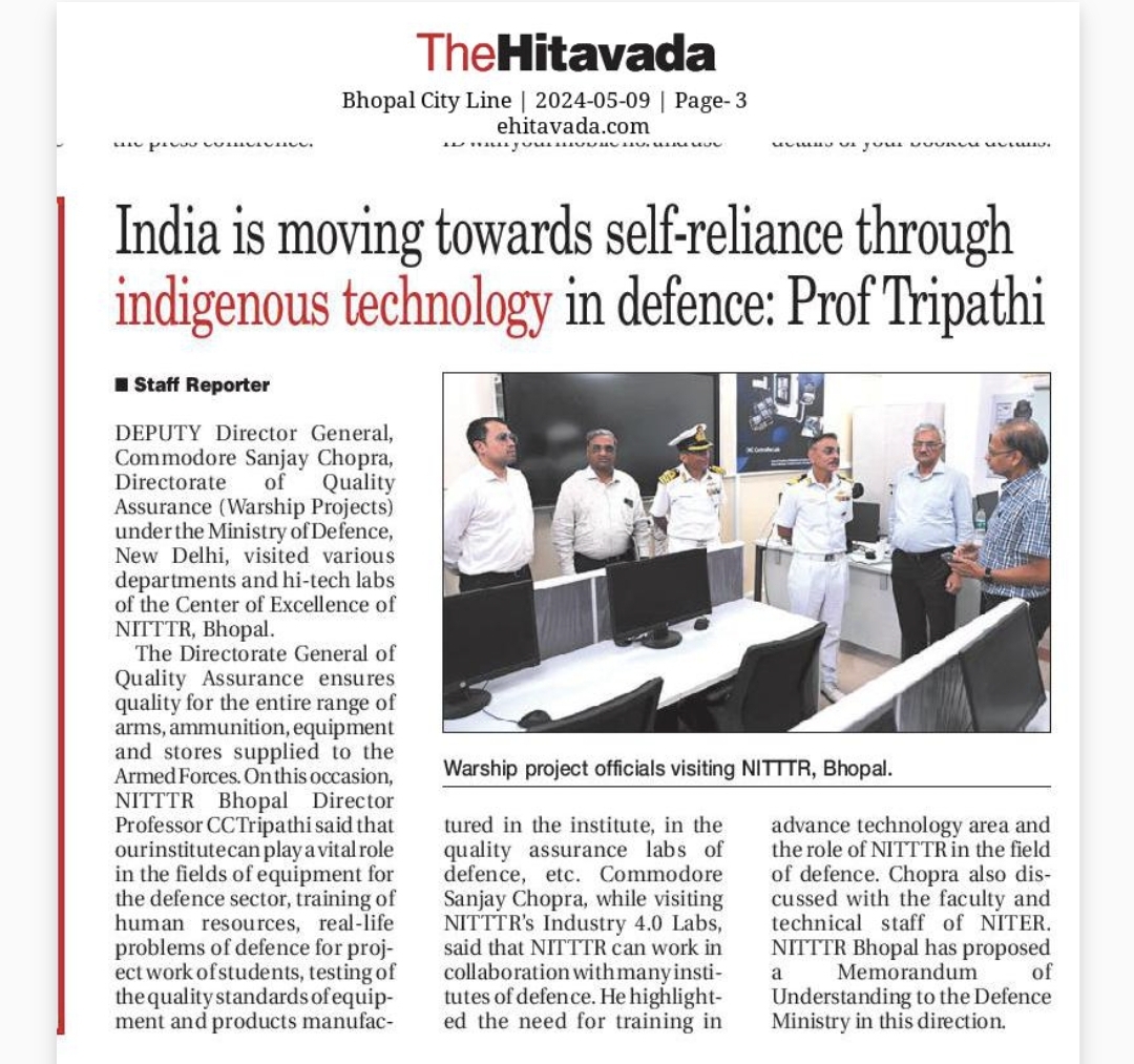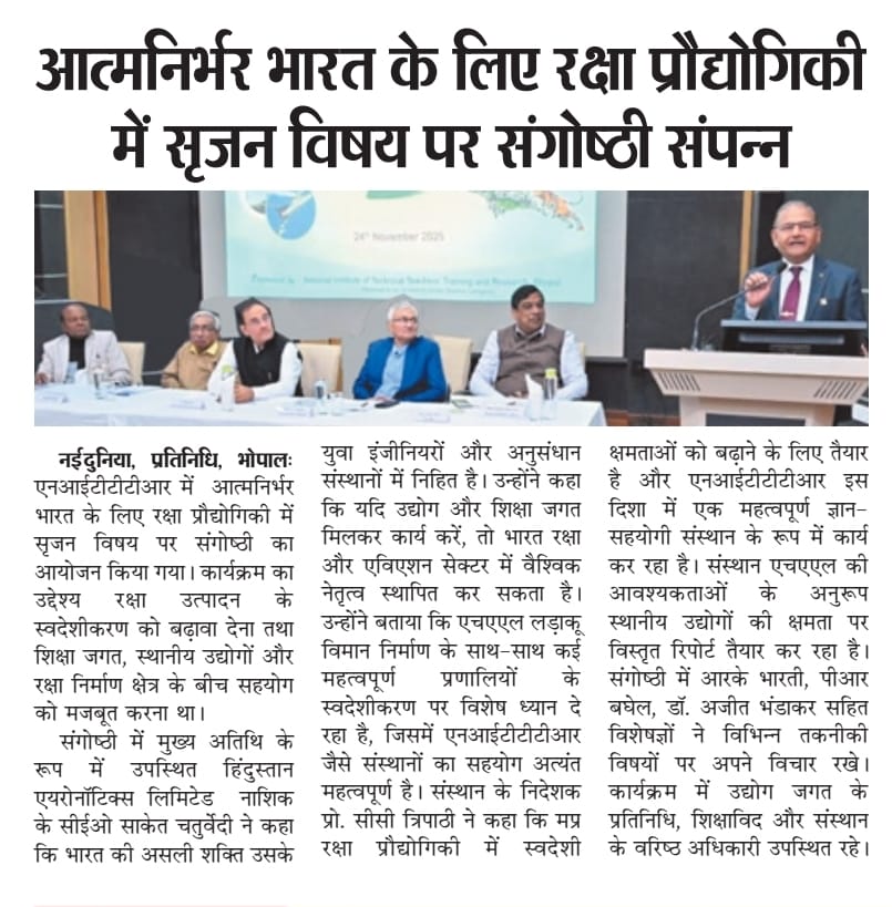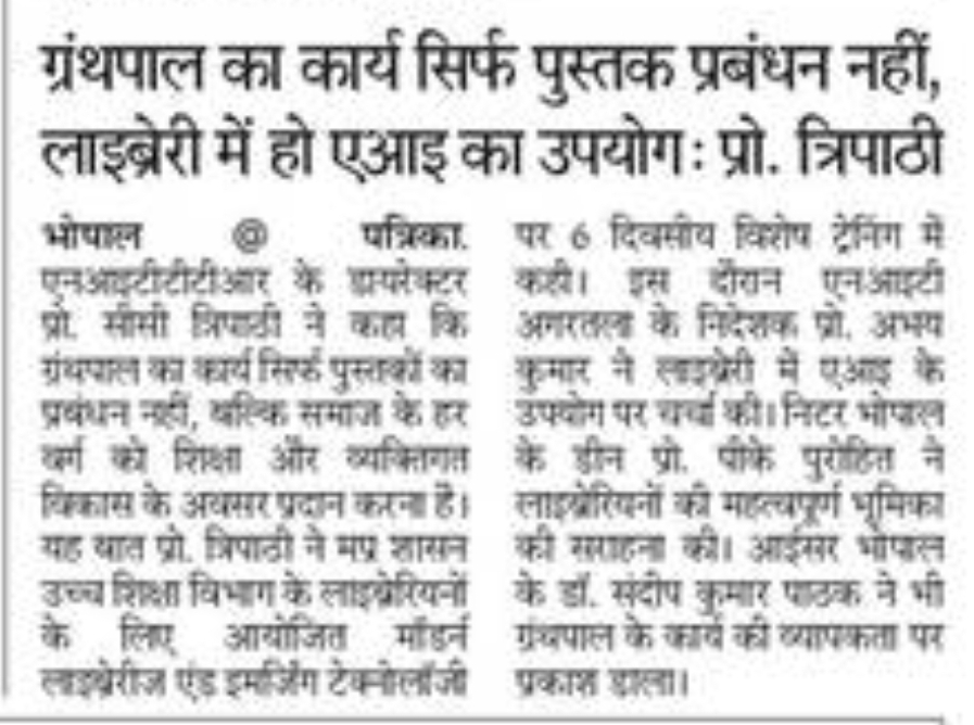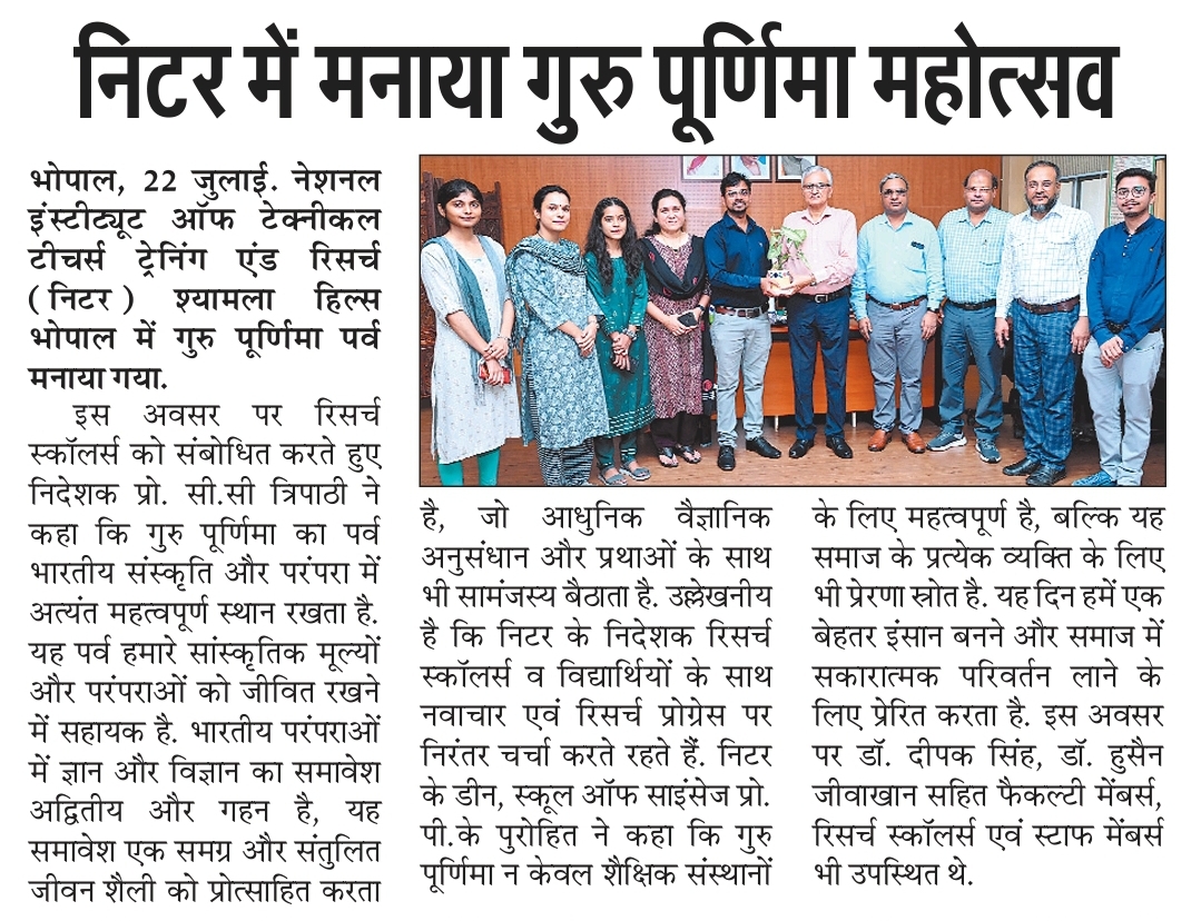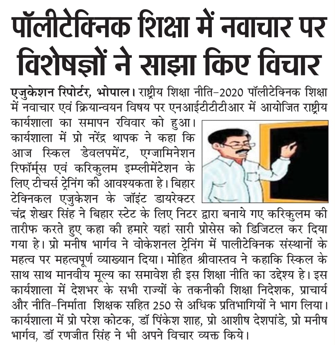 NITTTR Director Prof.C.C.Tripathi lays stress on promoting the use of Hindi in official work