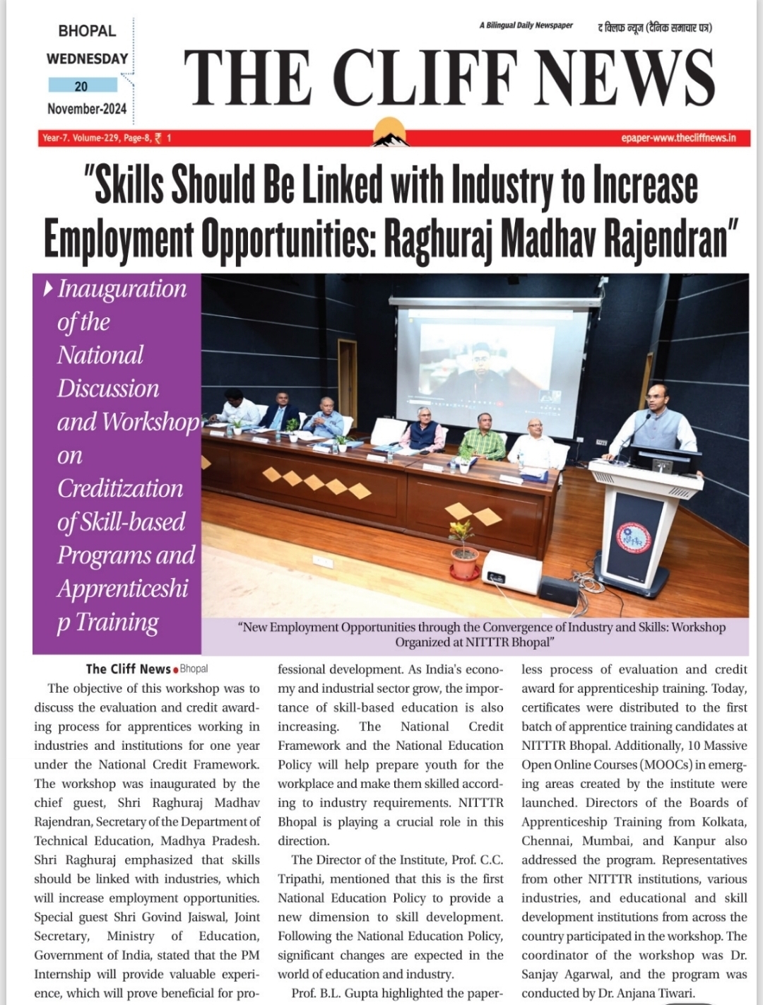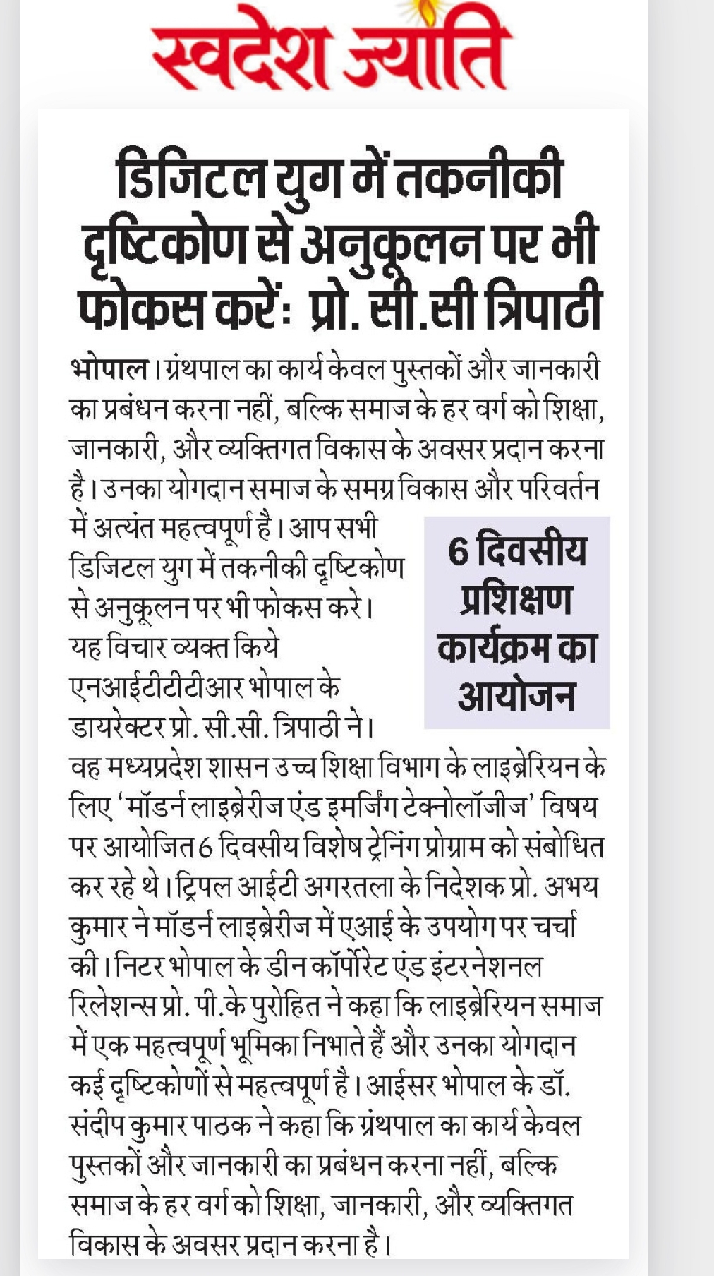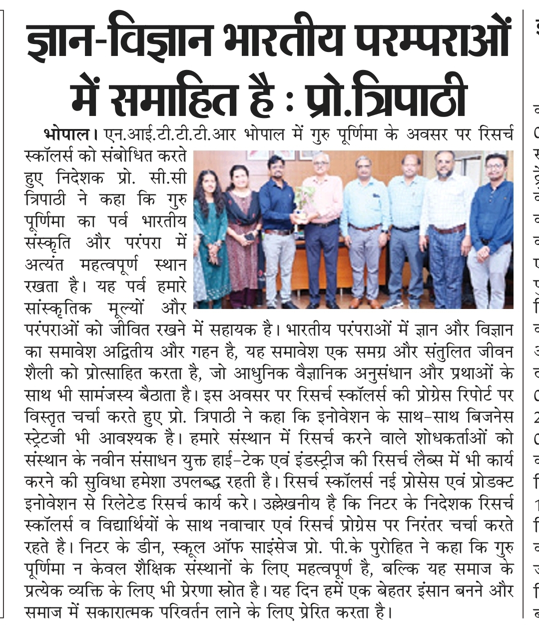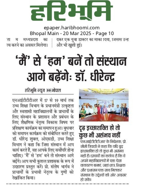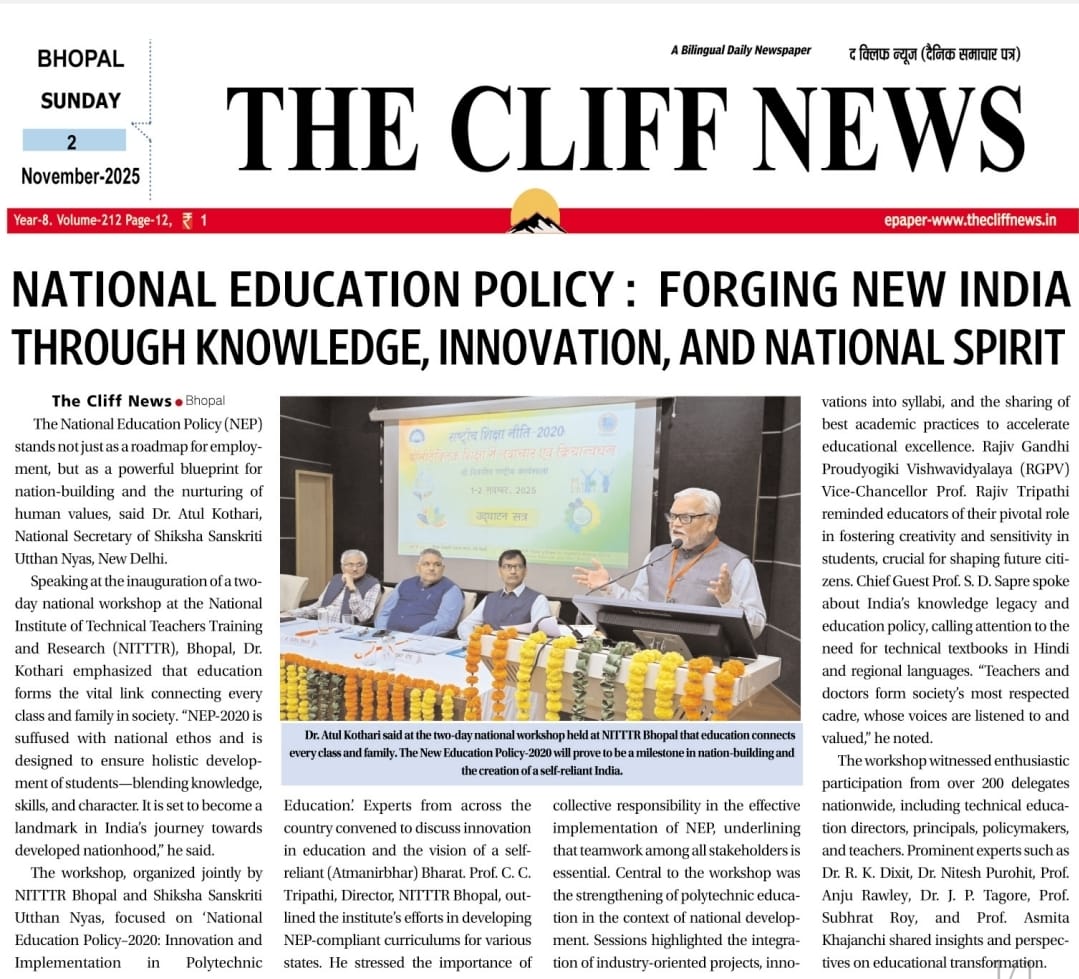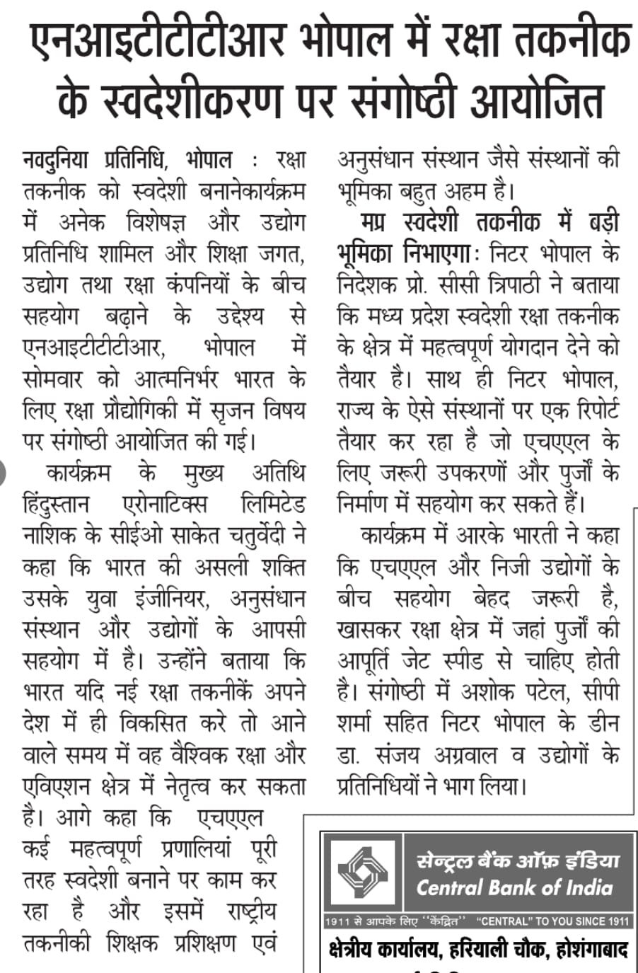 NITTTR Director Prof.C.C.Tripathi lays stress on promoting the use of Hindi in official work