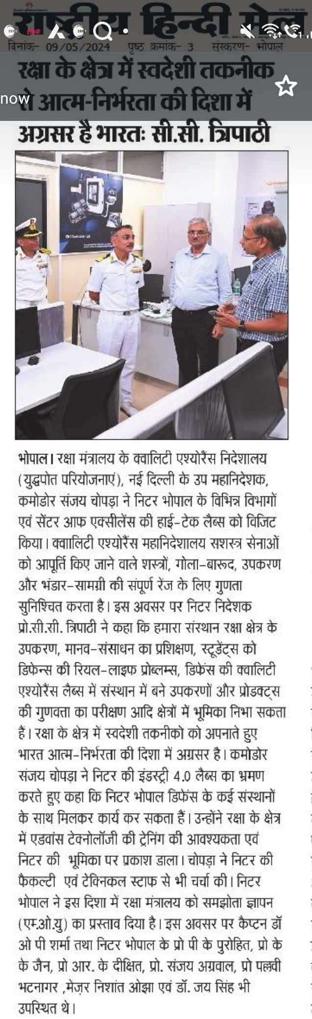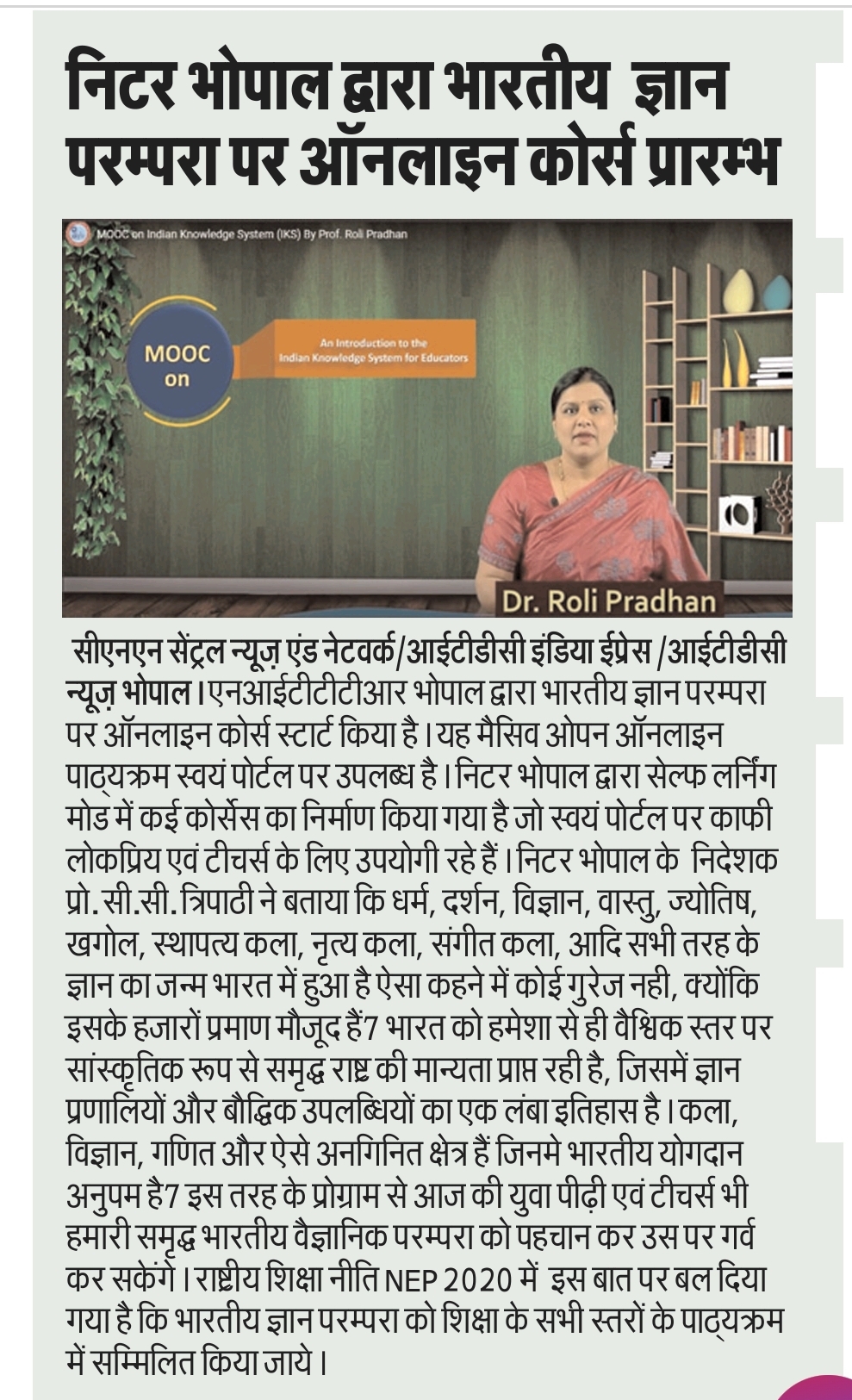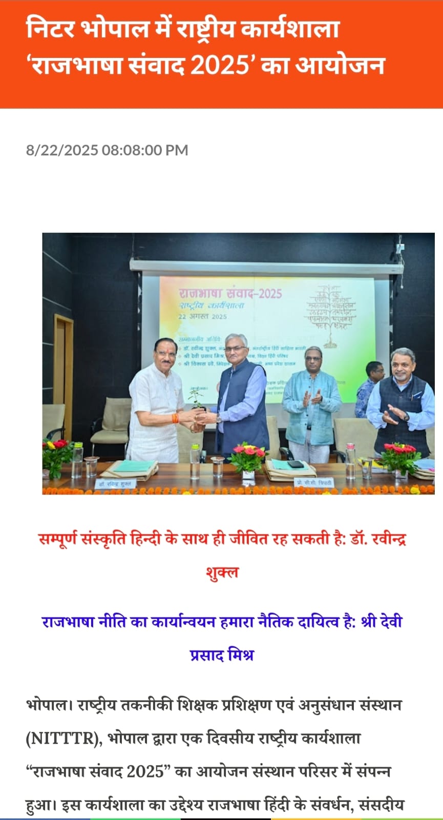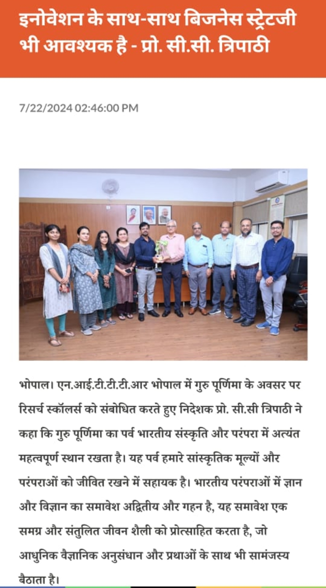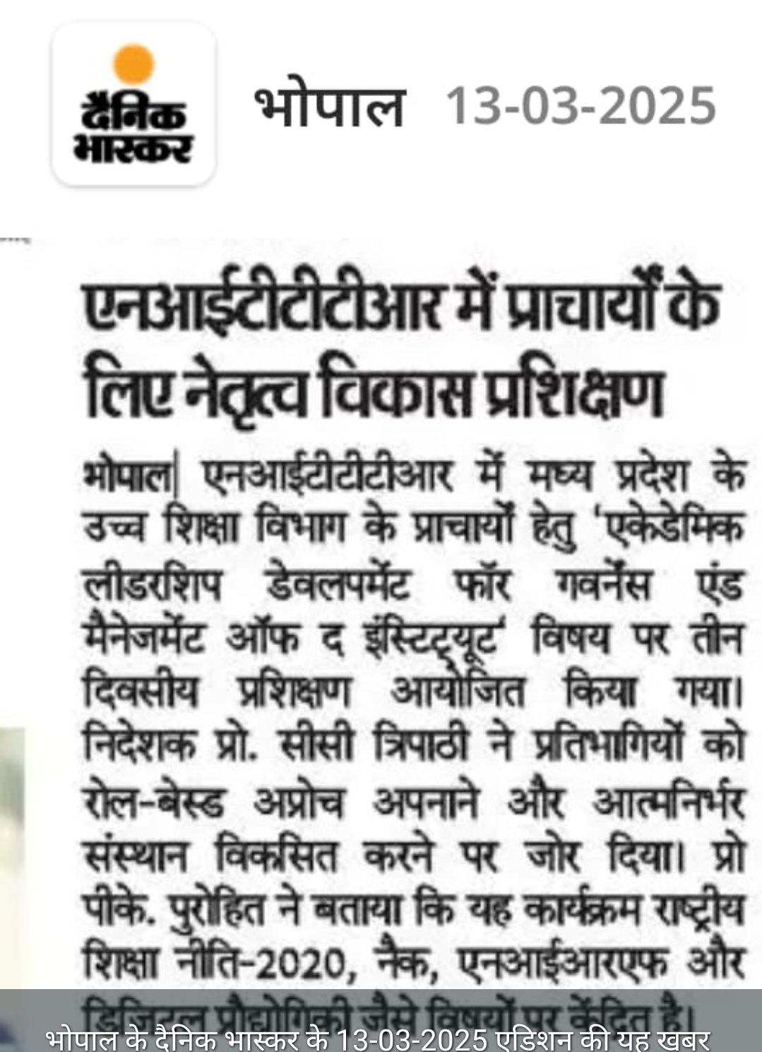 NITTTR Director Prof.C.C.Tripathi lays stress on promoting the use of Hindi in official work