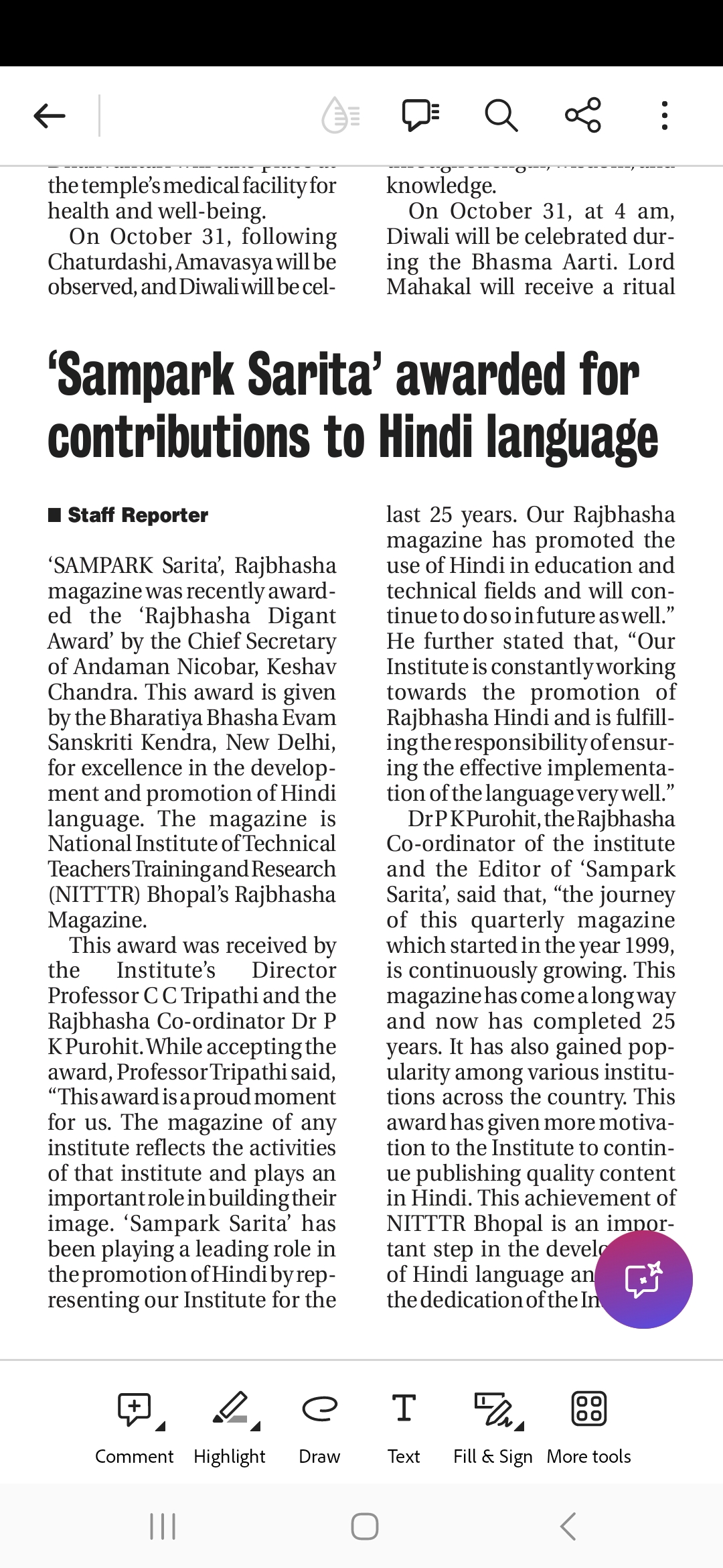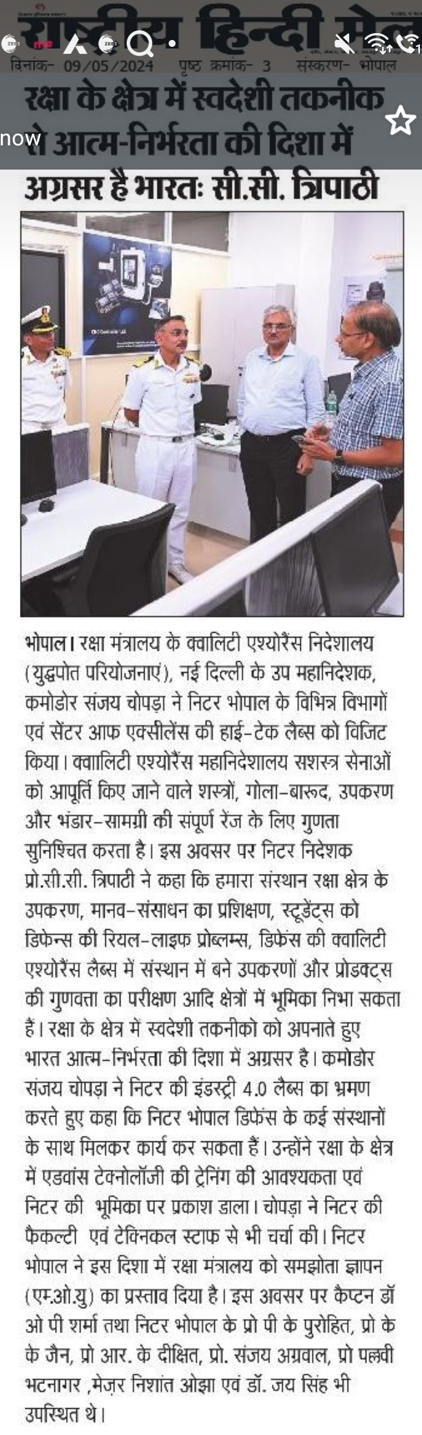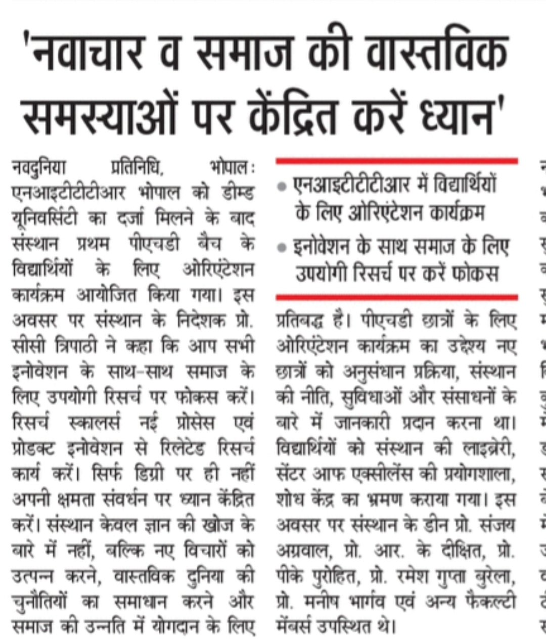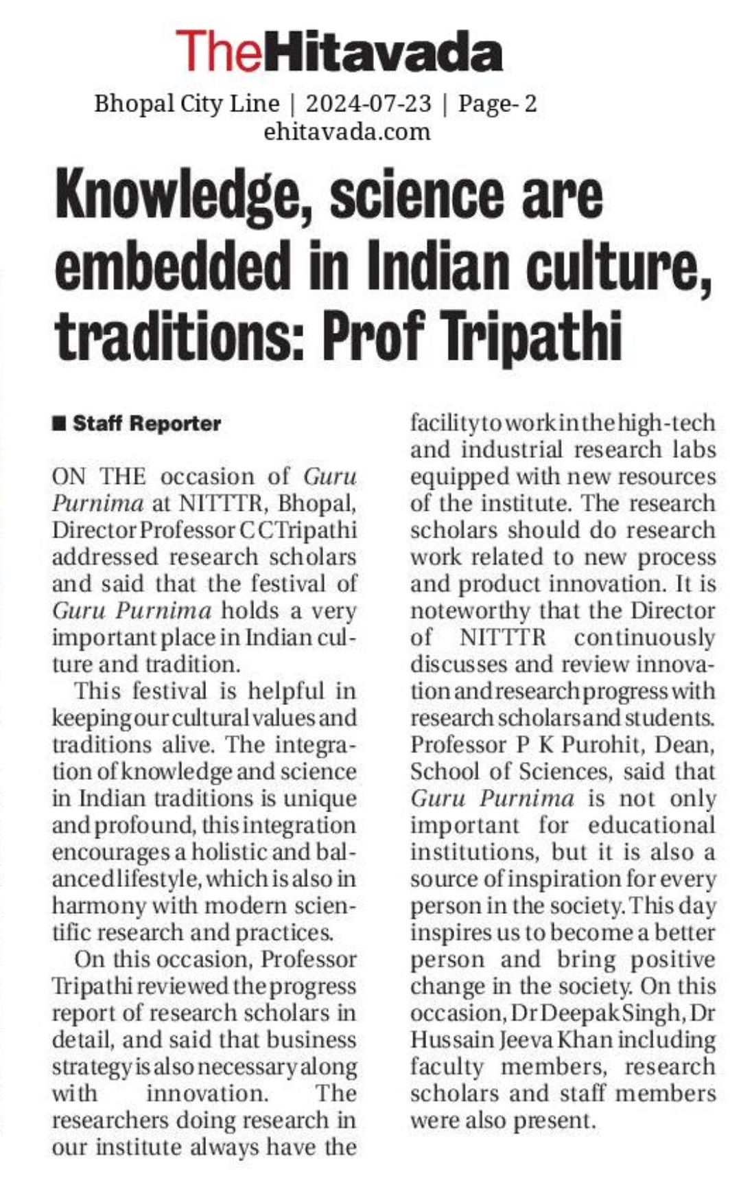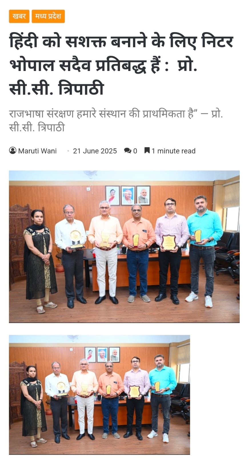 NITTTR Director Prof.C.C.Tripathi lays stress on promoting the use of Hindi in official work