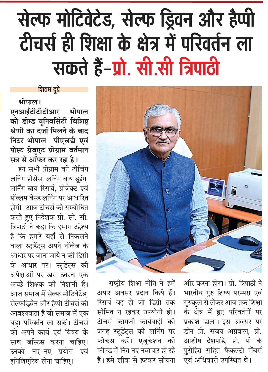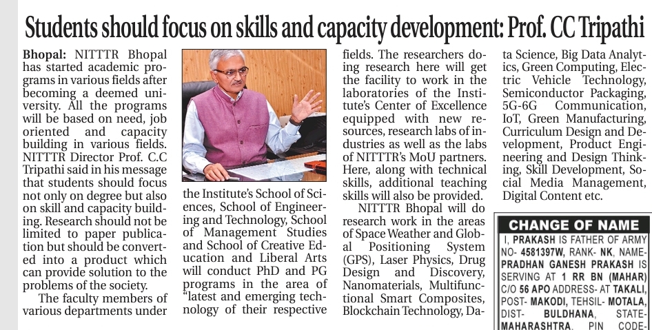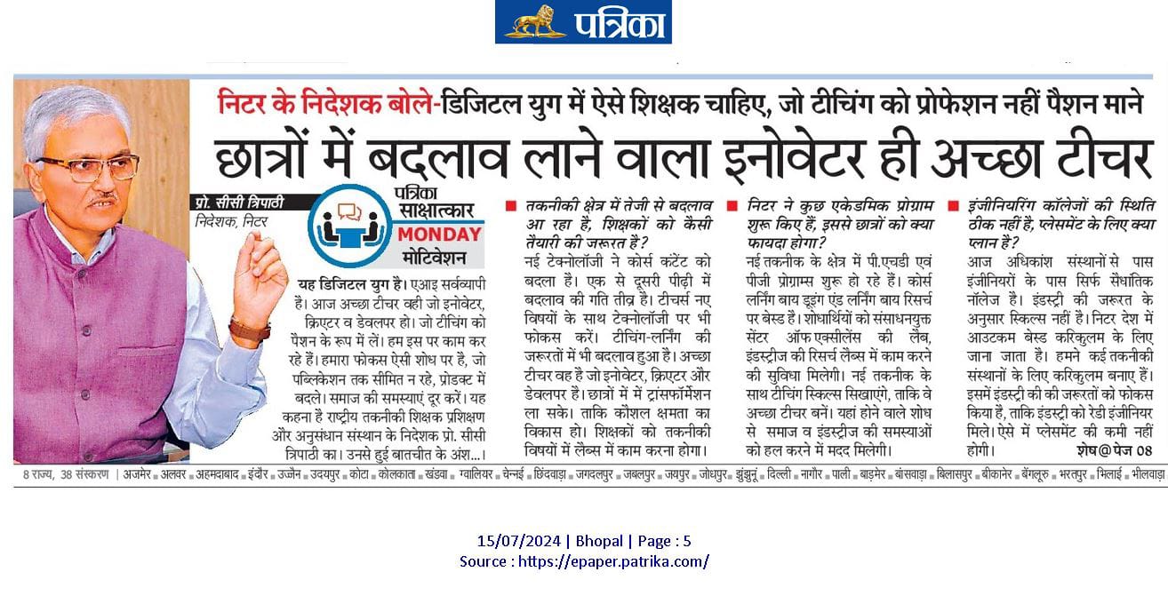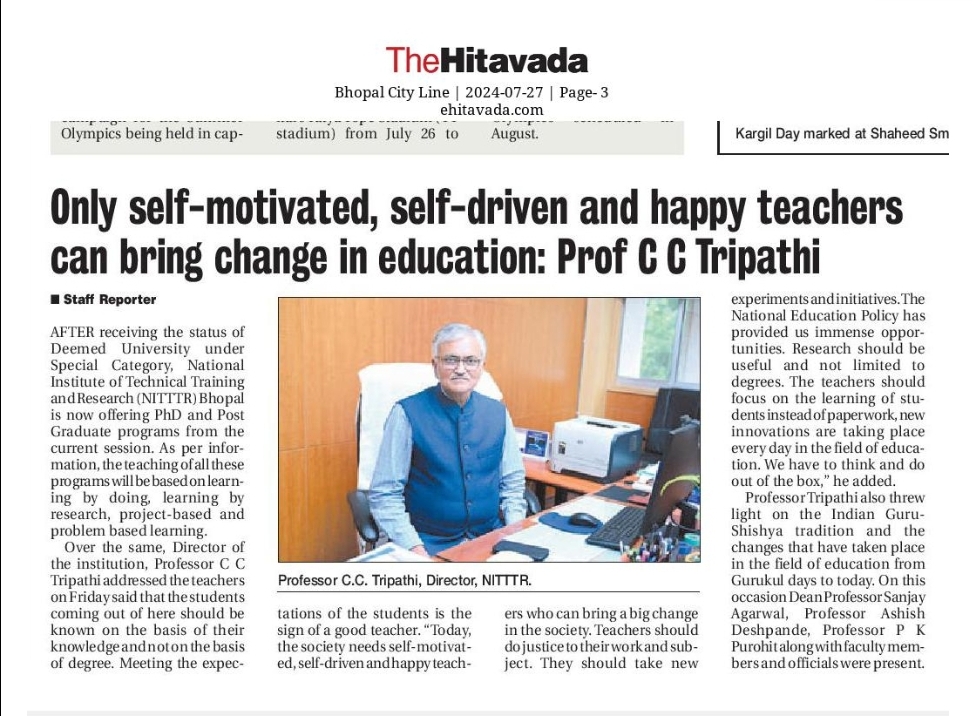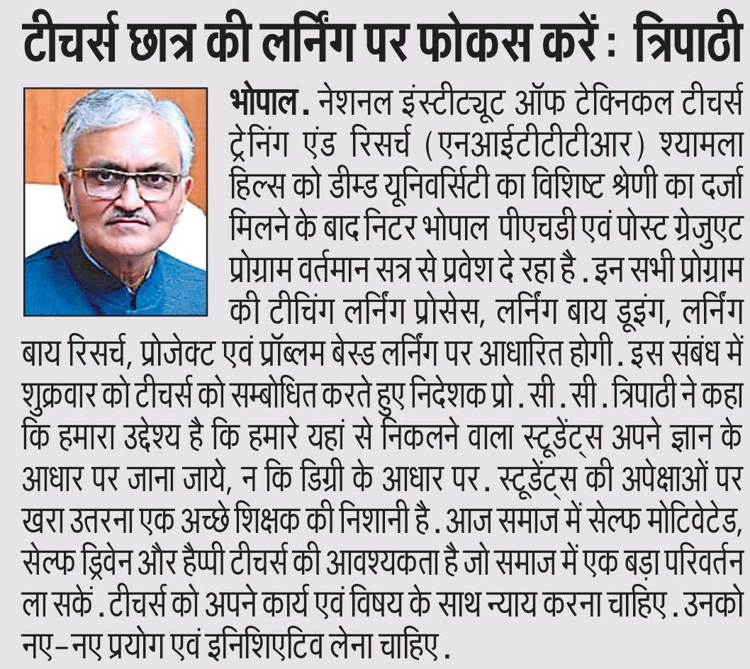Train teachers to meet the needs of the world: NITTTR, Director Prof. C.C. Tripathi
