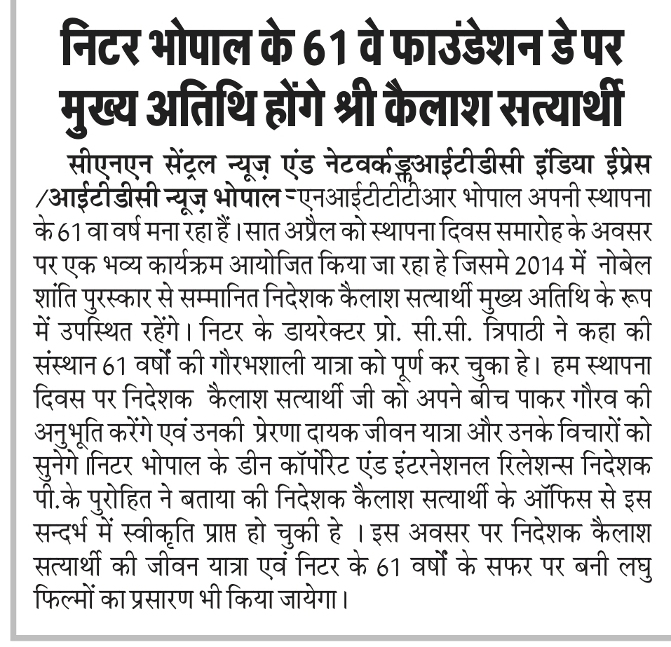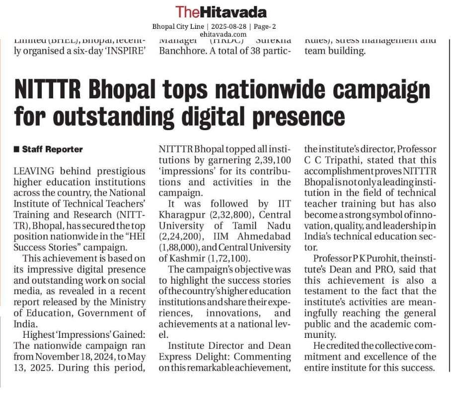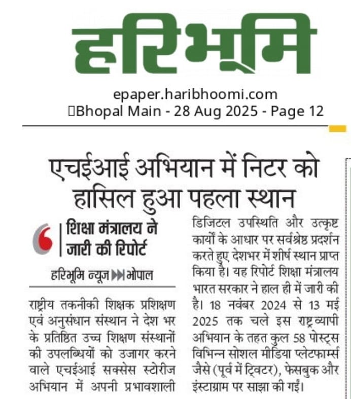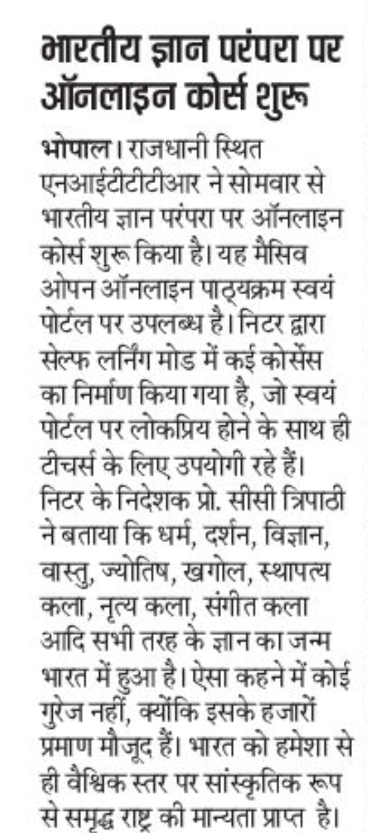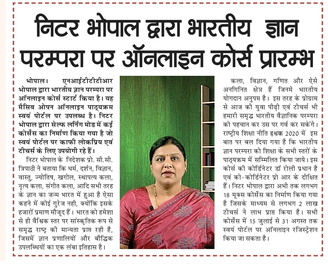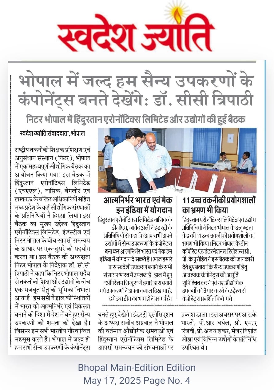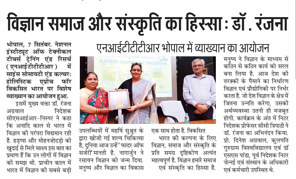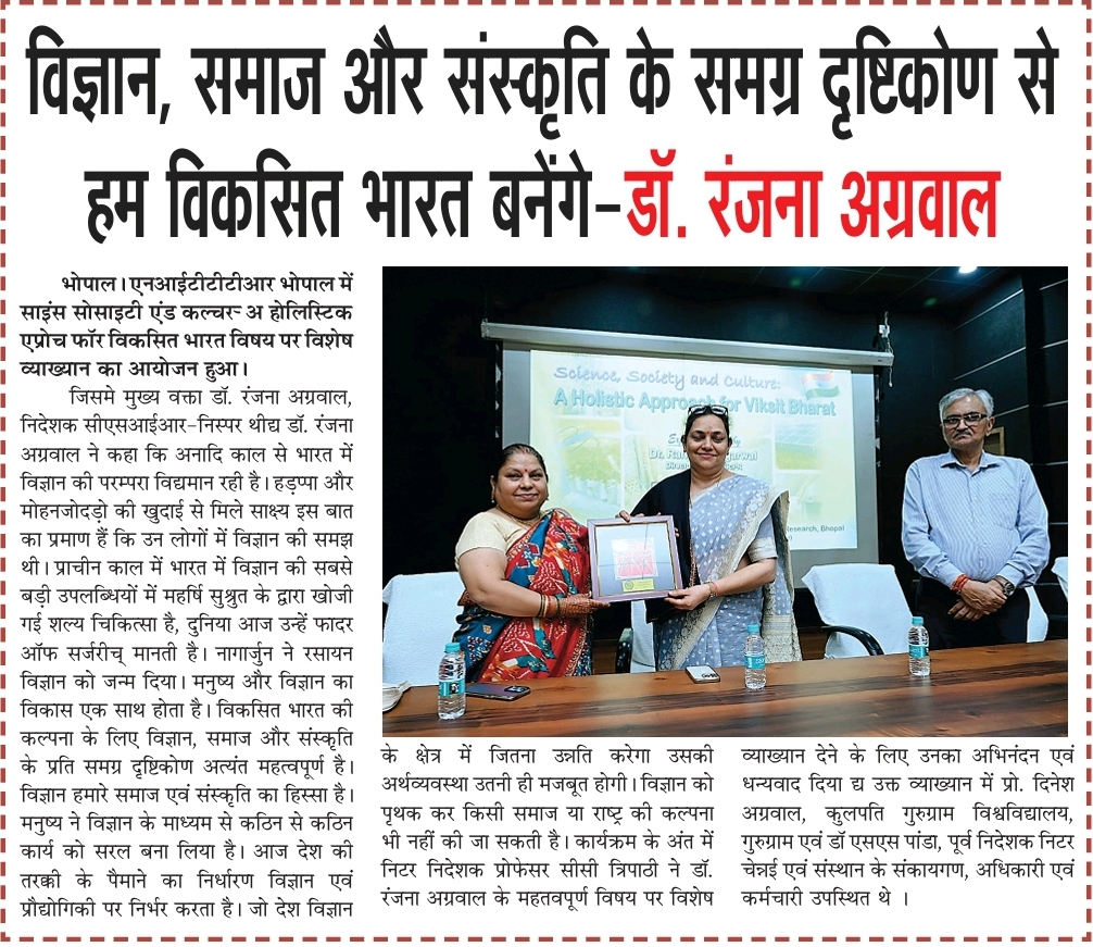 मिलेट्स के प्रचार प्रसार एवं जागरूकता में निटर भोपाल निभा रहा महत्वपूर्ण भूमिका