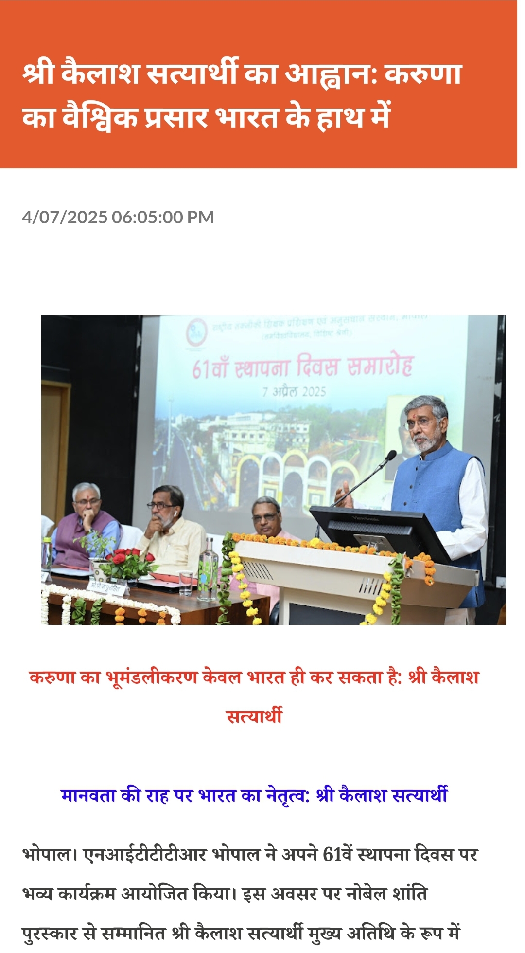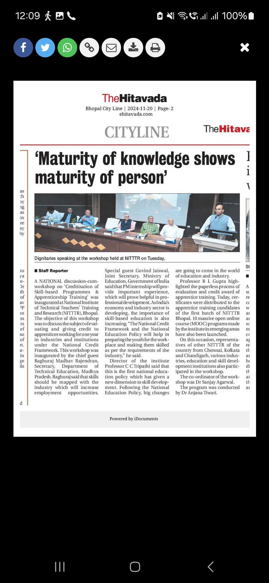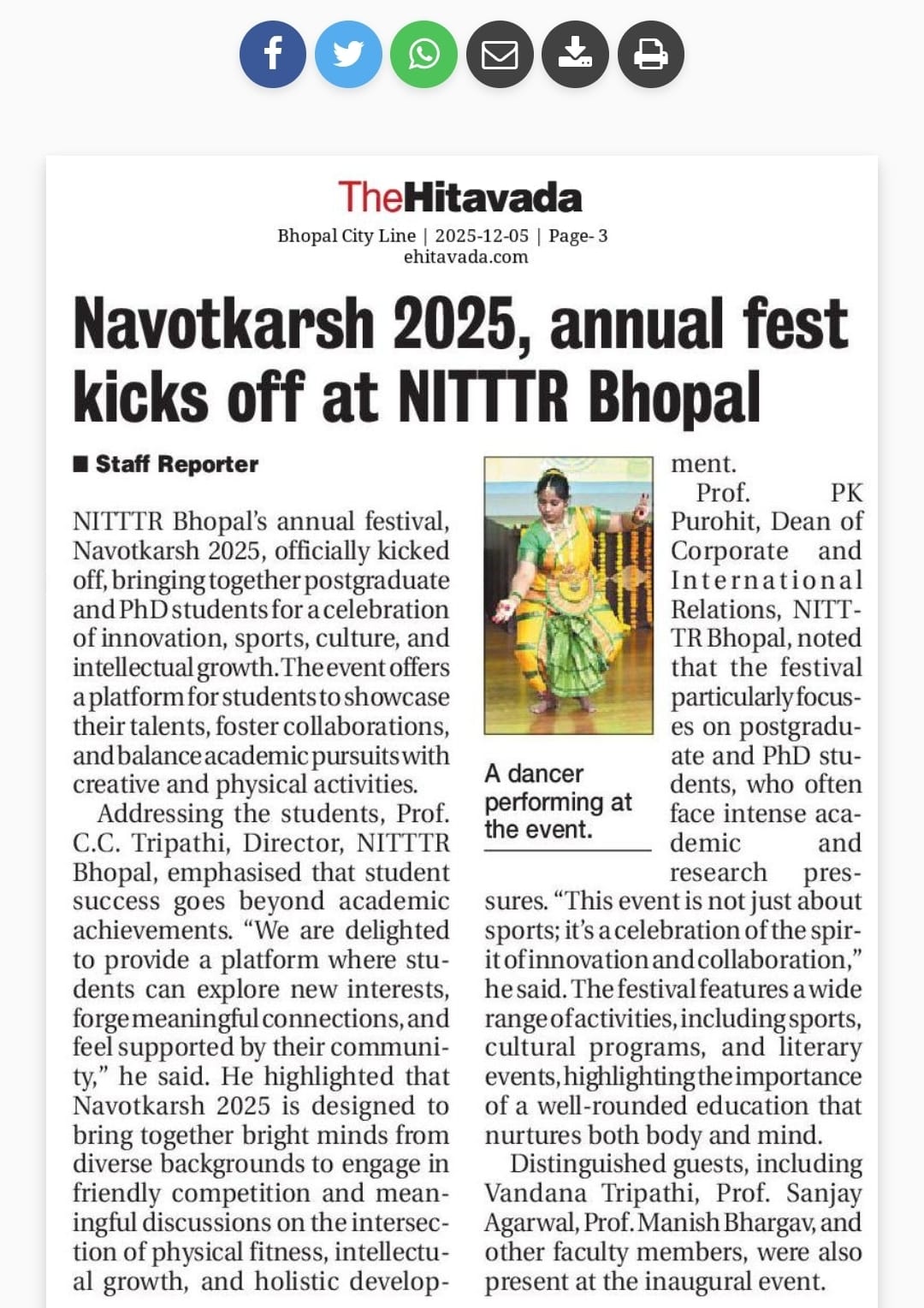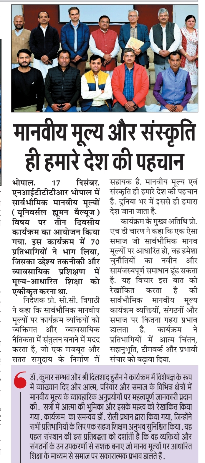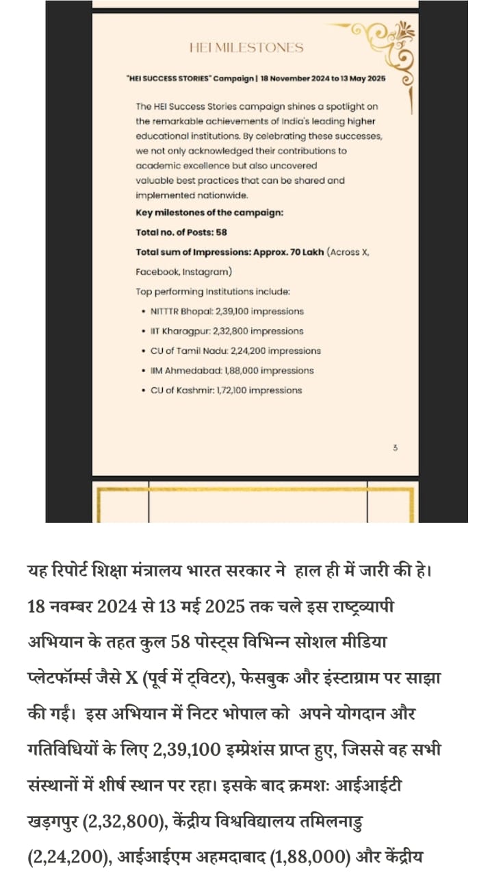 मिलेट्स के प्रचार प्रसार एवं जागरूकता में निटर भोपाल निभा रहा महत्वपूर्ण भूमिका