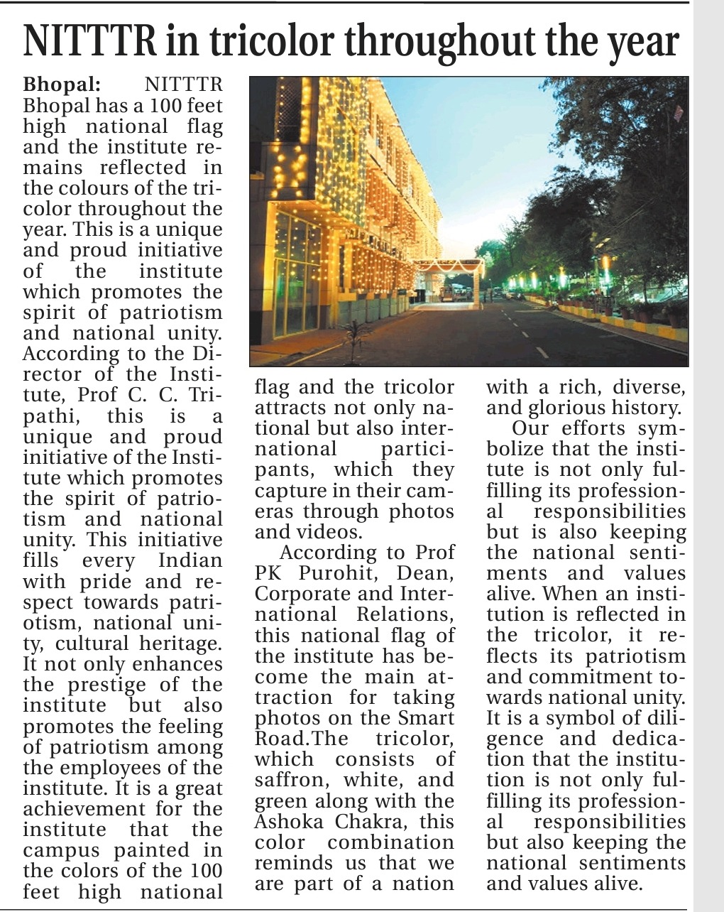 *नई पीढ़ी में देशभक्ति की भावना जागृत करने के लिए ऐसे आयोजन ज़रूरी - प्रो. सी. सी. त्रिपाठी*