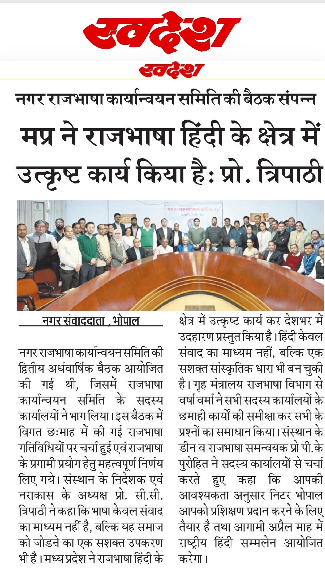 राजभाषा से जुड़े कार्य एवम गतिविधियों को कागजी लक्ष्यों तक सीमित न रखे- प्रो. सी.सी. त्रिपाठी