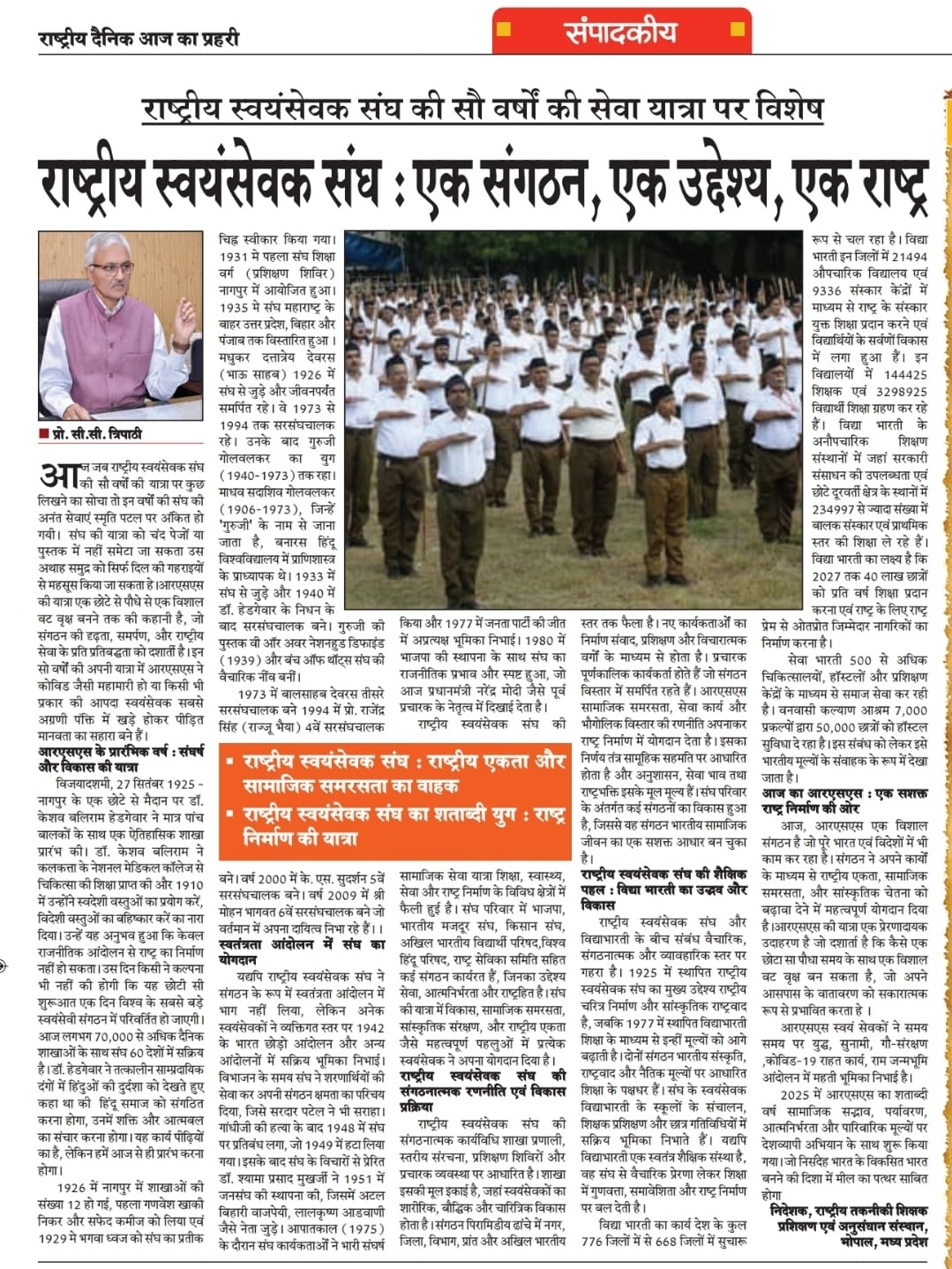 *हम सभी को अपनी मातृभाषा का कर्ज उतारने के लिए तत्पर रहना चाहिए - प्रो सी.सी. त्रिपाठी