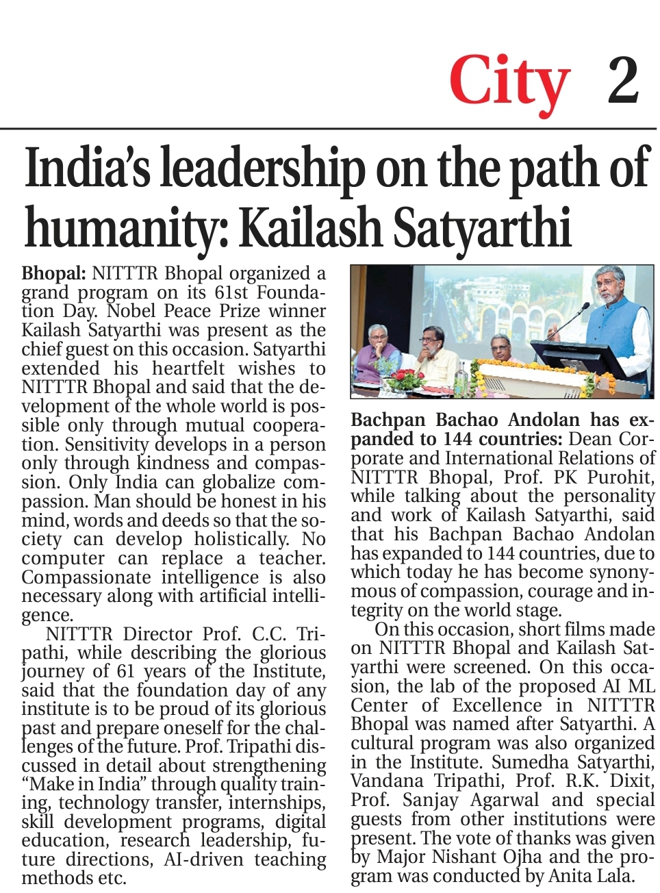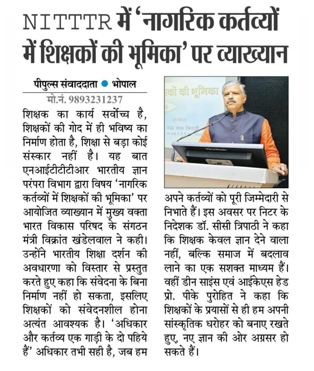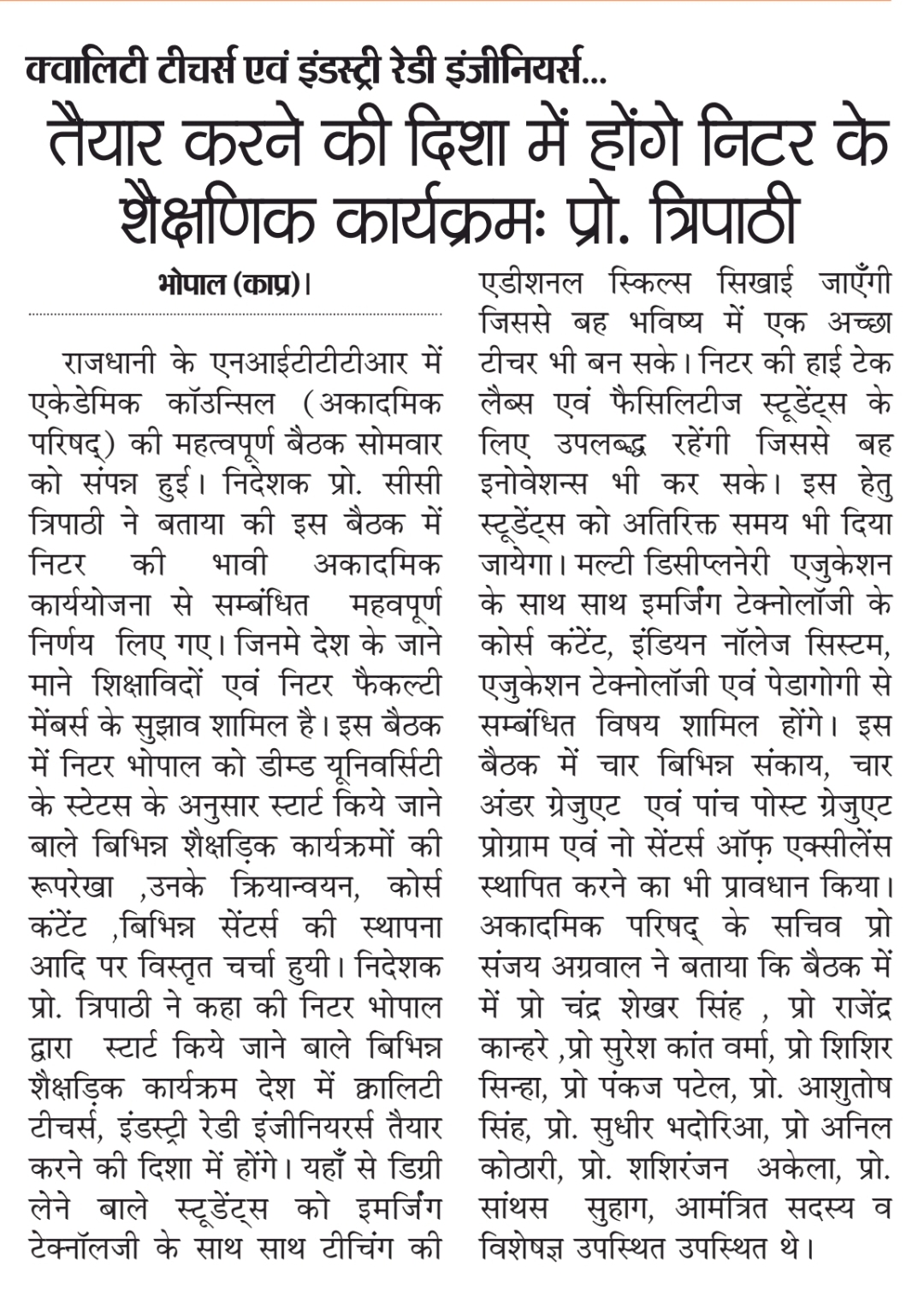 Train teachers to meet the needs of the world: NITTTR, Director Prof. C.C. Tripathi