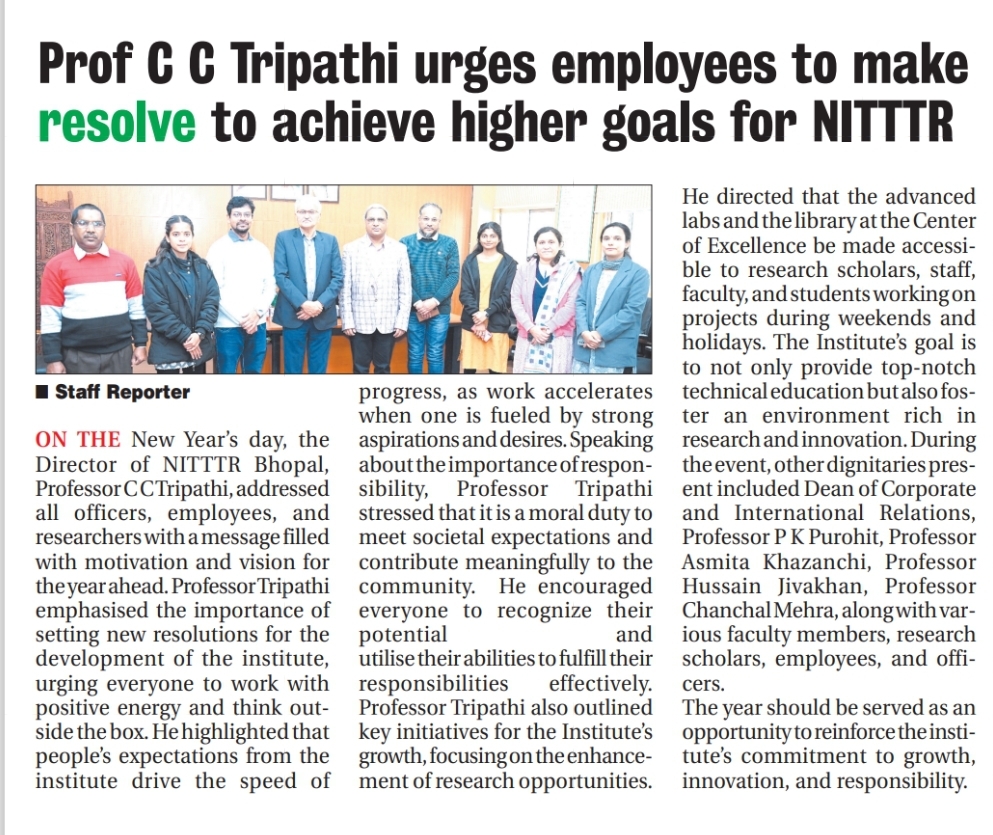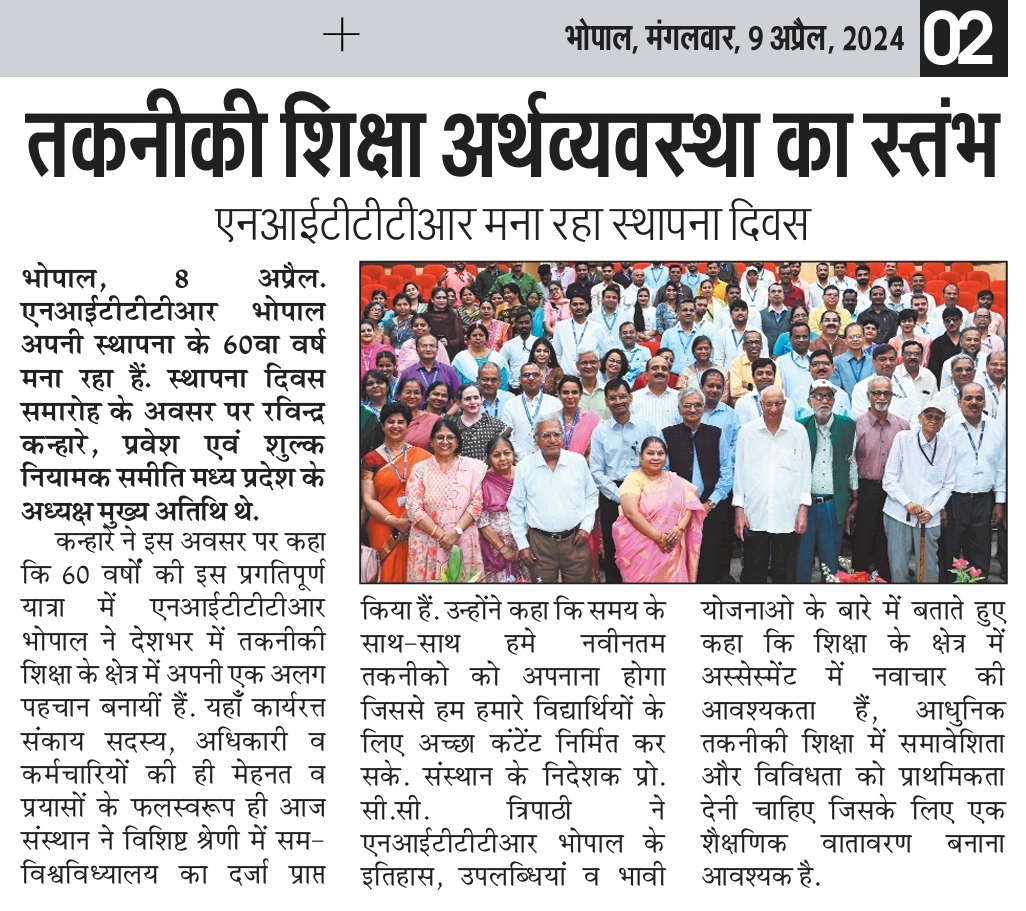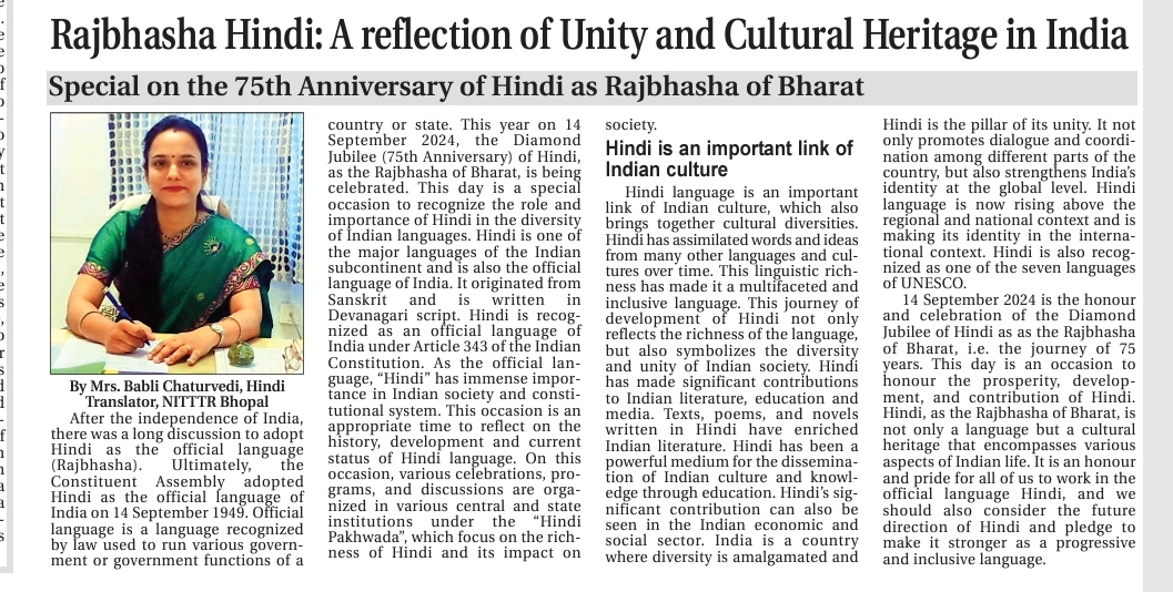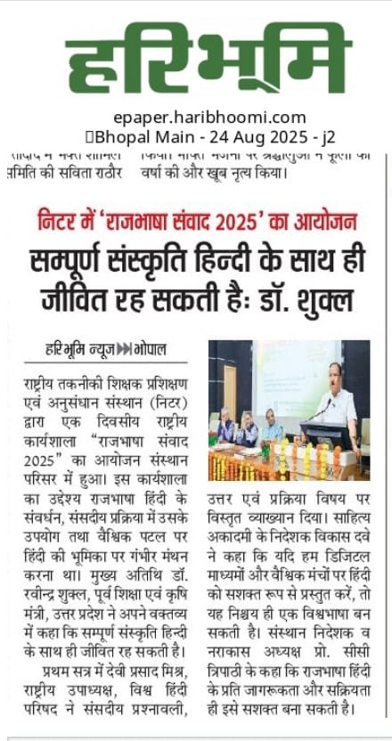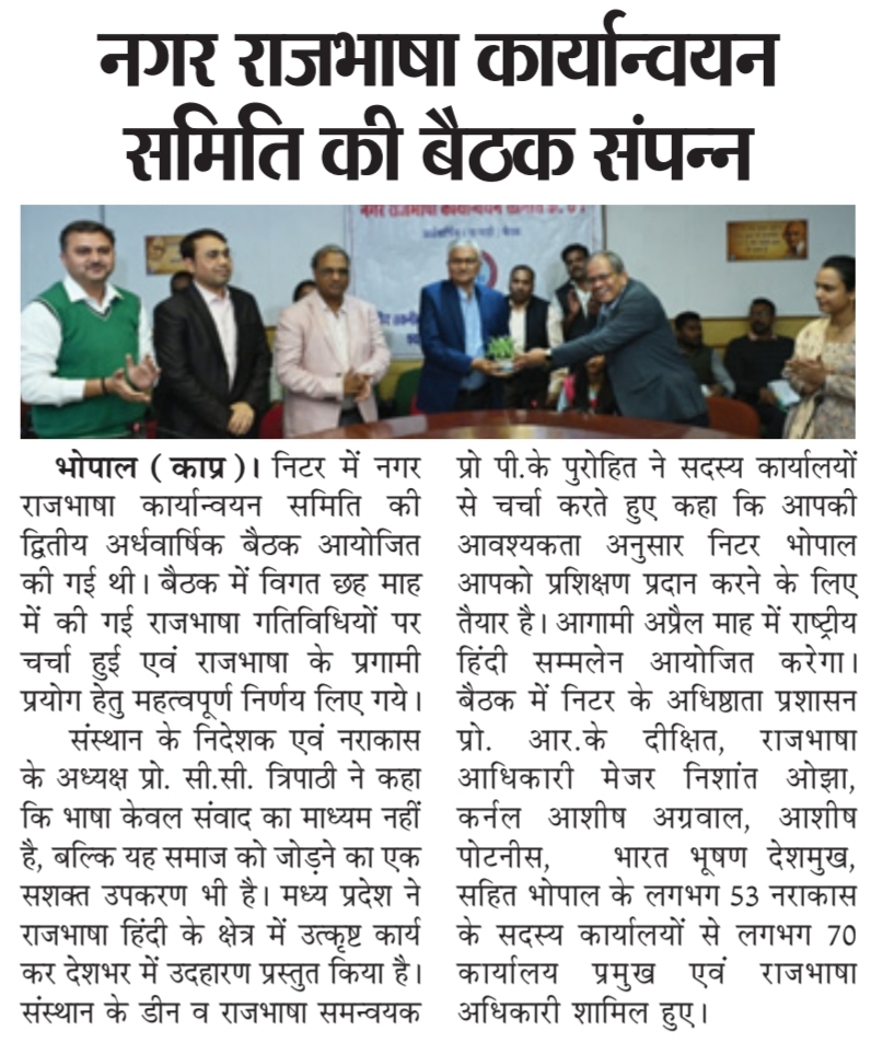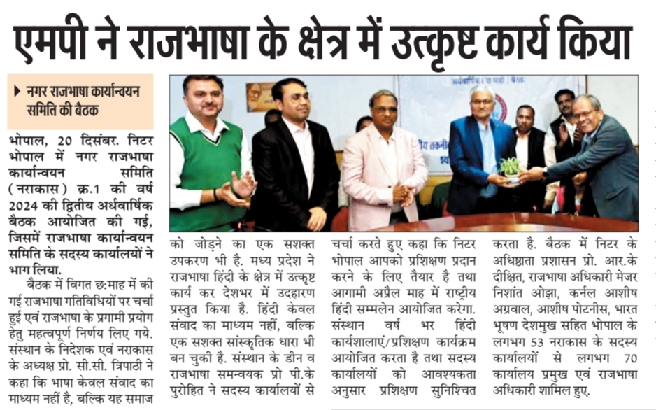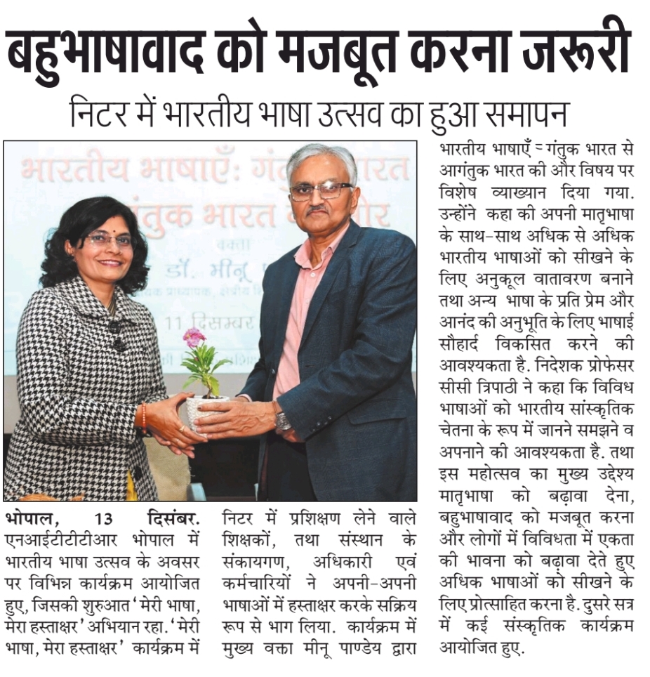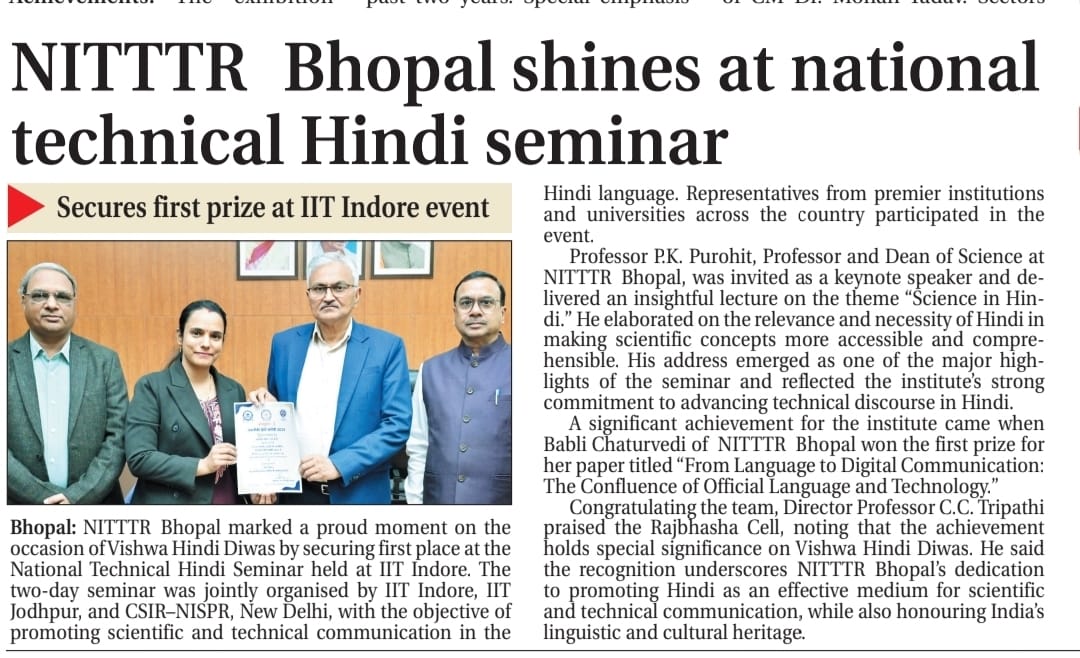 NITTTR Director Prof.C.C.Tripathi lays stress on promoting the use of Hindi in official work