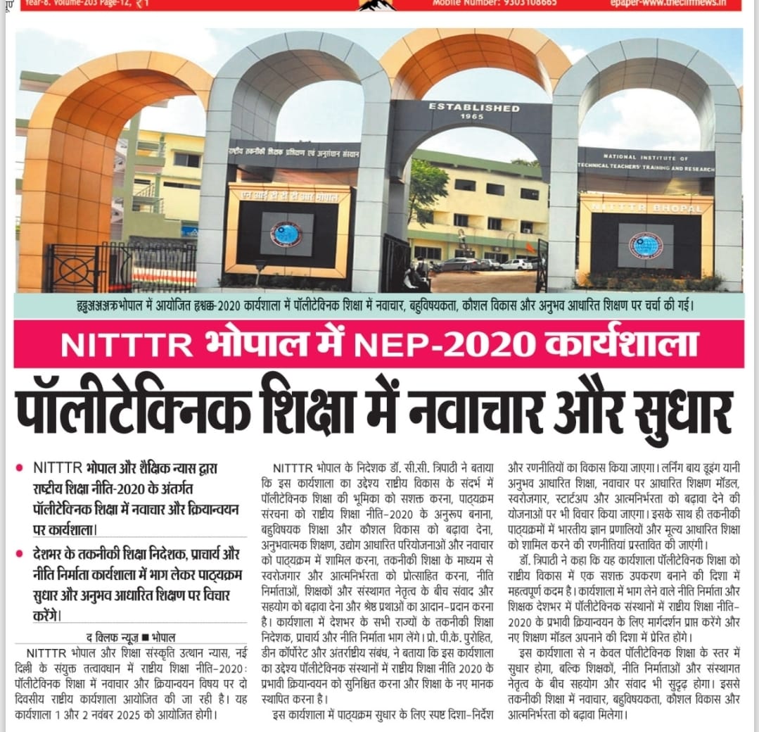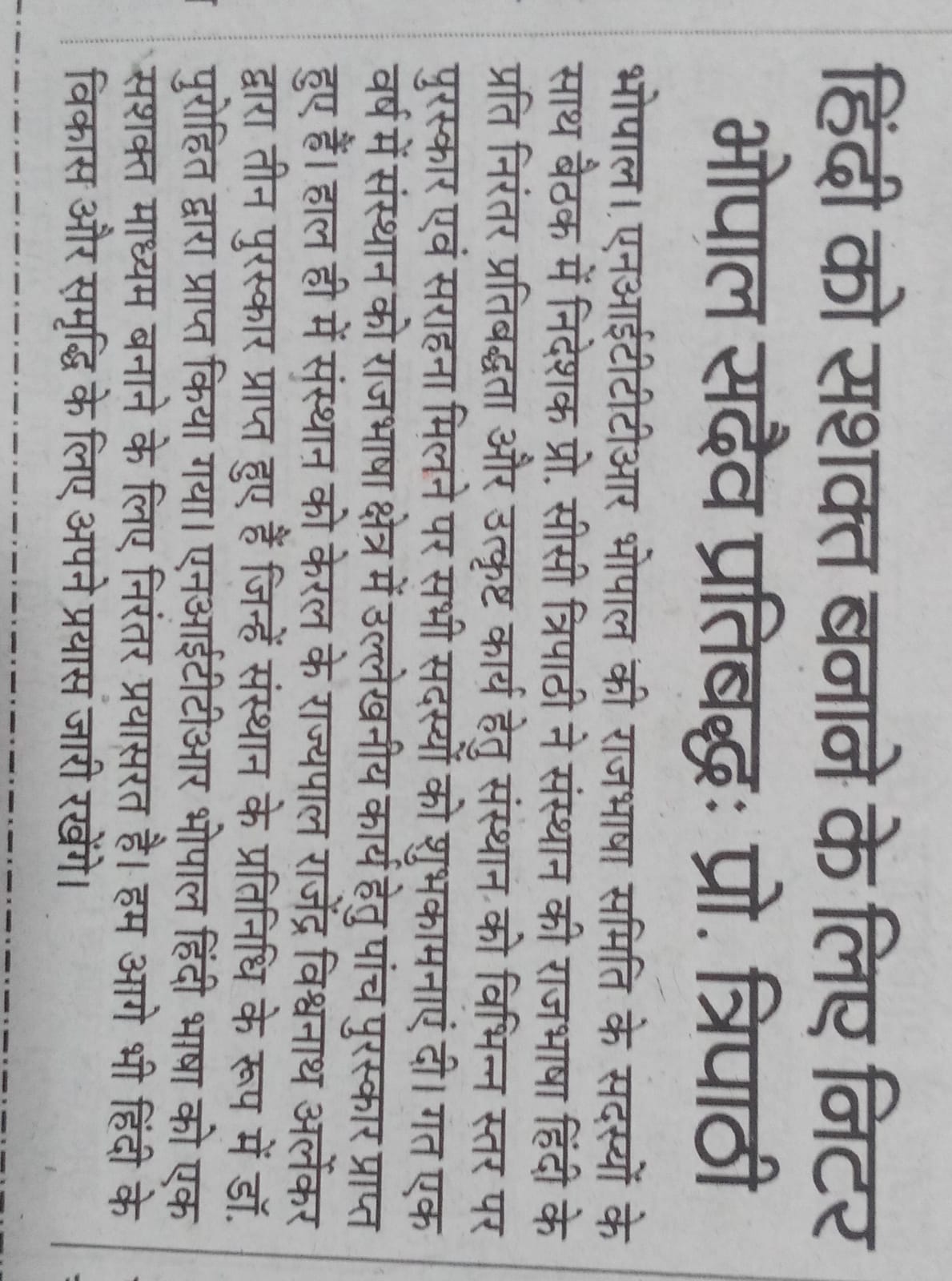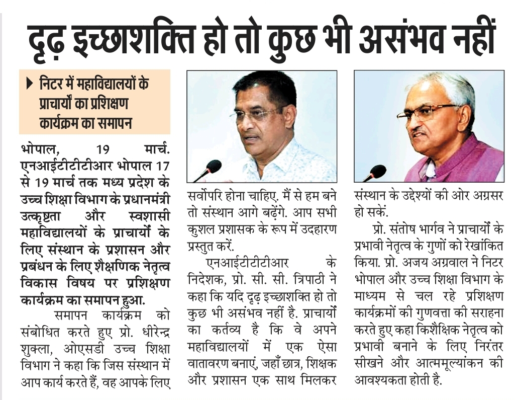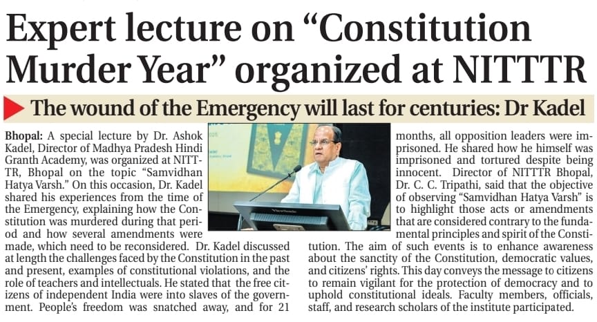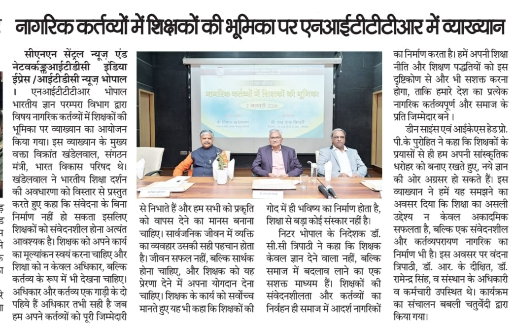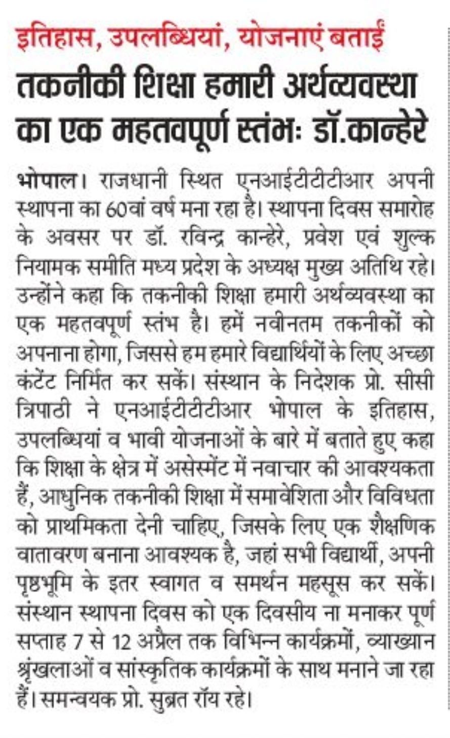 NITTTR Director Prof.C.C.Tripathi lays stress on promoting the use of Hindi in official work