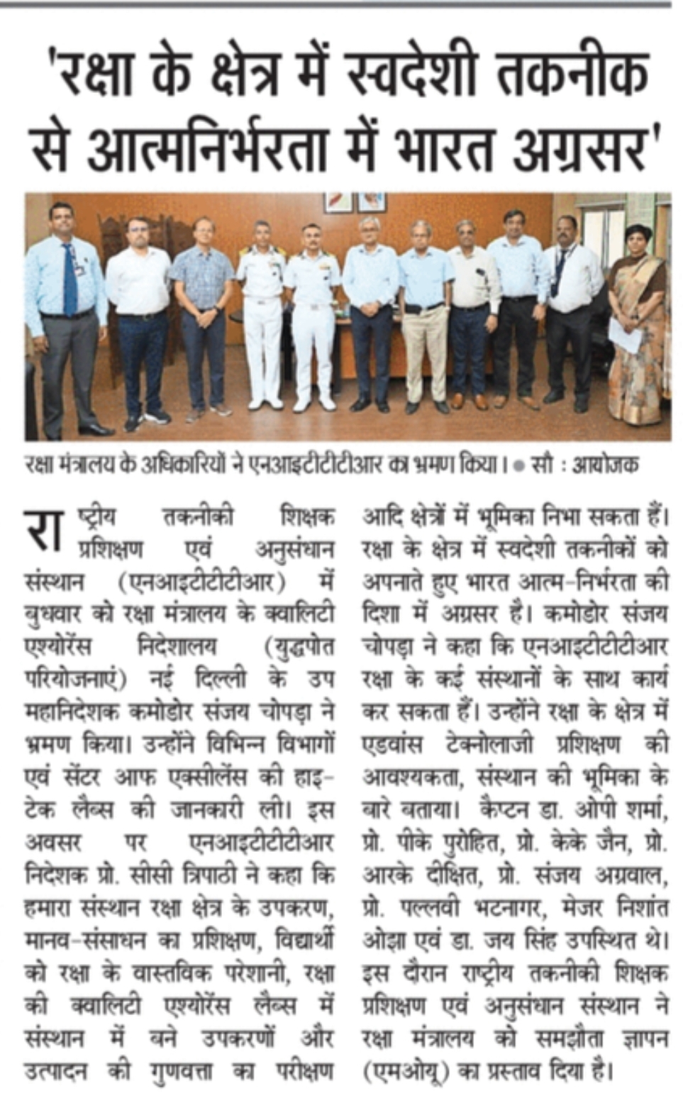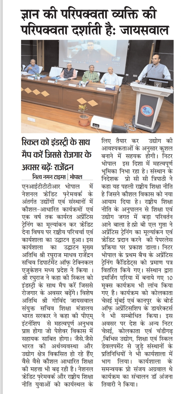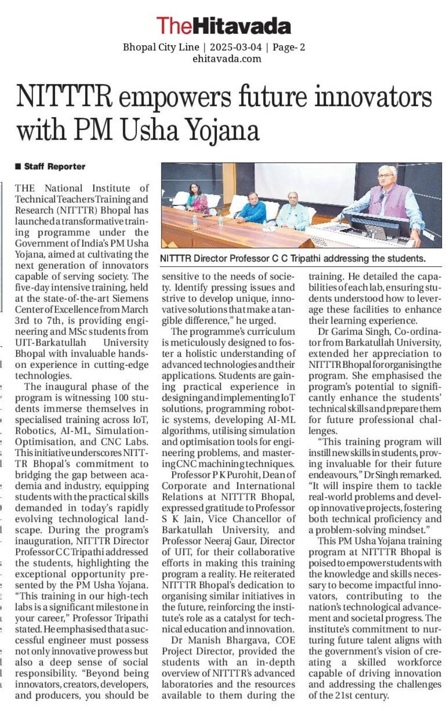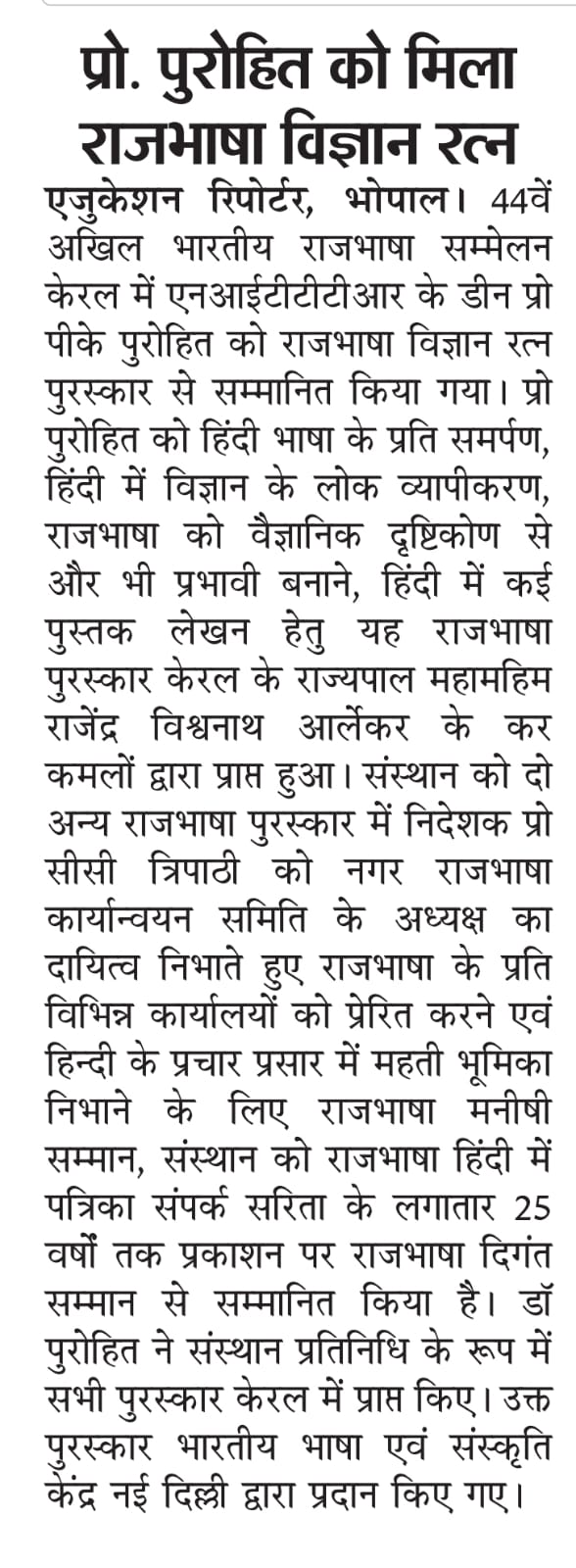 NITTTR Director Prof.C.C.Tripathi lays stress on promoting the use of Hindi in official work