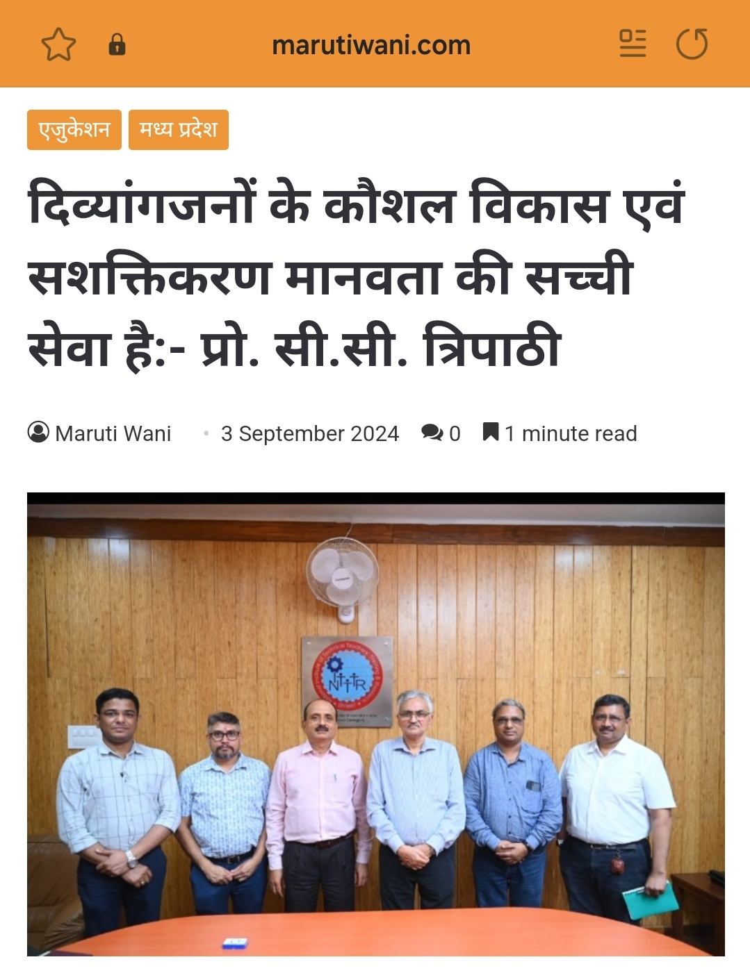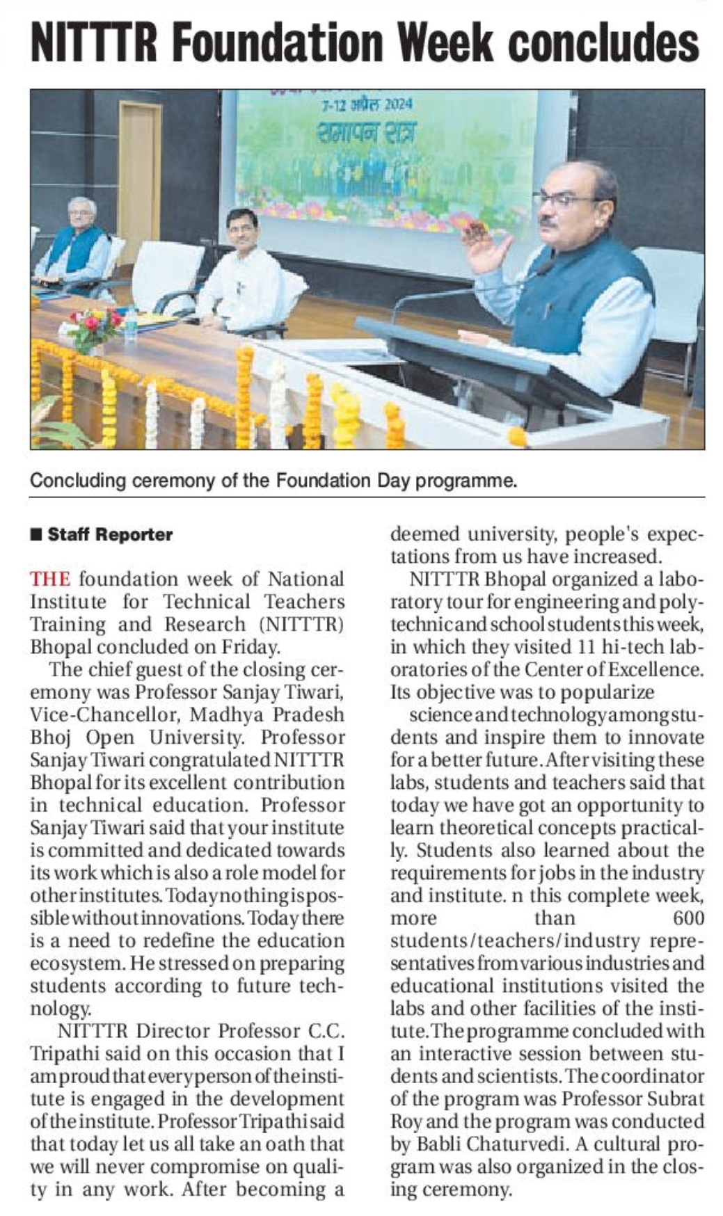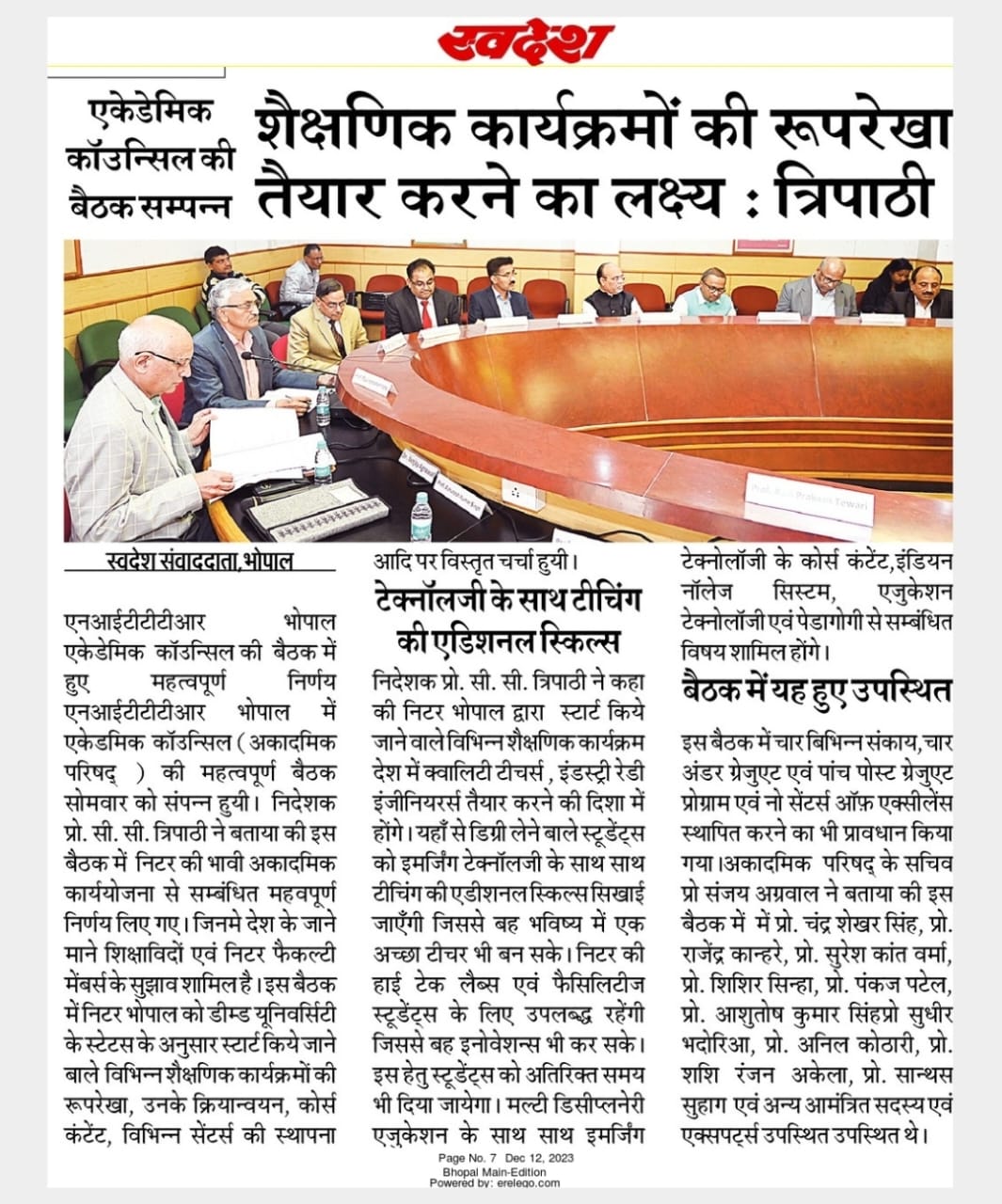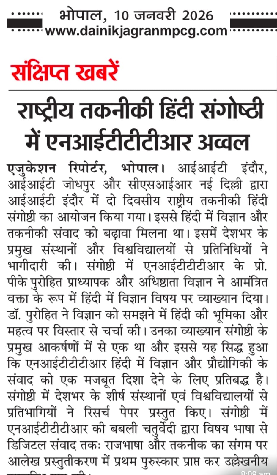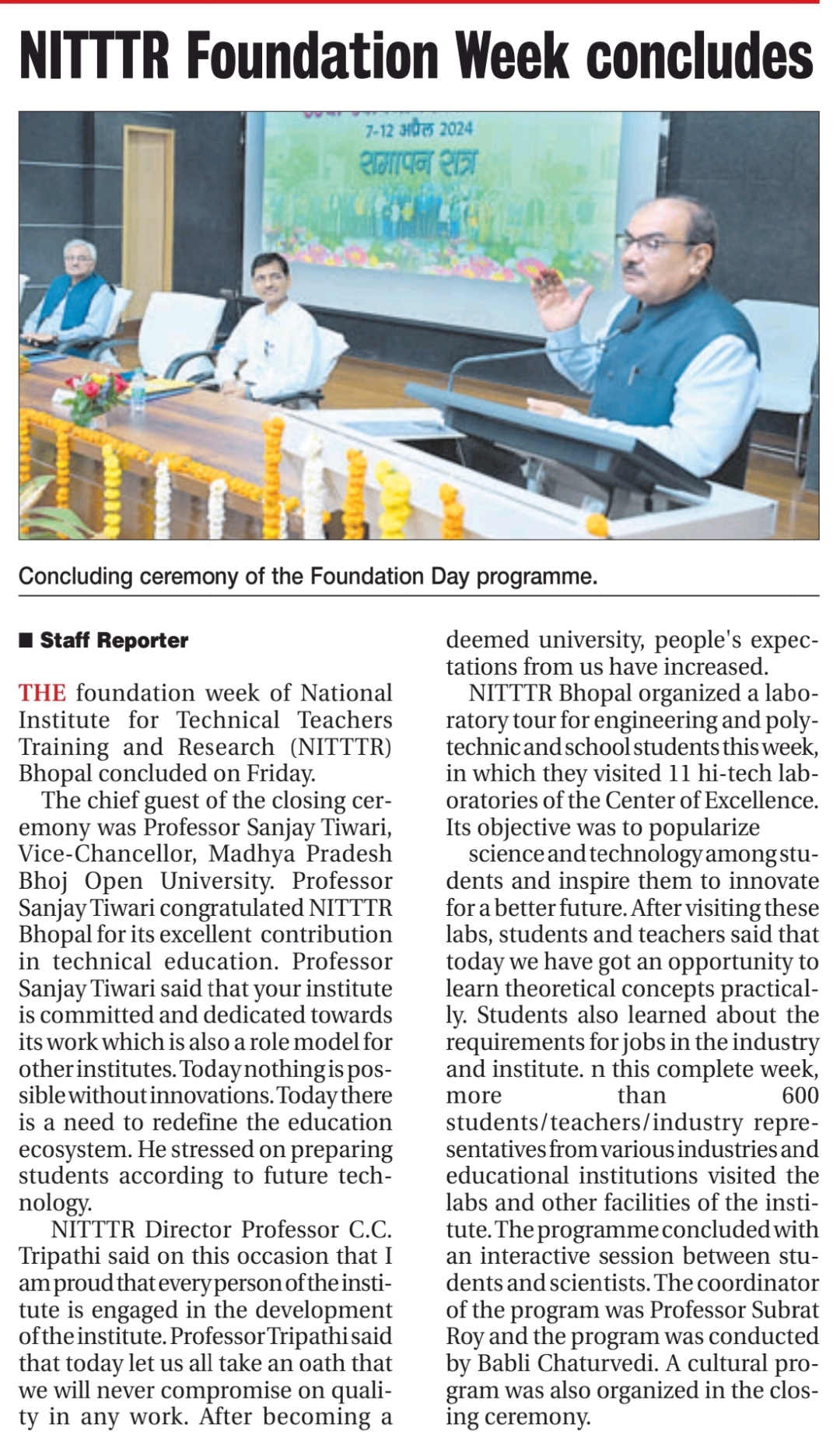 NITTTR Director Prof.C.C.Tripathi lays stress on promoting the use of Hindi in official work