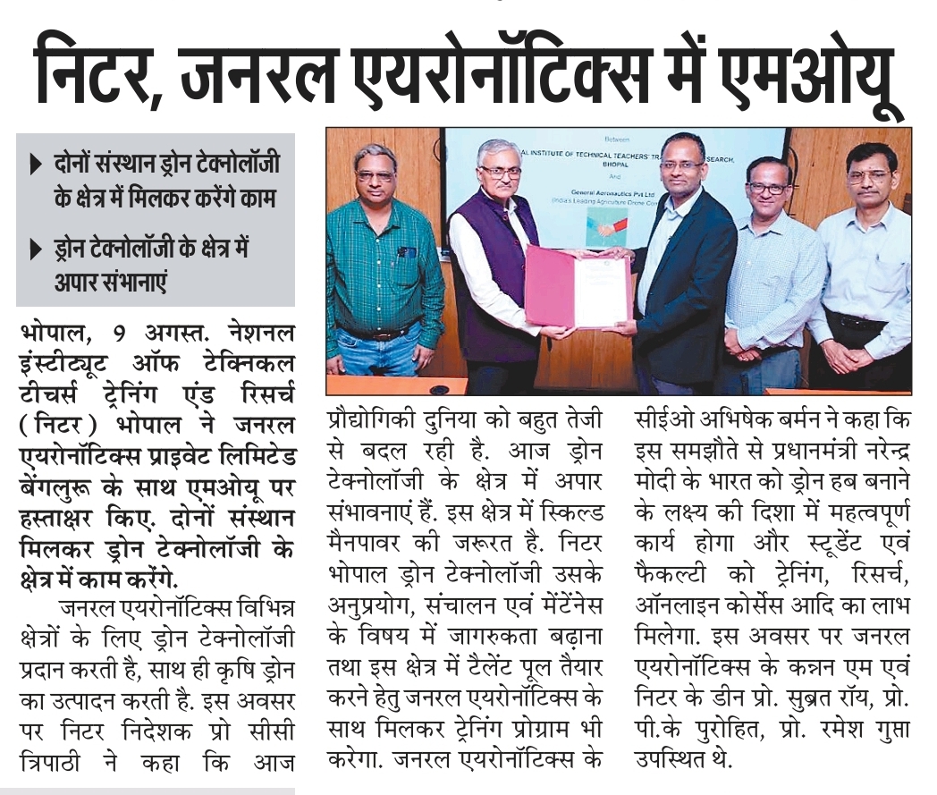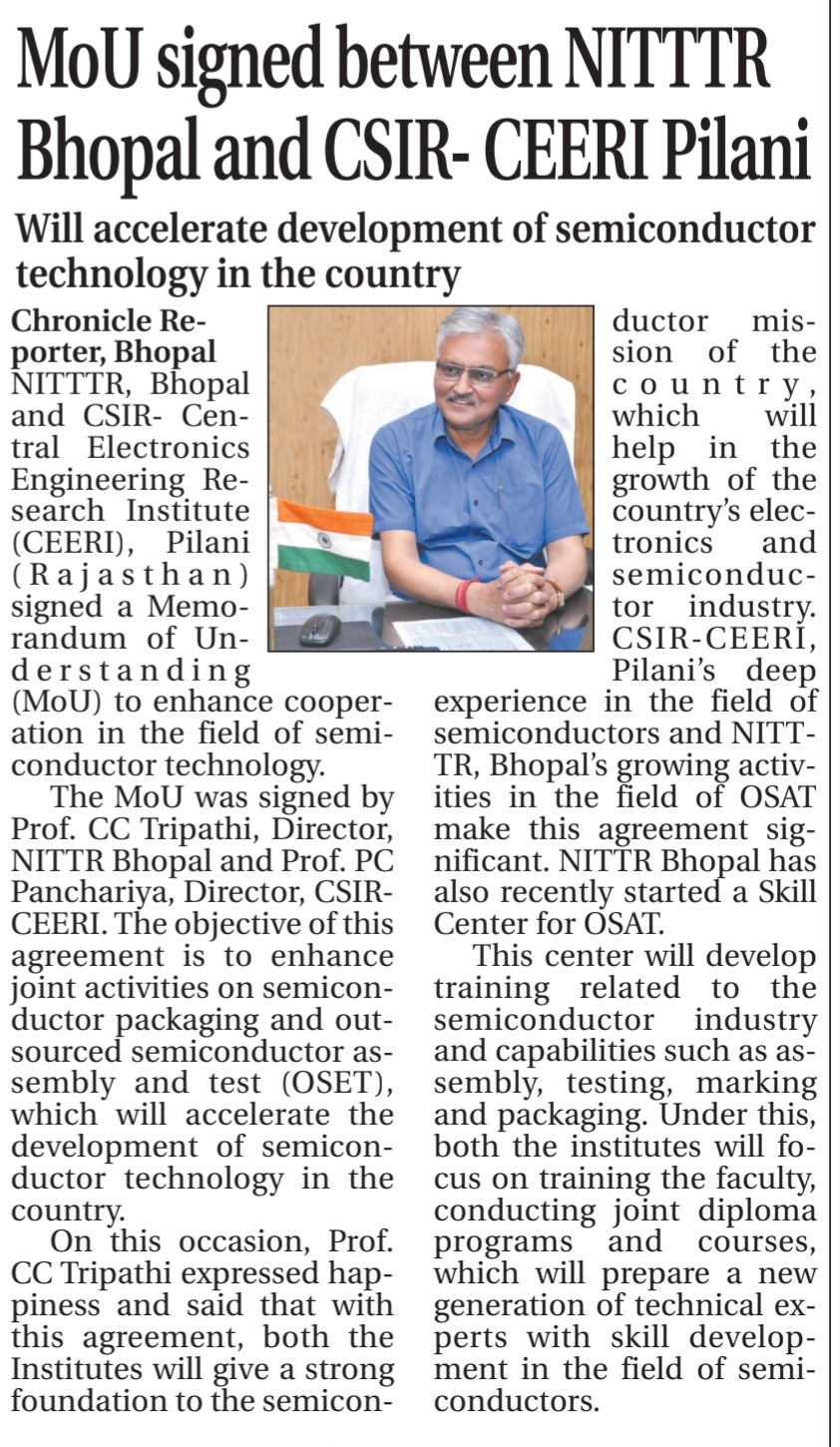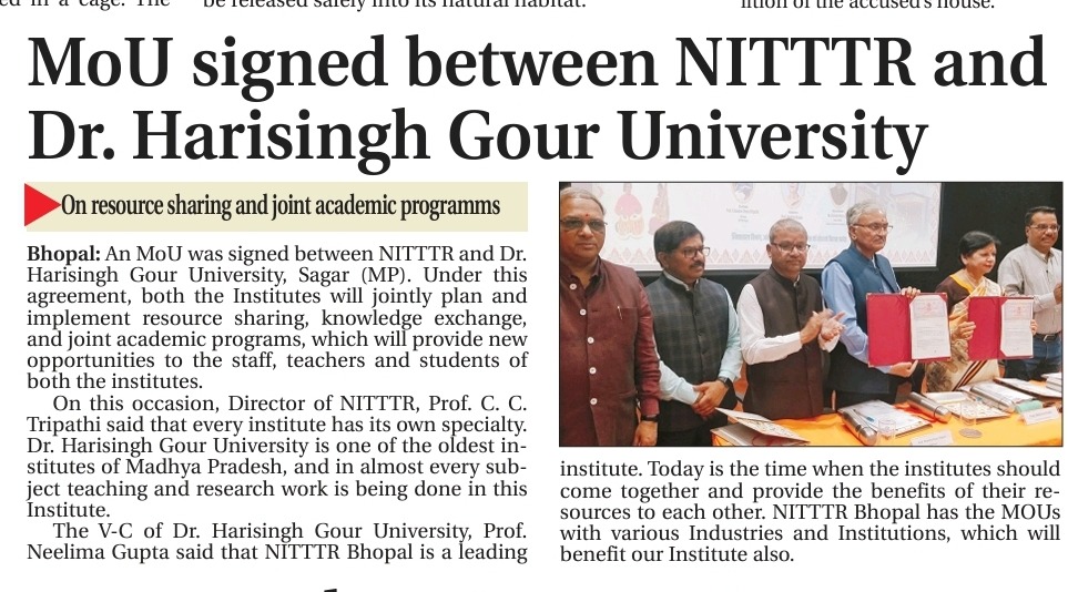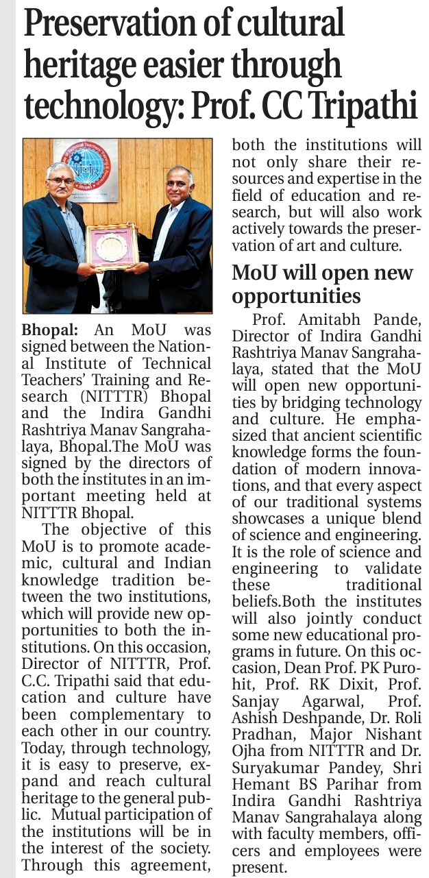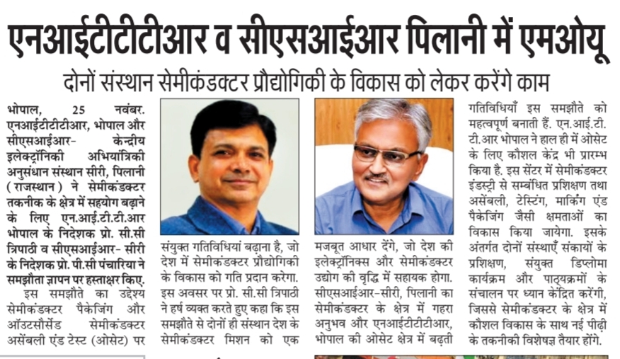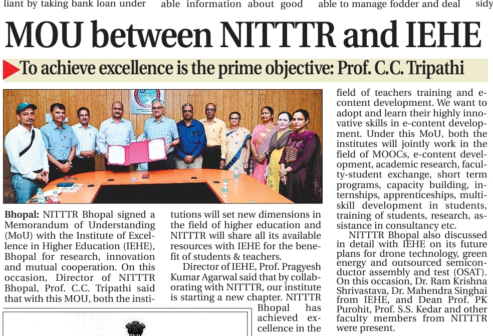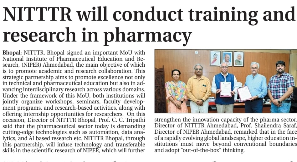 एनआईटीटीटीआर, भोपाल और केंद्रीय कृषि अभियांत्रिकी(सीआईएई) संस्थान के मध्य एमओयू संपन्न