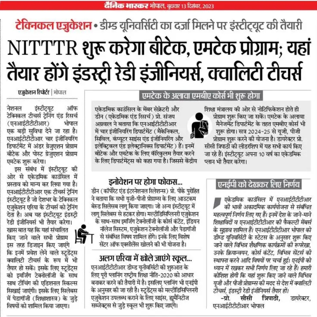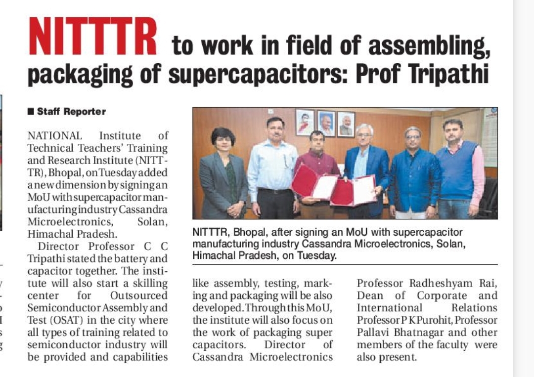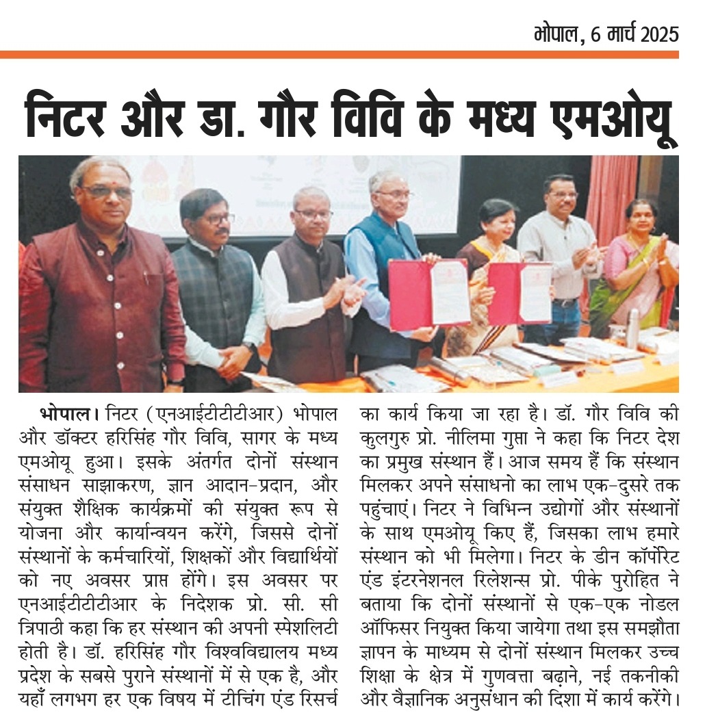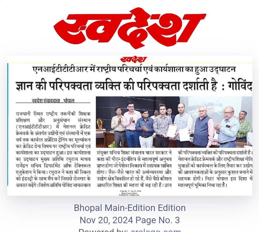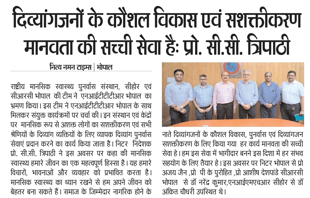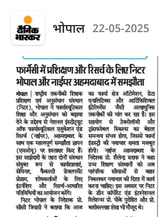 एनआईटीटीटीआर, भोपाल और केंद्रीय कृषि अभियांत्रिकी(सीआईएई) संस्थान के मध्य एमओयू संपन्न