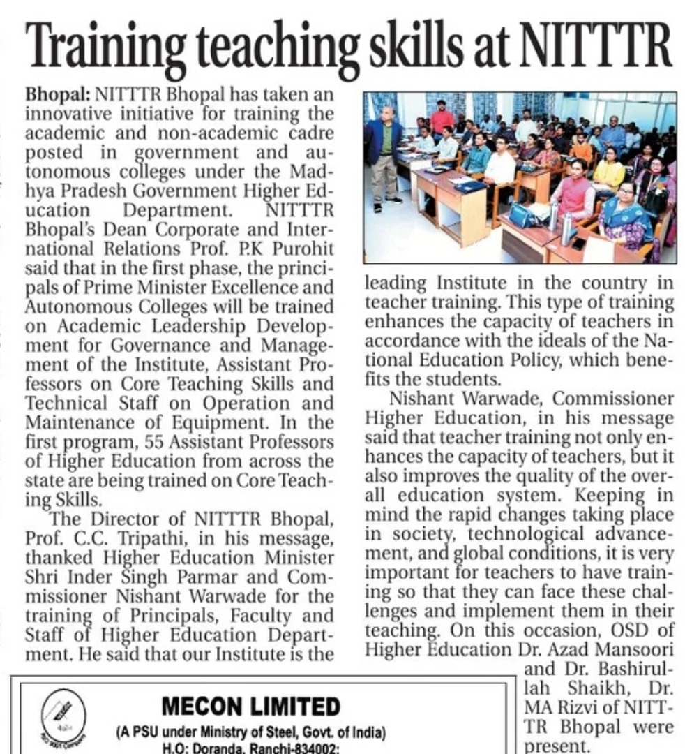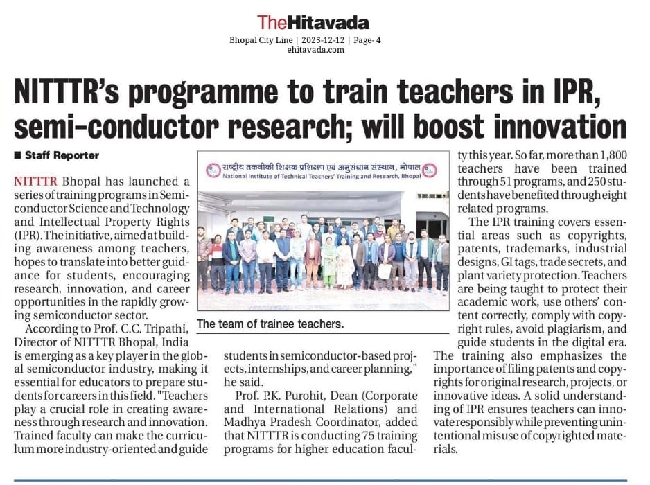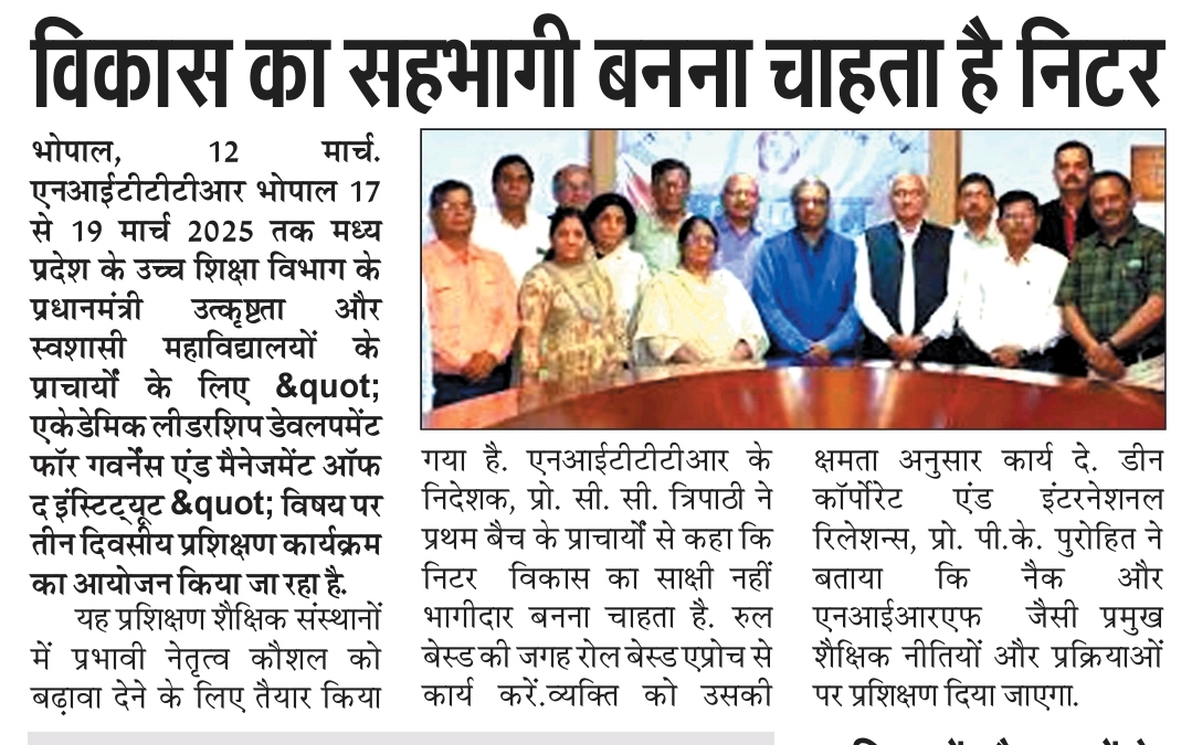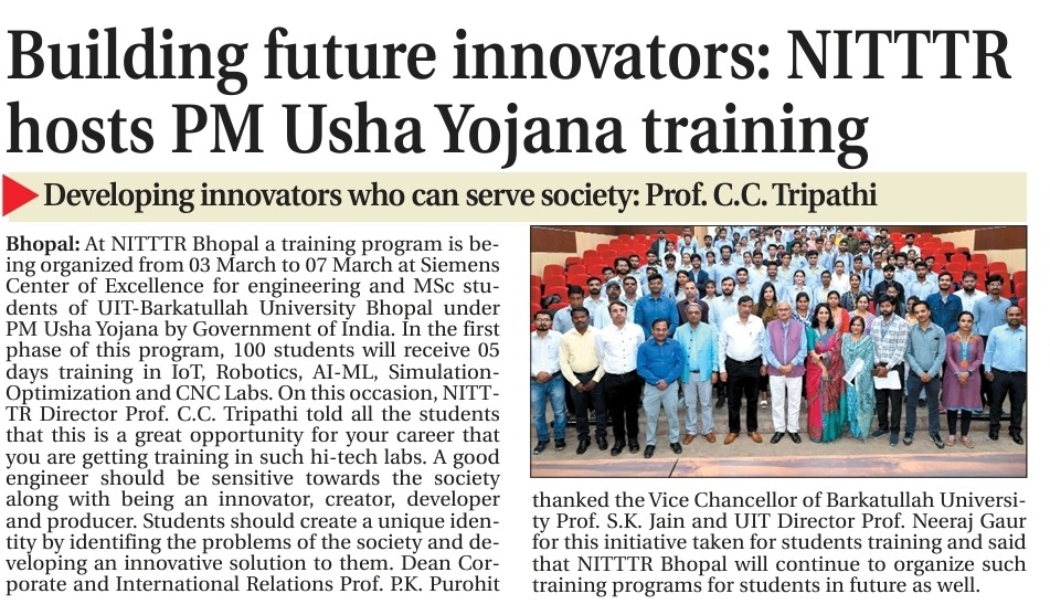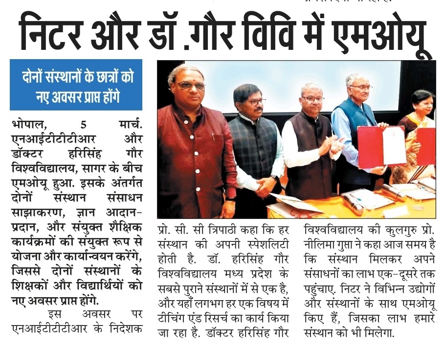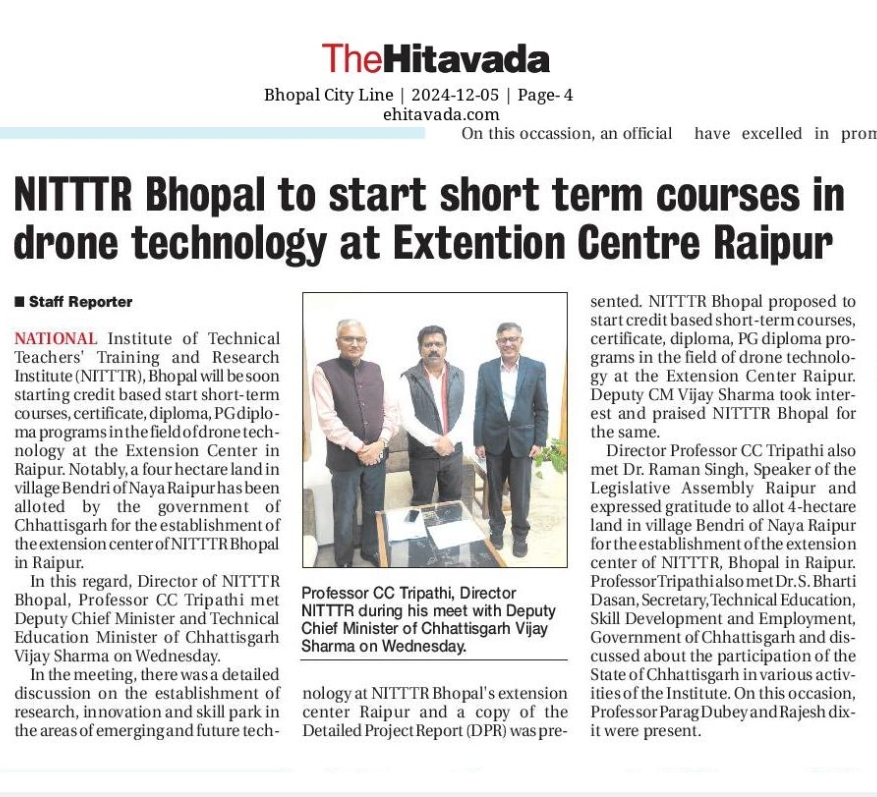 एनआईटीटीटीआर, भोपाल और केंद्रीय कृषि अभियांत्रिकी(सीआईएई) संस्थान के मध्य एमओयू संपन्न