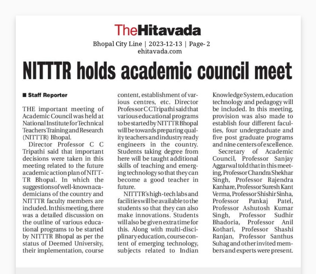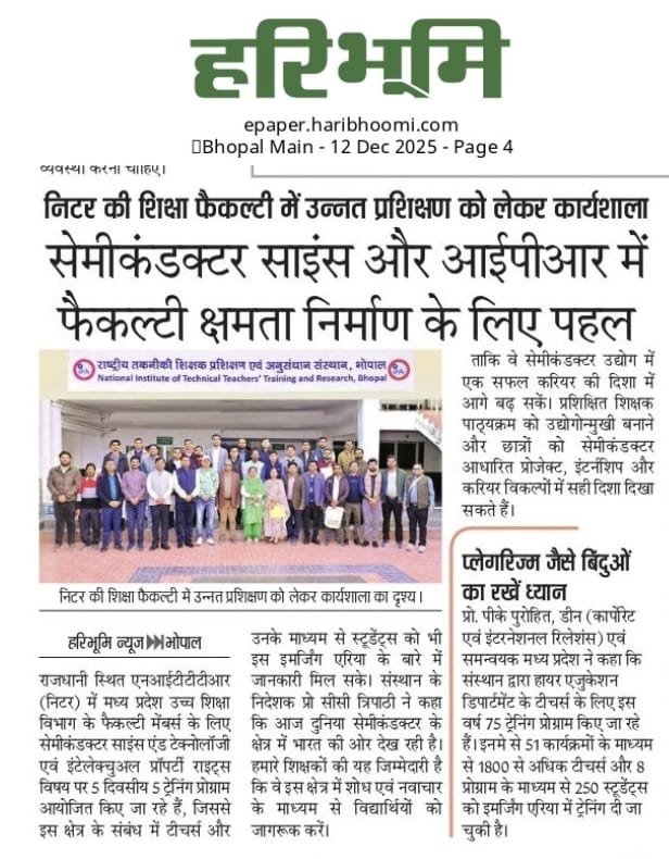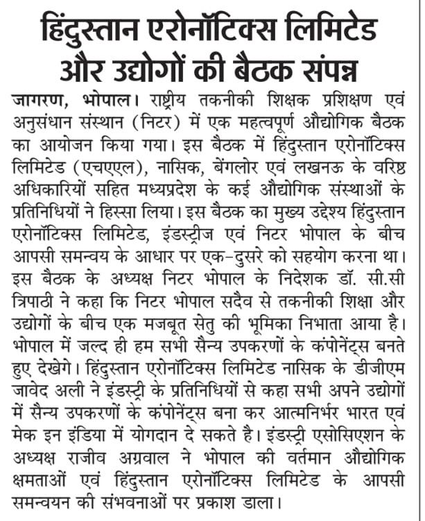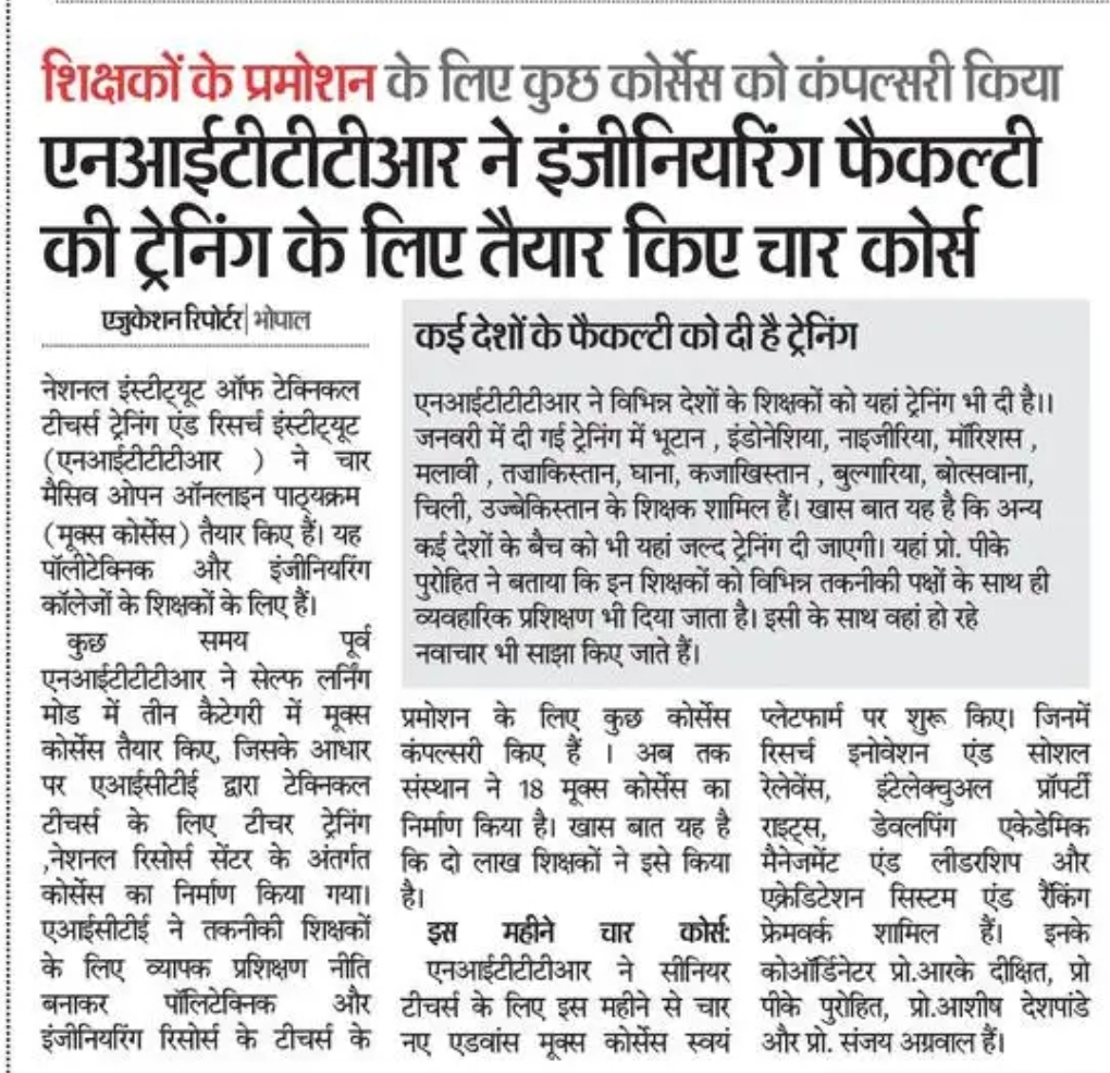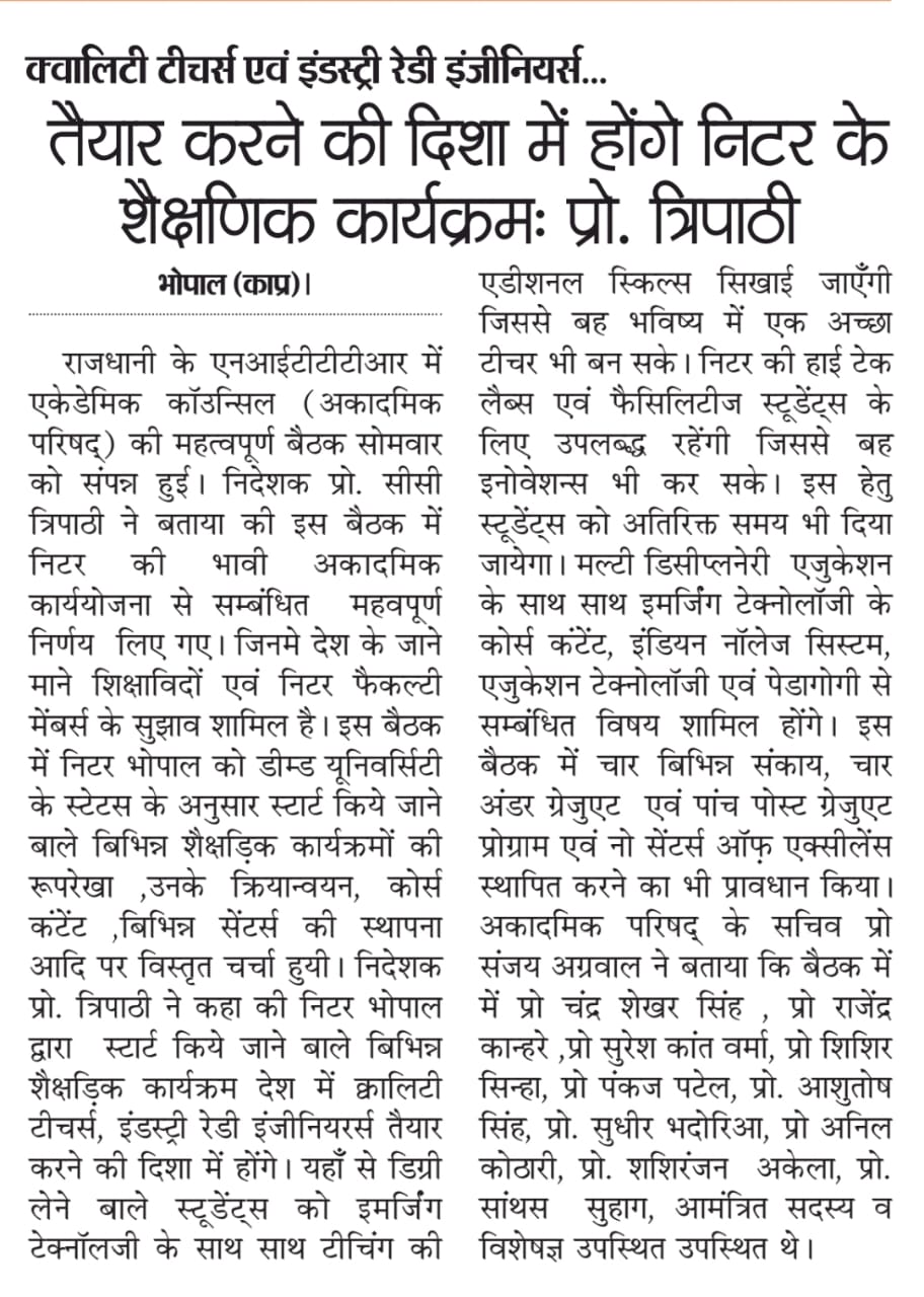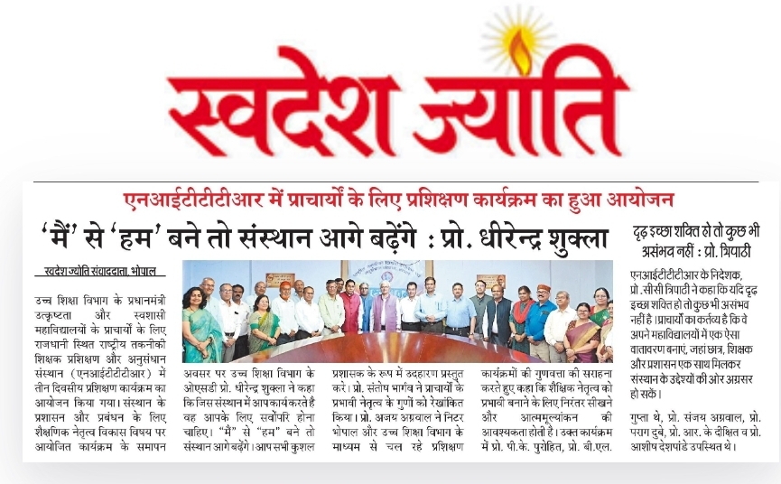 एनआईटीटीटीआर, भोपाल और केंद्रीय कृषि अभियांत्रिकी(सीआईएई) संस्थान के मध्य एमओयू संपन्न