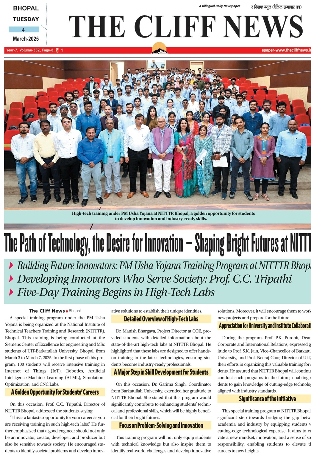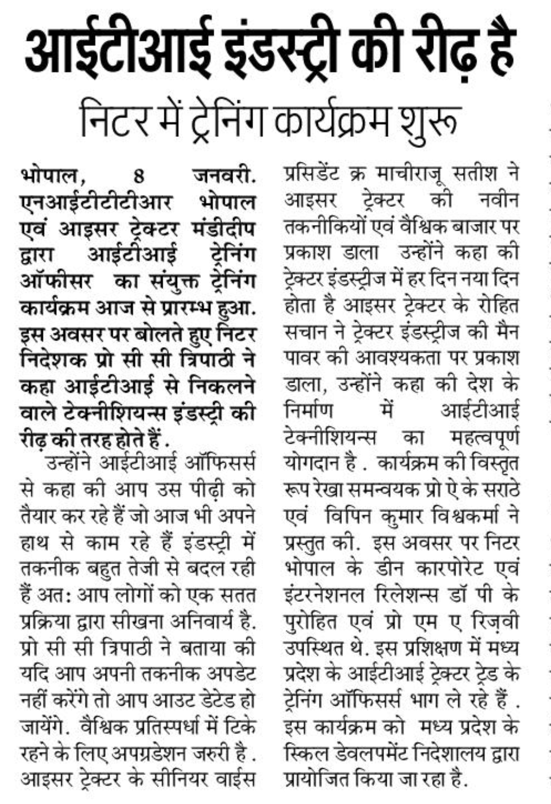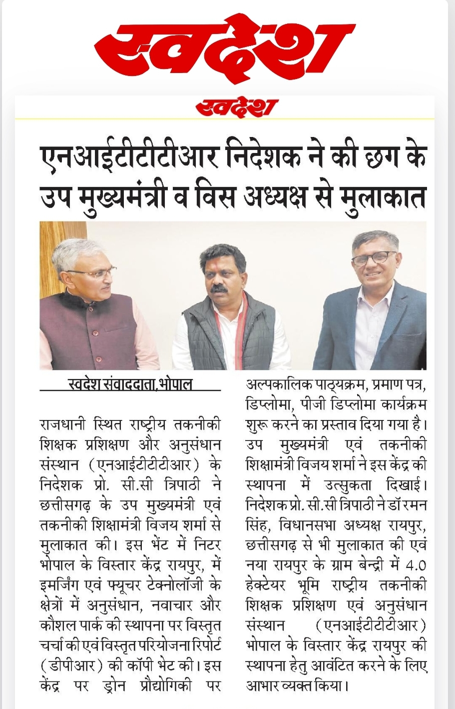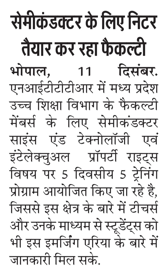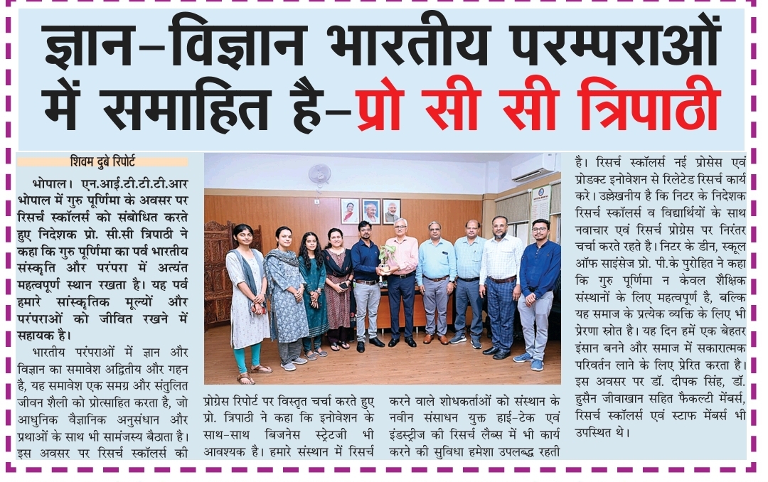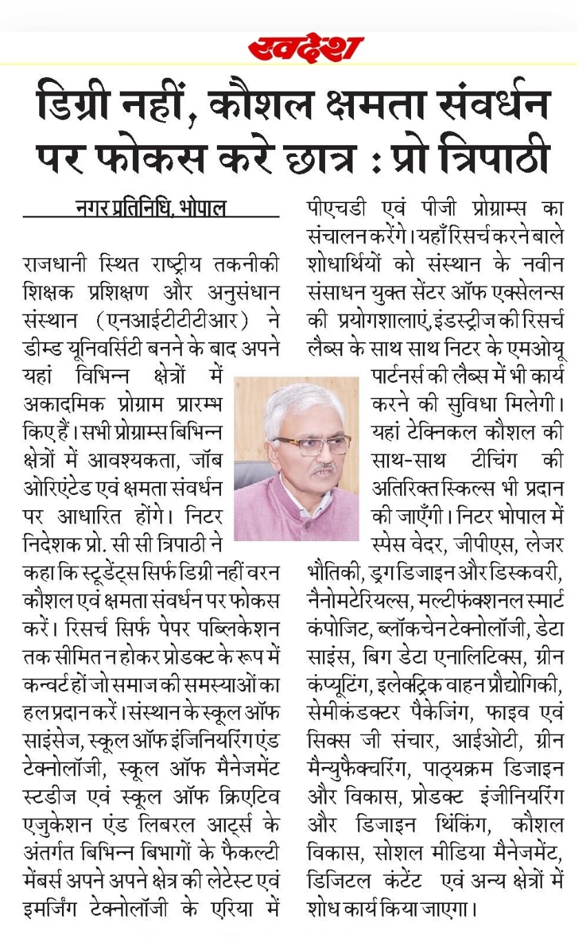 मिलेट्स के प्रचार प्रसार एवं जागरूकता में निटर भोपाल निभा रहा महत्वपूर्ण भूमिका