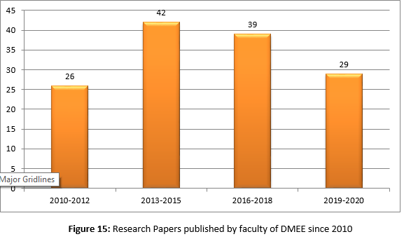 - Research Paper publication: Department faculties have published 135 research papers in the area of technical education and Mechanical engineering in last ten years as shown in Fig. (Annexure-III)