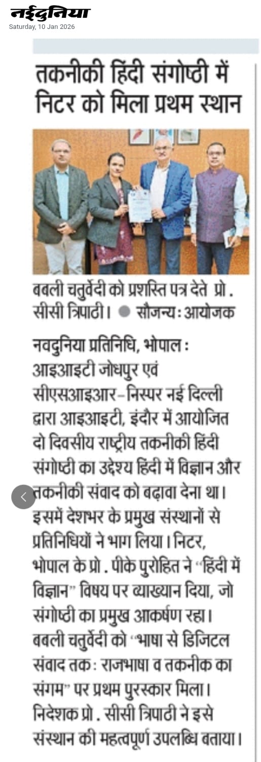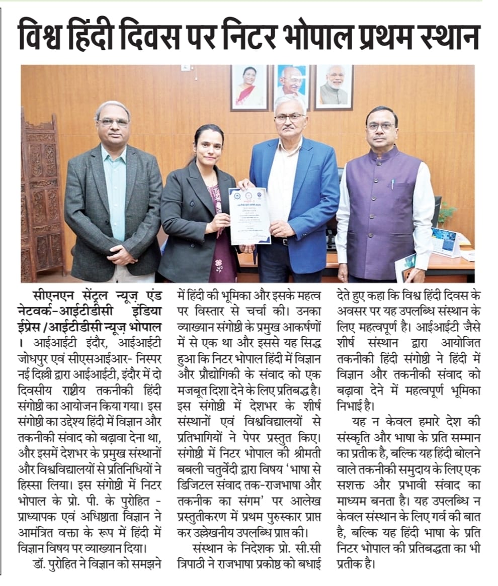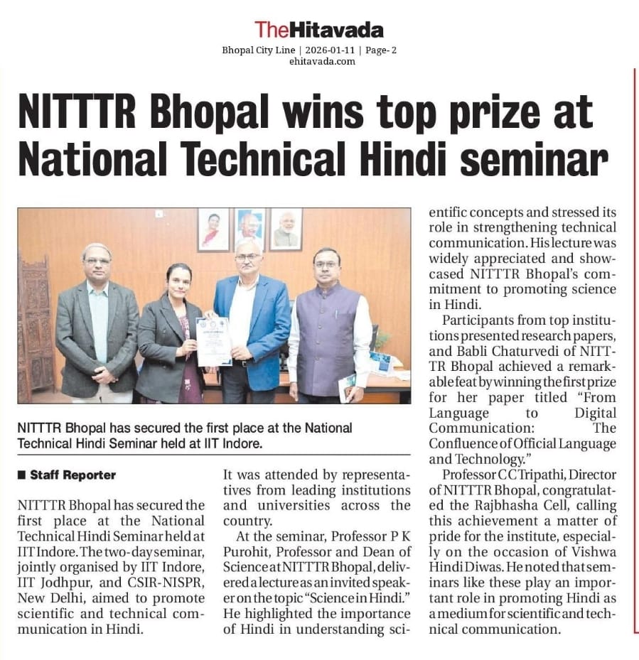 NITTTR Director Prof.C.C.Tripathi lays stress on promoting the use of Hindi in official work
