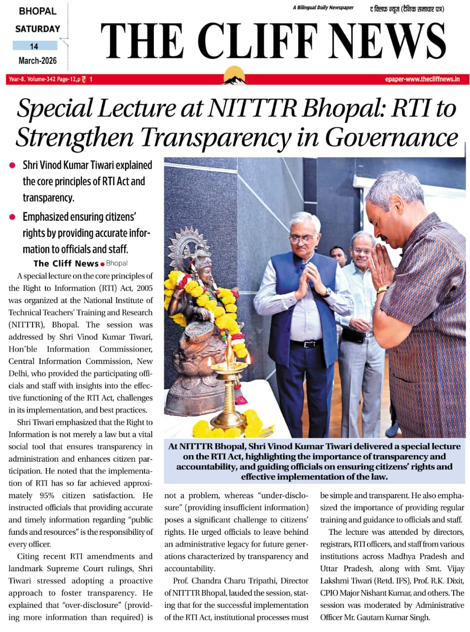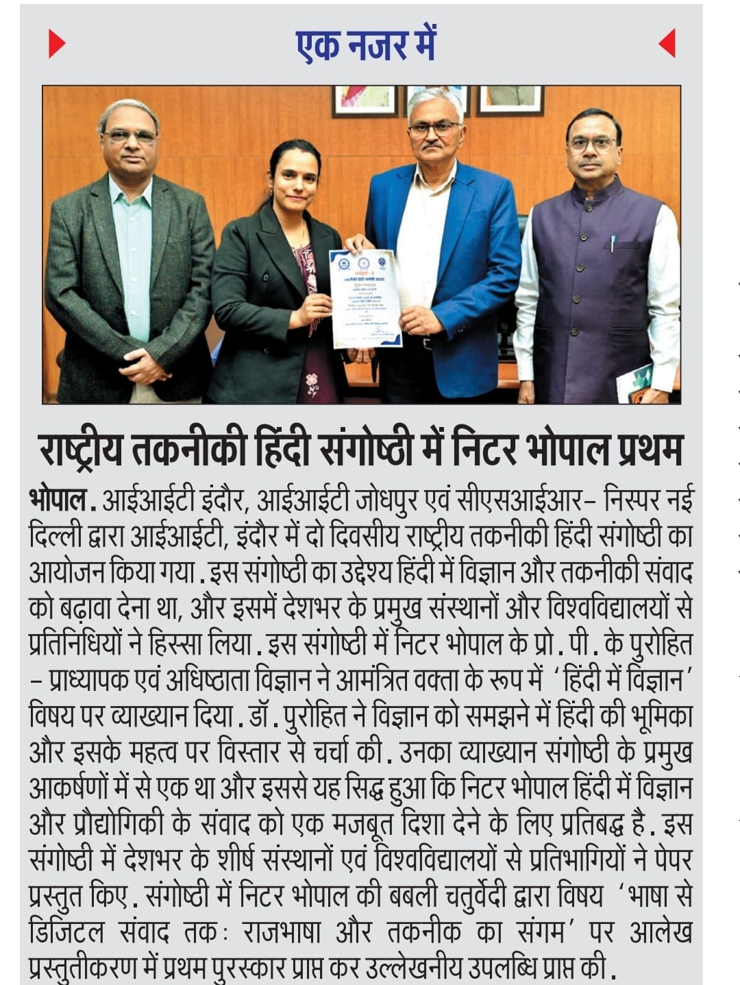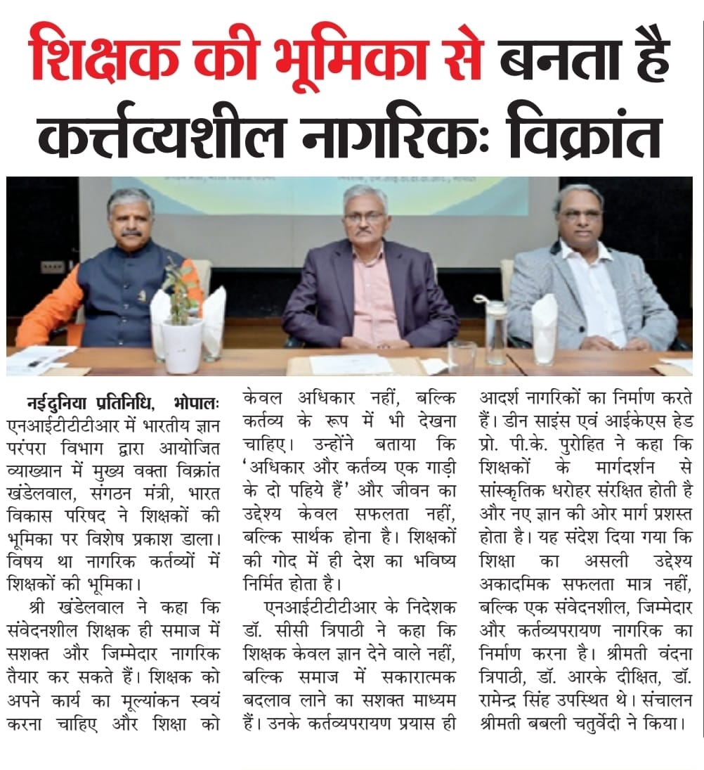 NITTTR Director Prof.C.C.Tripathi lays stress on promoting the use of Hindi in official work