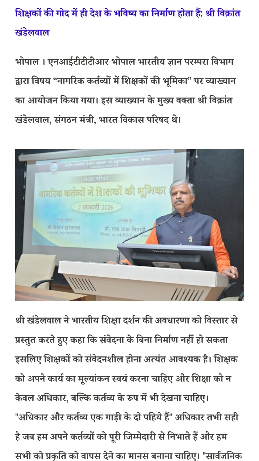 Train teachers to meet the needs of the world: NITTTR, Director Prof. C.C. Tripathi