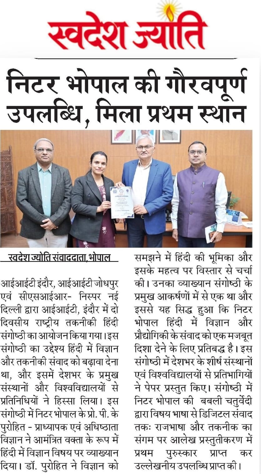 मिलेट्स के प्रचार प्रसार एवं जागरूकता में निटर भोपाल निभा रहा महत्वपूर्ण भूमिका