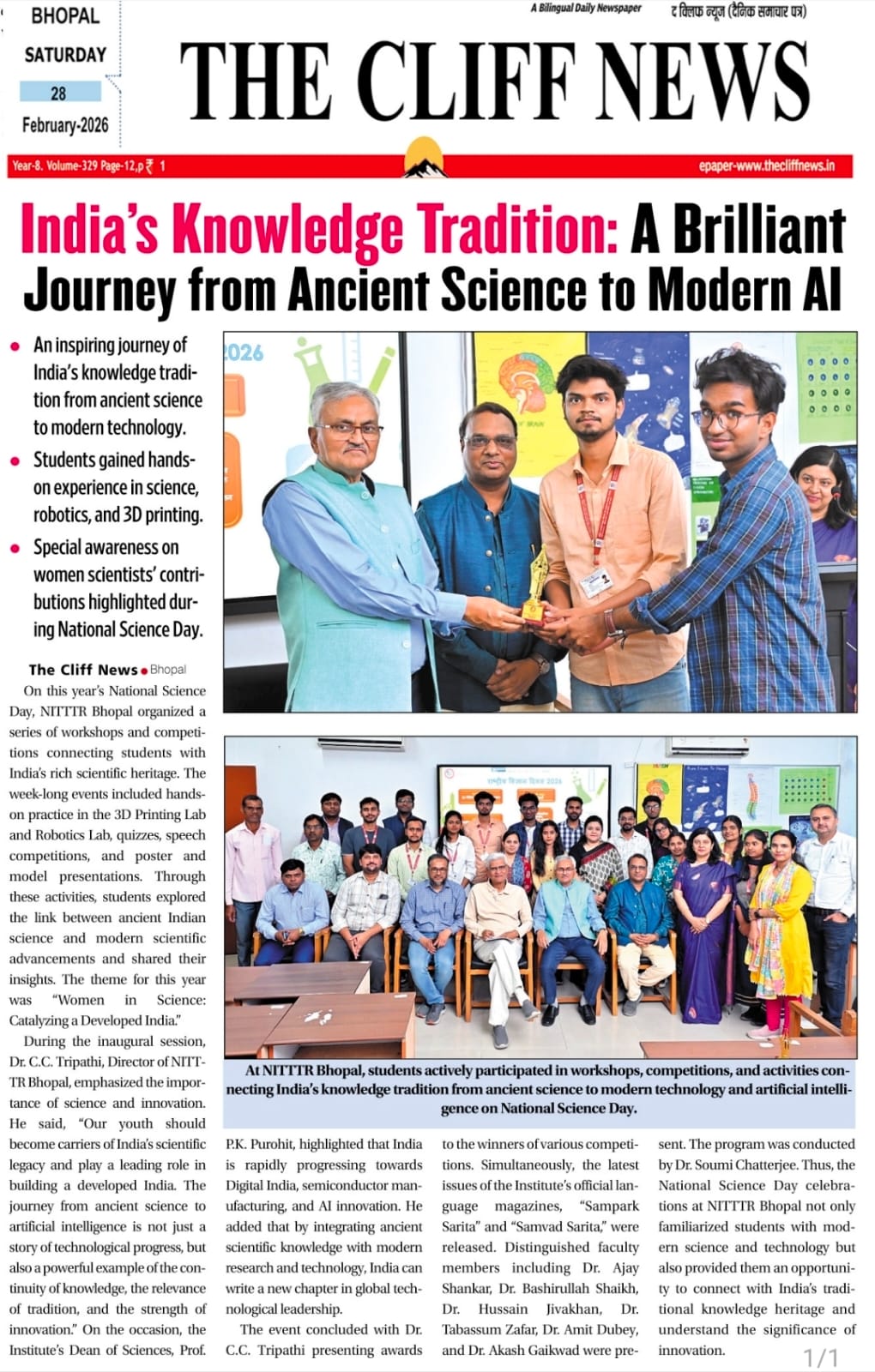 *हम सभी को अपनी मातृभाषा का कर्ज उतारने के लिए तत्पर रहना चाहिए - प्रो सी.सी. त्रिपाठी