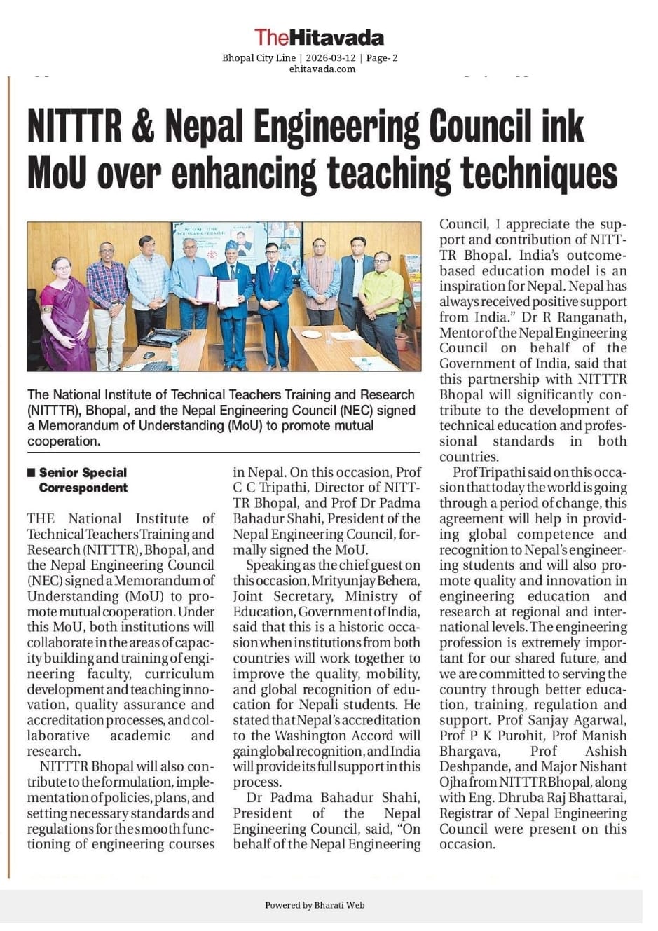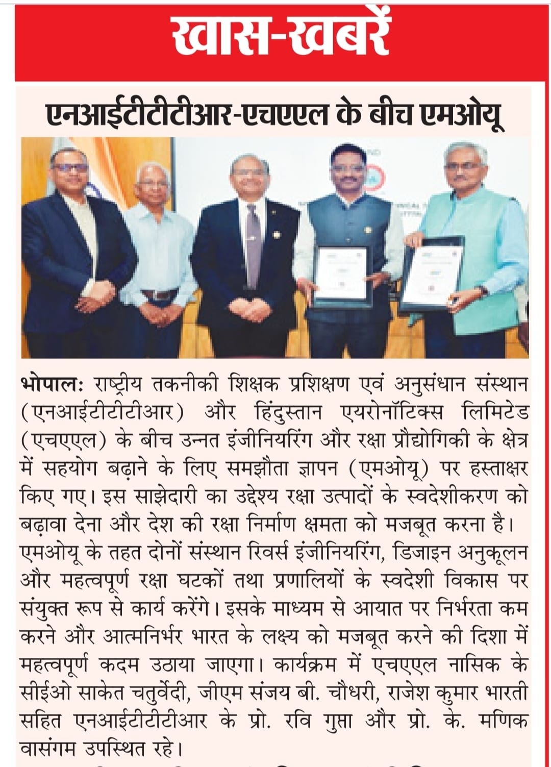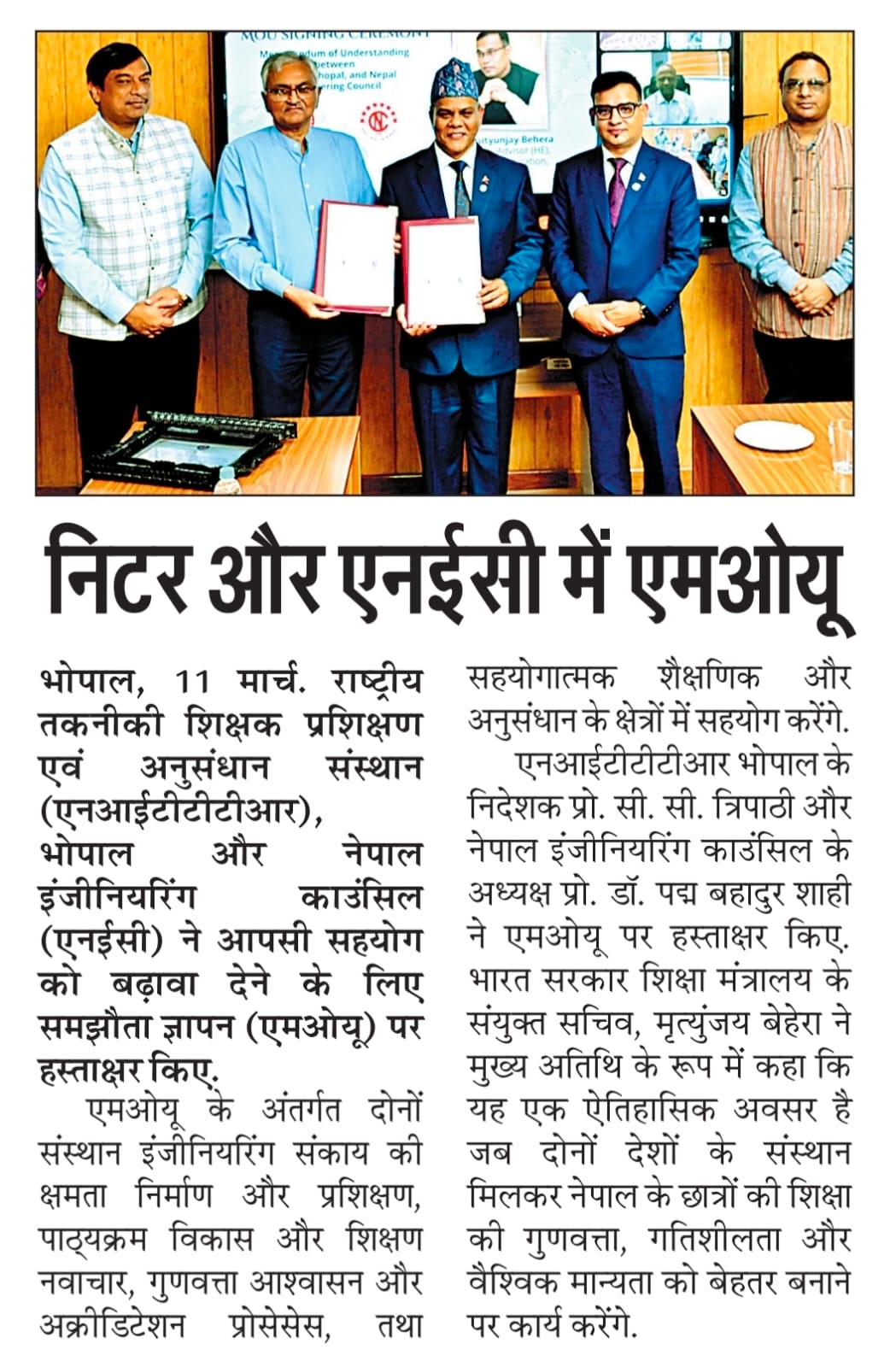 एनआईटीटीटीआर, भोपाल और केंद्रीय कृषि अभियांत्रिकी(सीआईएई) संस्थान के मध्य एमओयू संपन्न