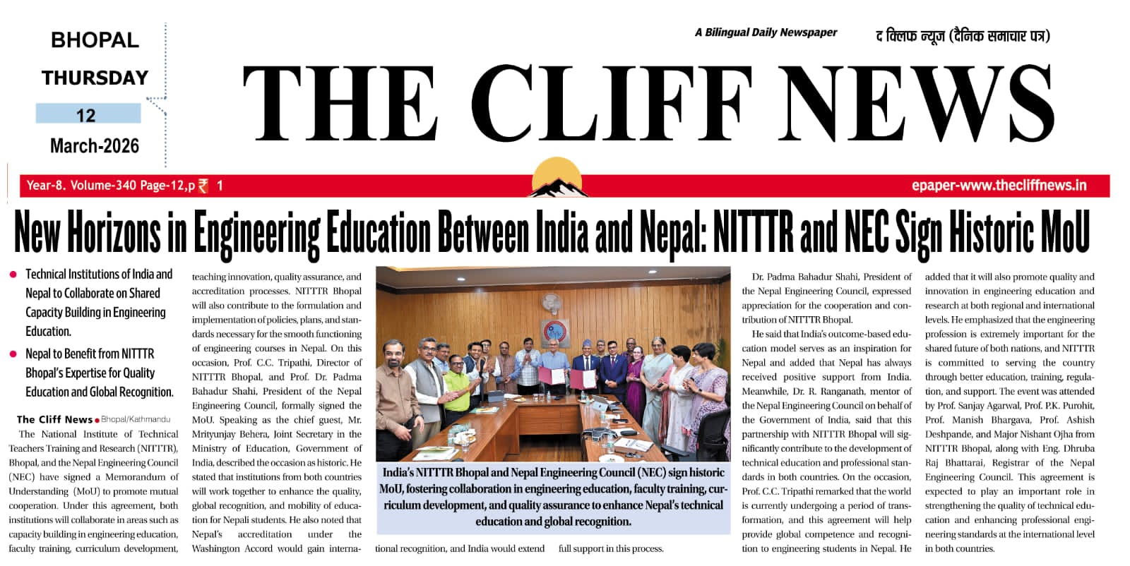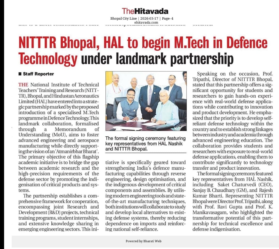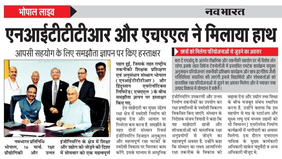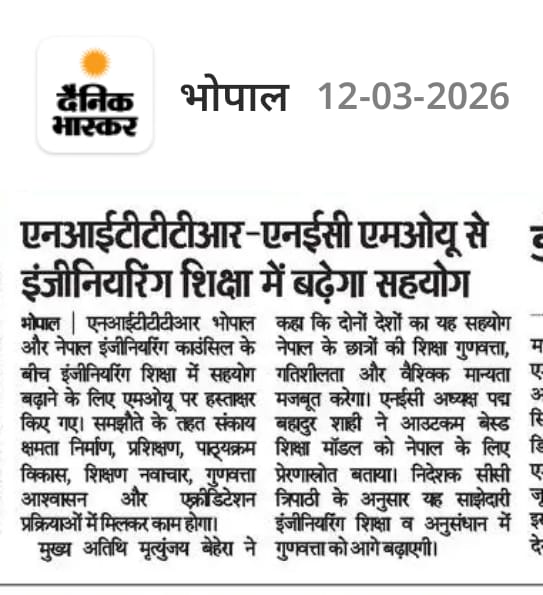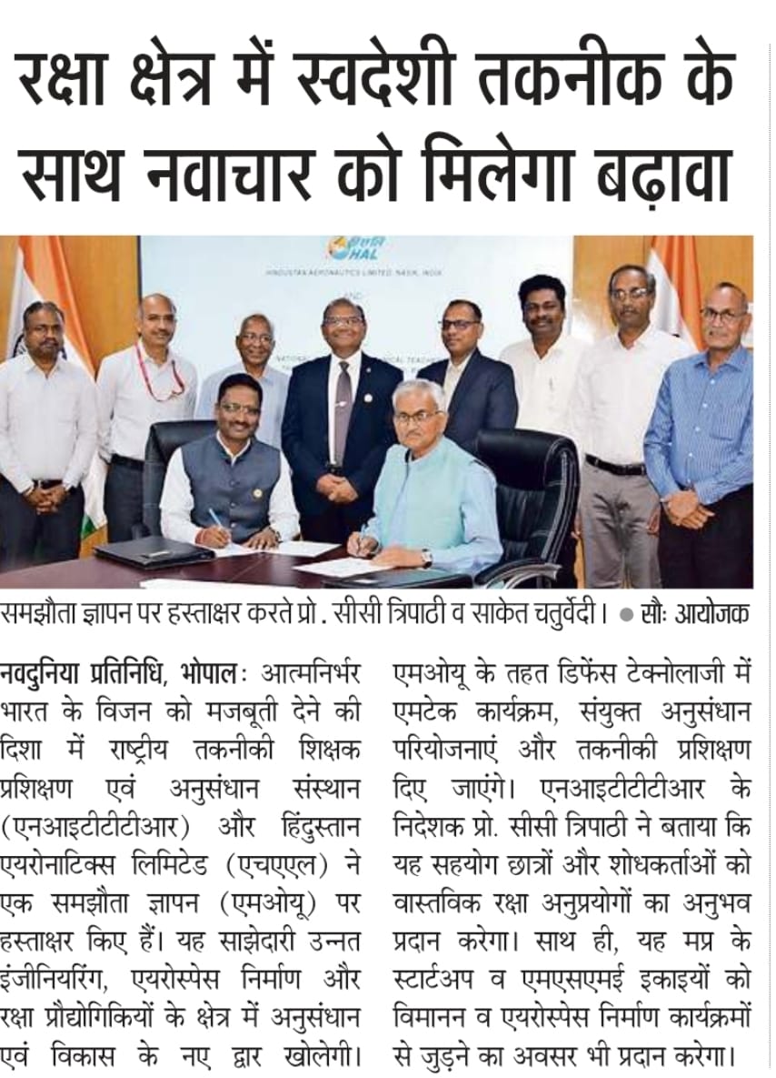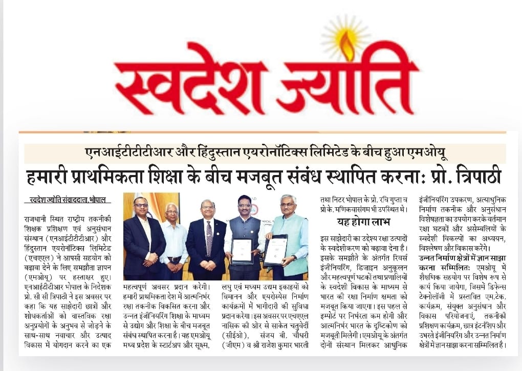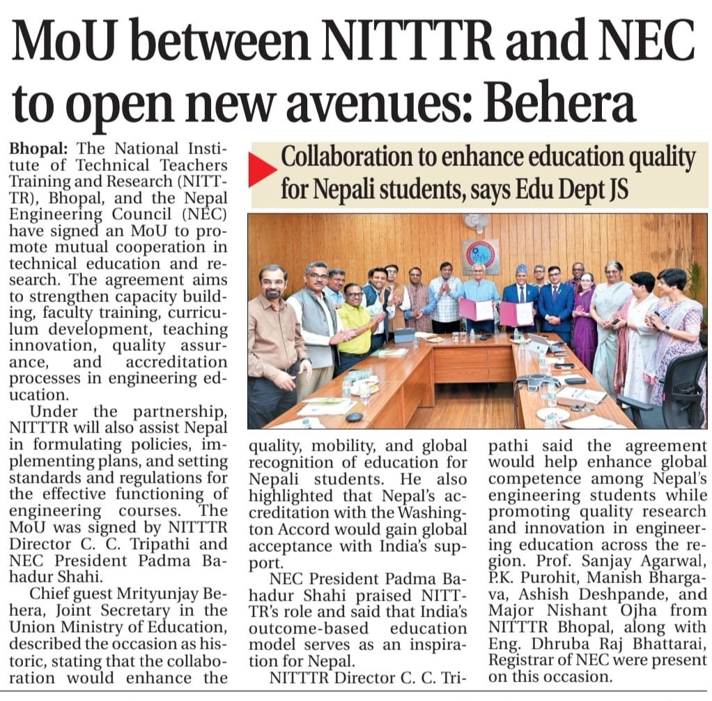 एनआईटीटीटीआर, भोपाल और केंद्रीय कृषि अभियांत्रिकी(सीआईएई) संस्थान के मध्य एमओयू संपन्न